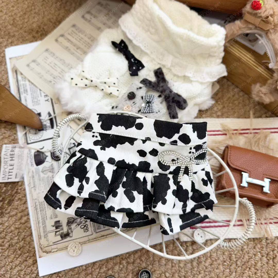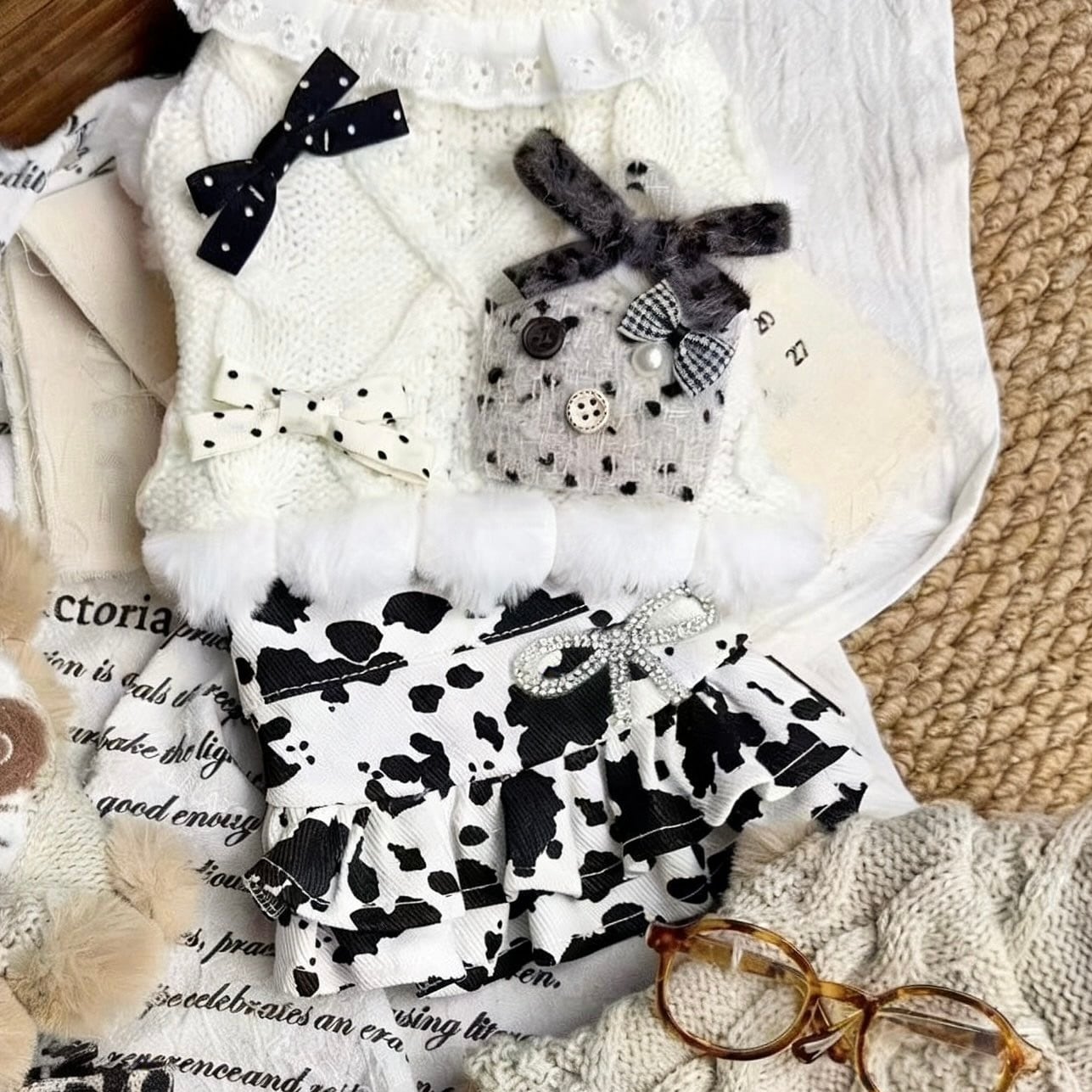 ふわふわのホワイトニットに、モノトーンの牛柄スカートを合わせた