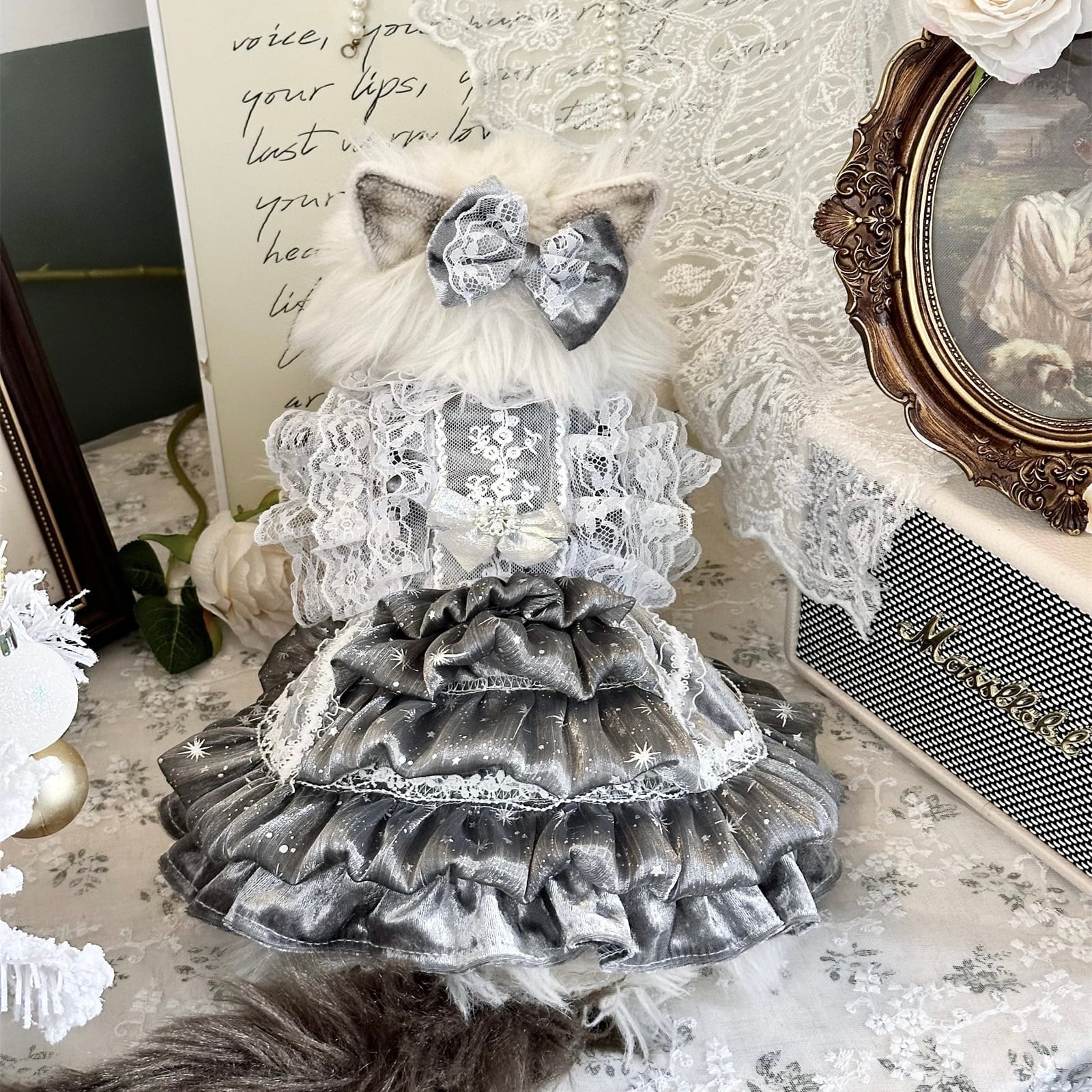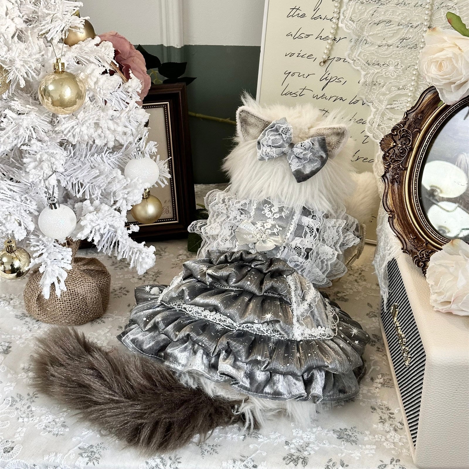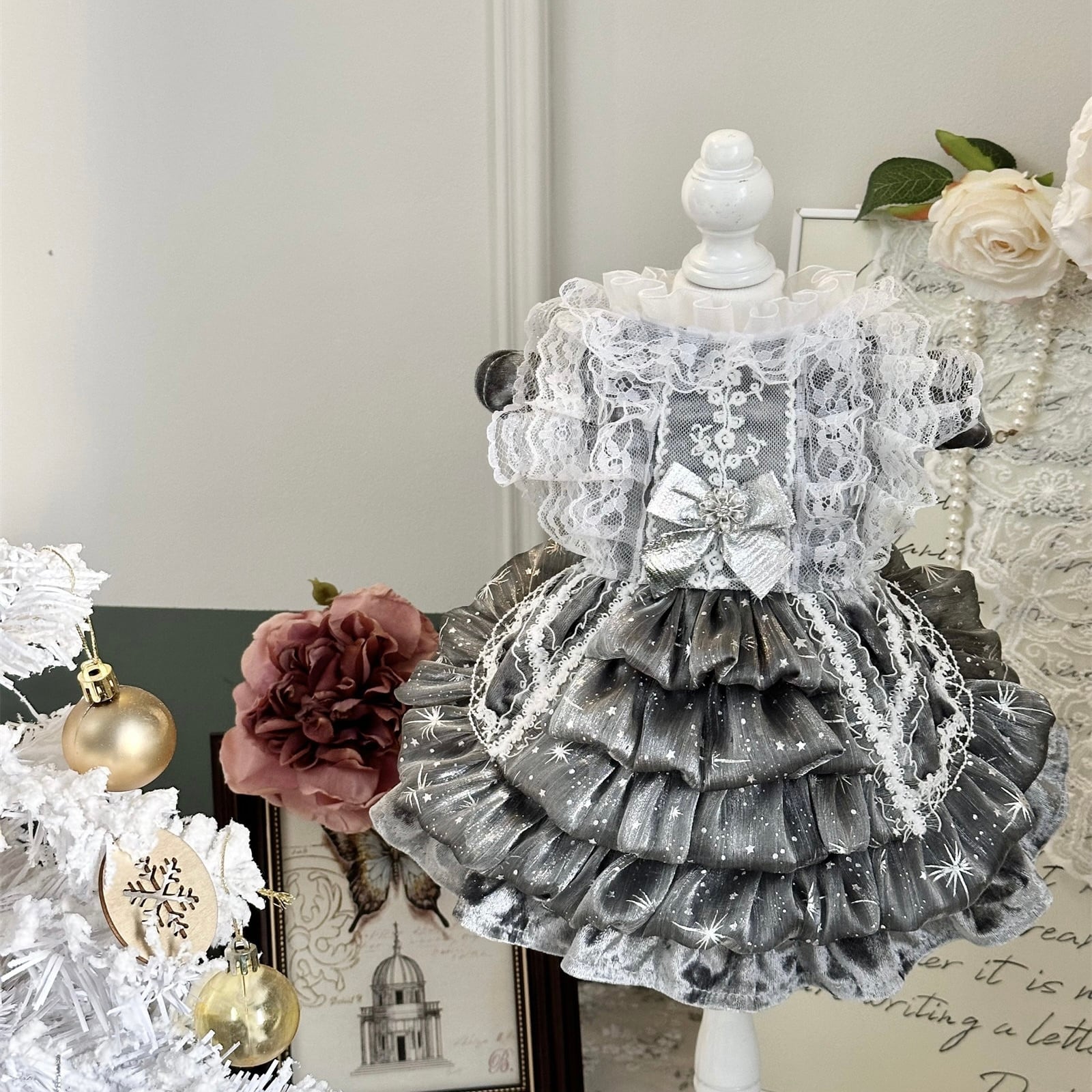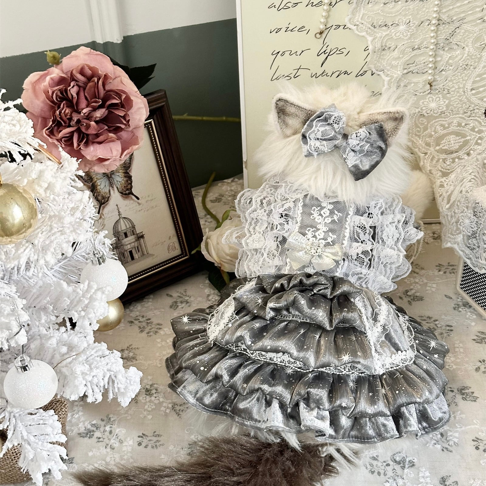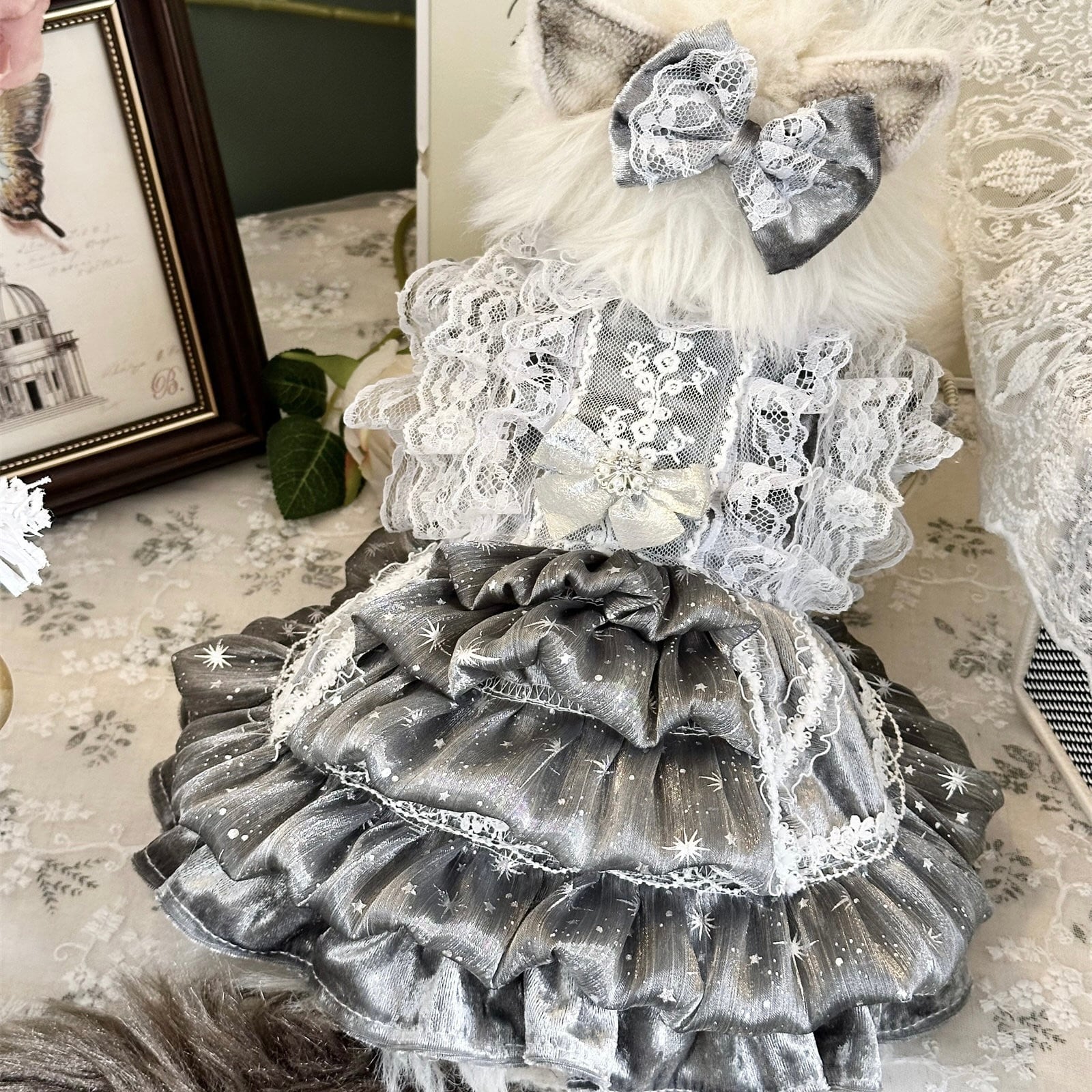 幾重にも重なったフリルがふんわりと広がり、まるでドレスアップした小さなプリンセスのような存在感。動くたびに表情を変える立体的なシルエットが、特別感を演出します。