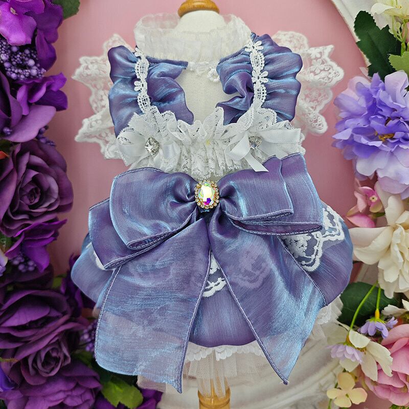 光の加減で美しく表情を変えるオーロラリボンが印象的な、気品あふれるプリンセスドレス。深みのあるニュアンスカラーに繊細なレースを重ね、華やかさと上品さを兼ね備えた一着に仕上げました。