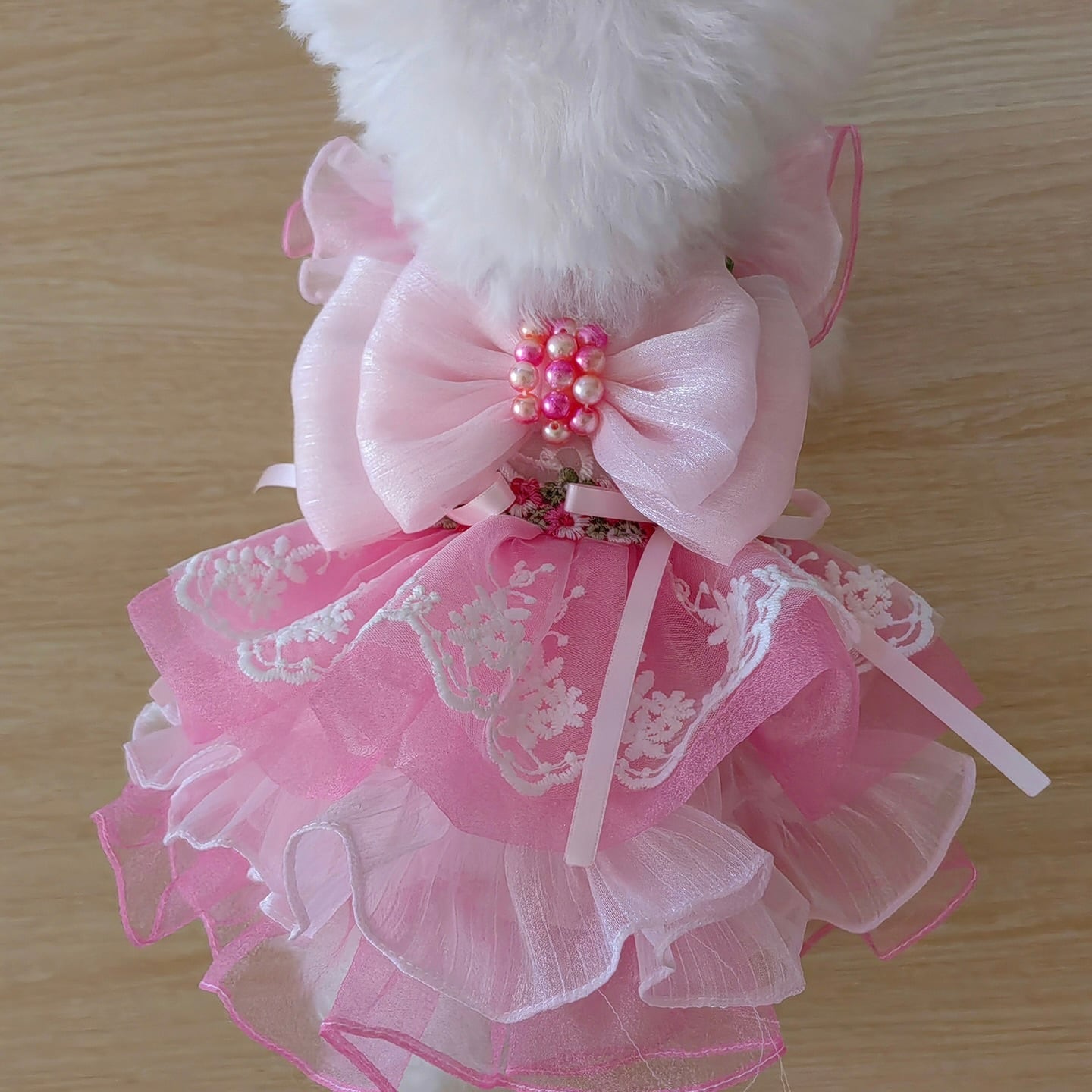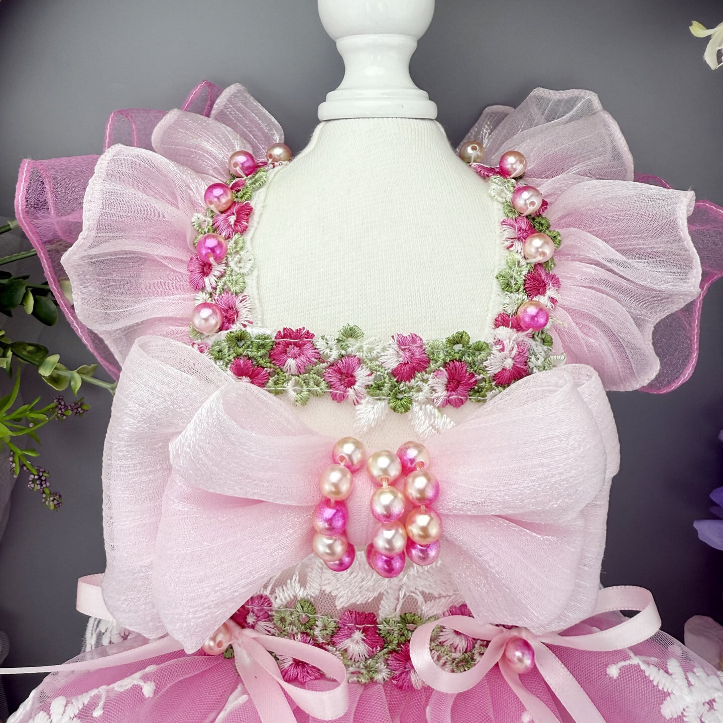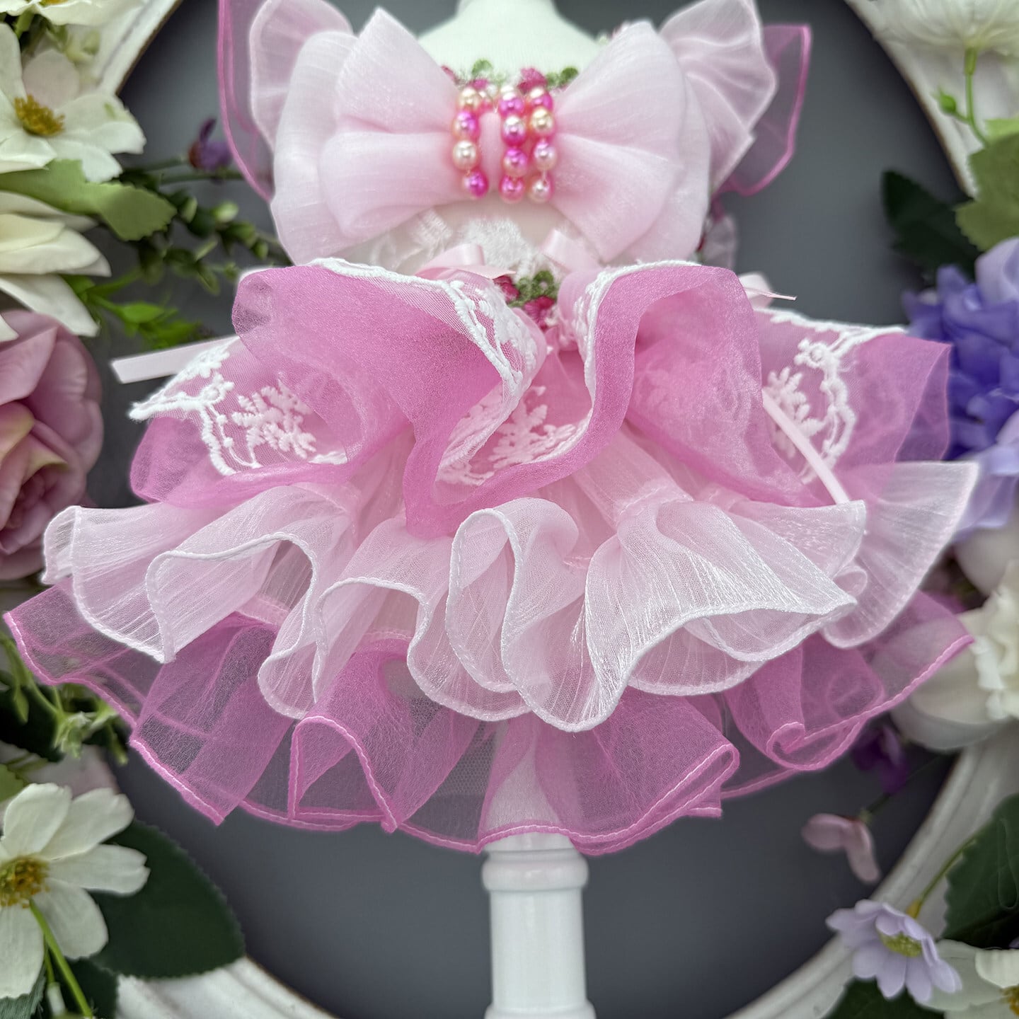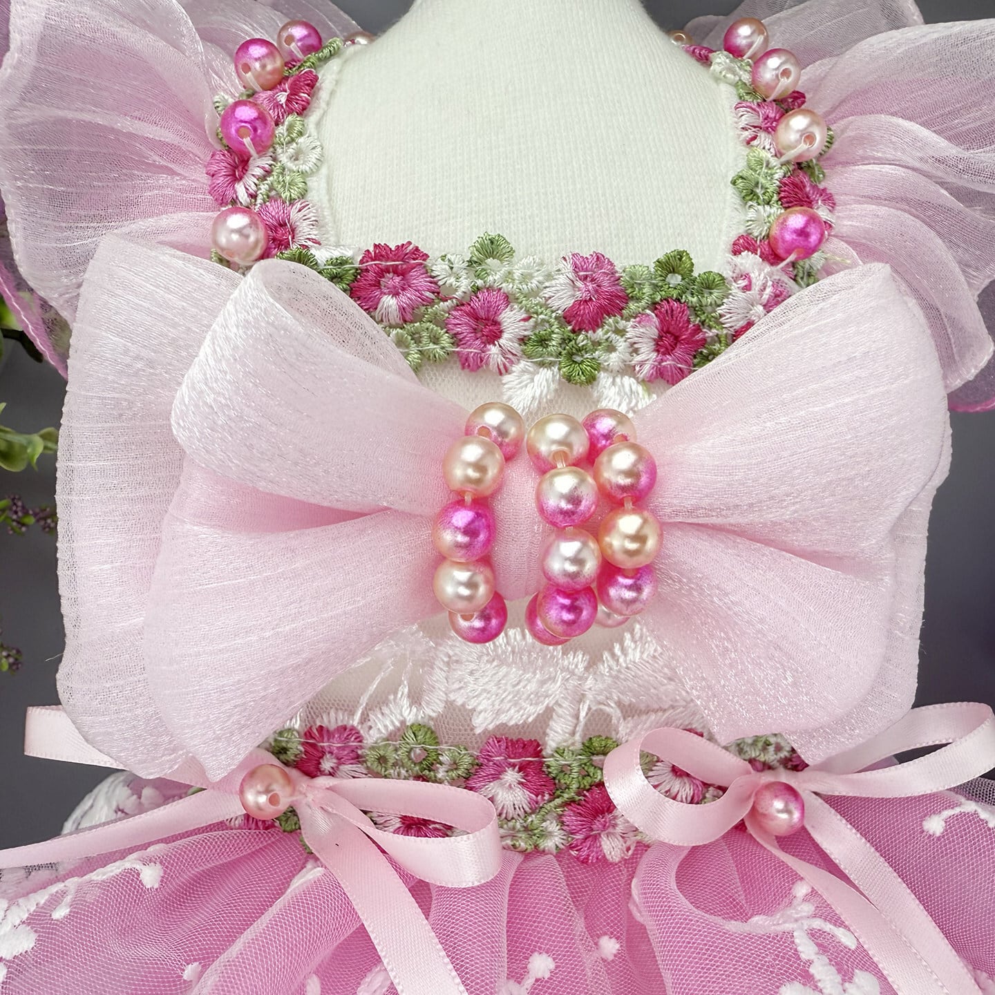 パールリボンが咲くフラワーピンクプリンセスドレス 00848