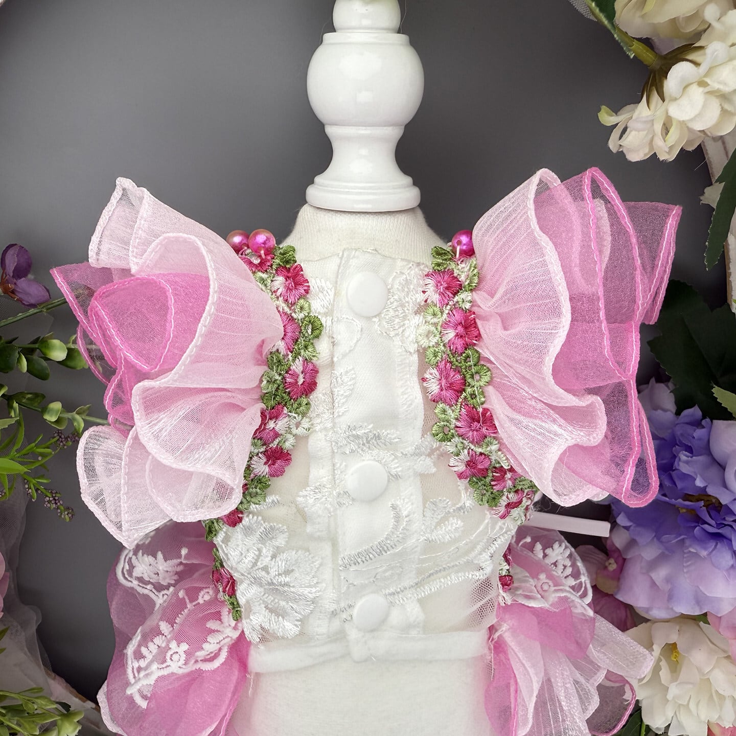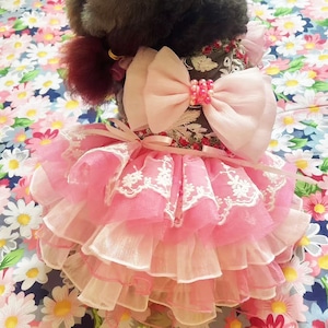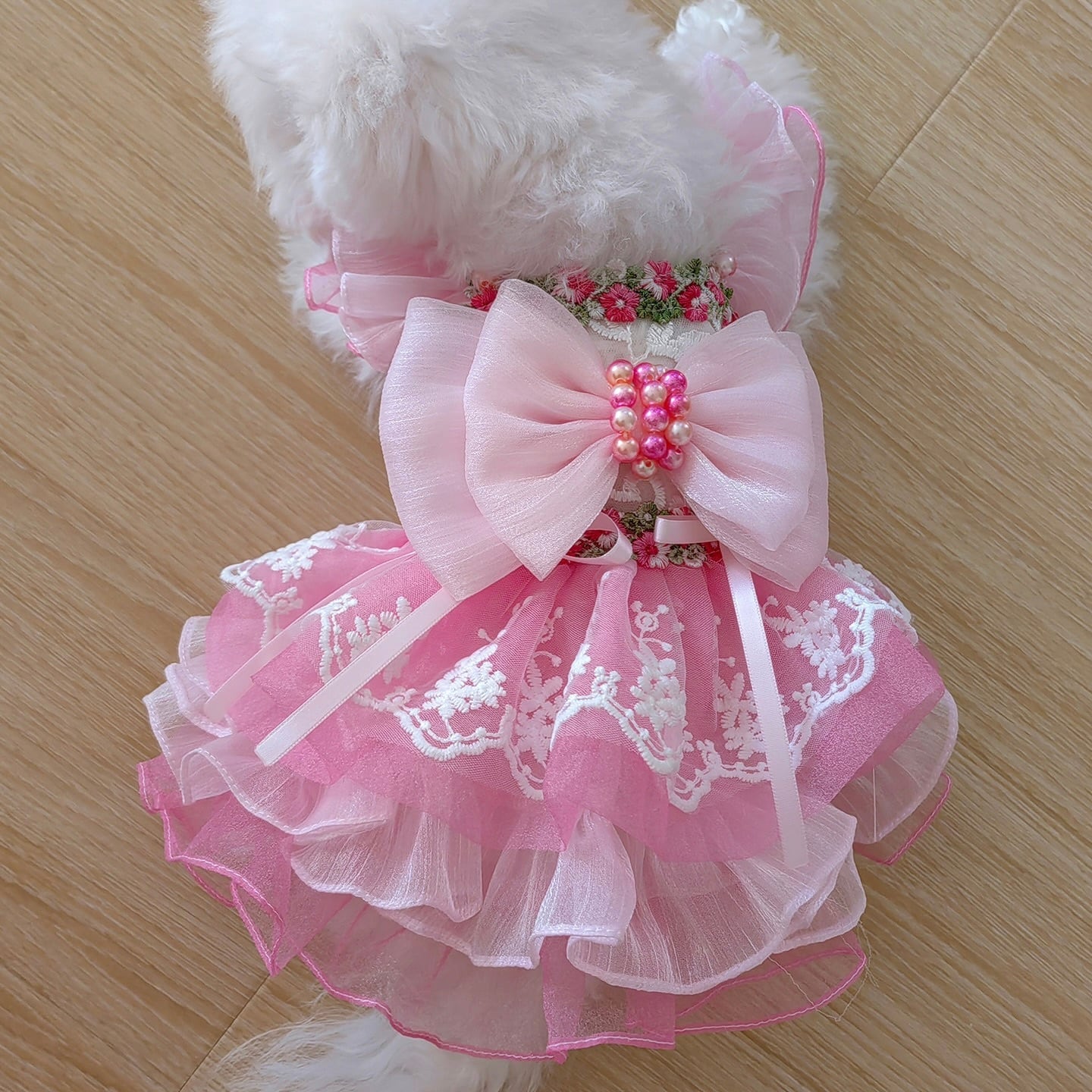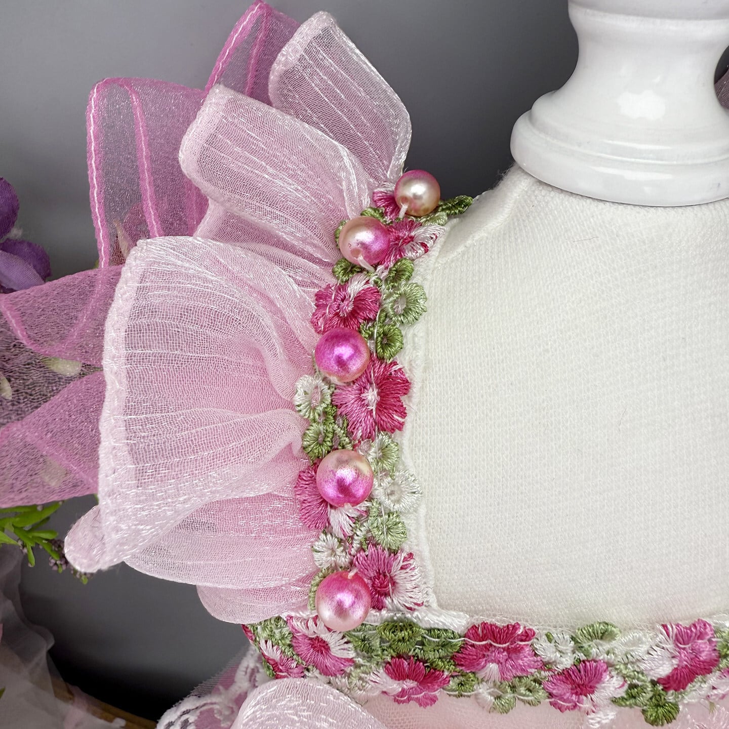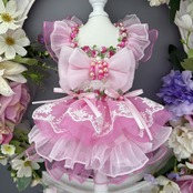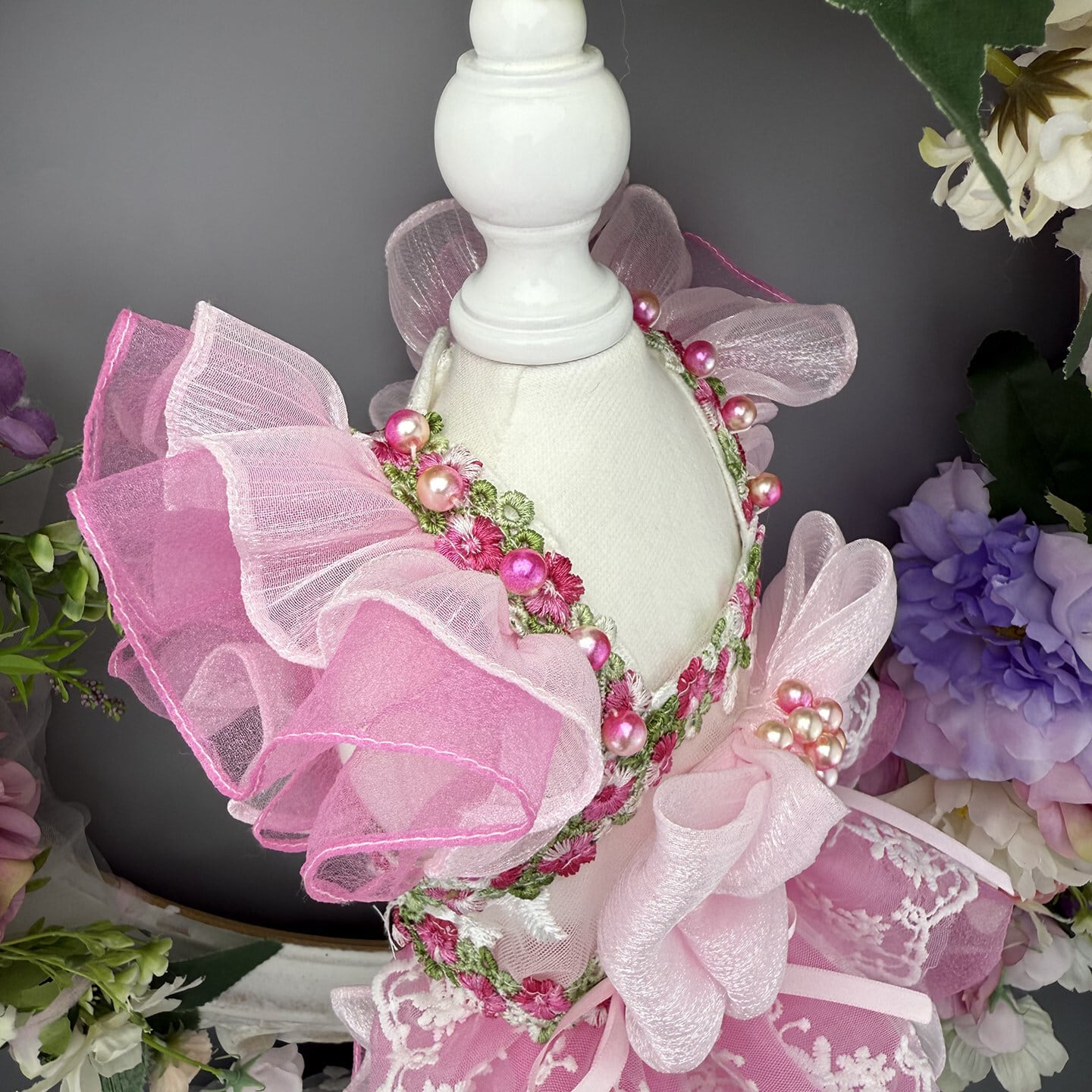 パールリボンが咲くフラワーピンクプリンセスドレス 00848