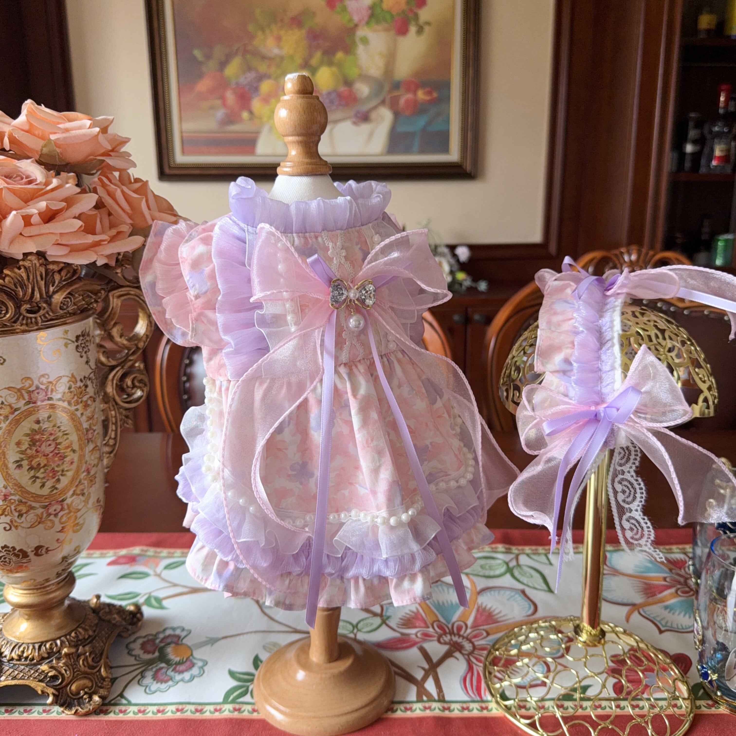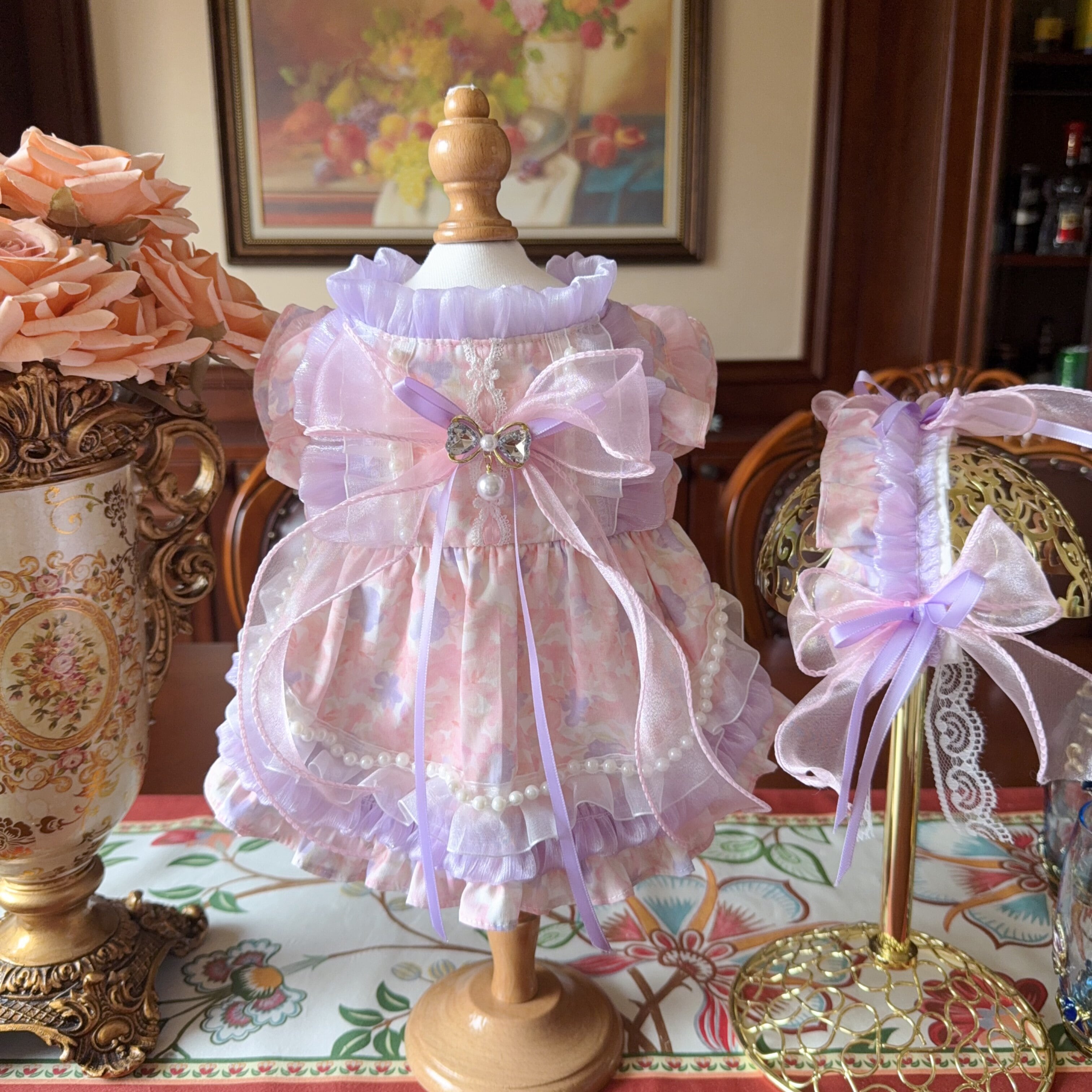 同デザインのヘッドドレス付きで、トータルコーディネートが完成。