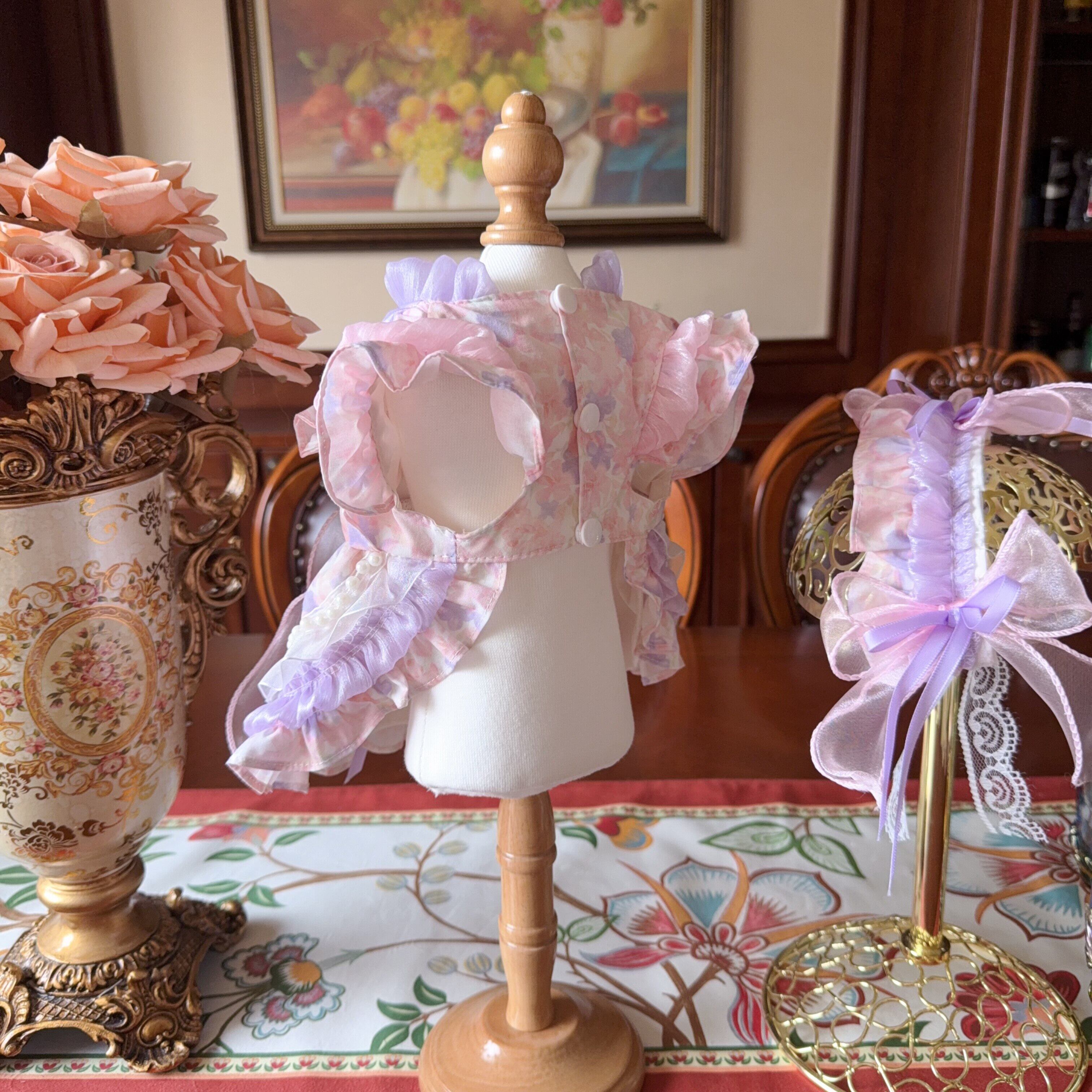 淡いピンクとラベンダーの色合いが優しく溶け合い、軽やかで可憐な印象に仕上がっています。