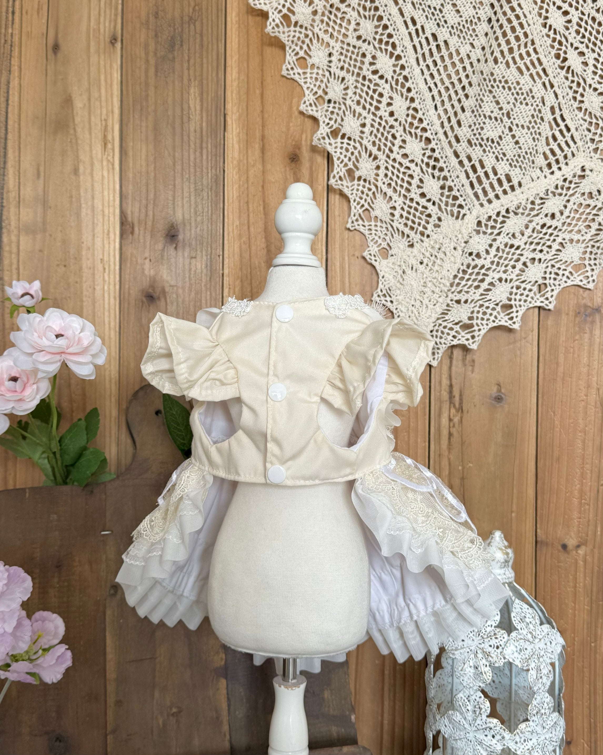 繊細なレースとやわらかなチュールを重ねた、上品なドレスセット。