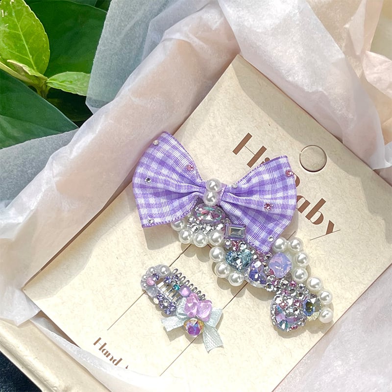 大きめのリボンデザインと、繊細なビジューを組み合わせたデザインの2点セット。