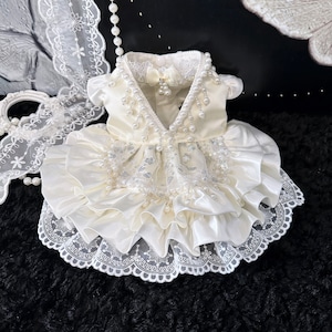 繊細なパール装飾が輝く、エレガントなプリンセスドレス。