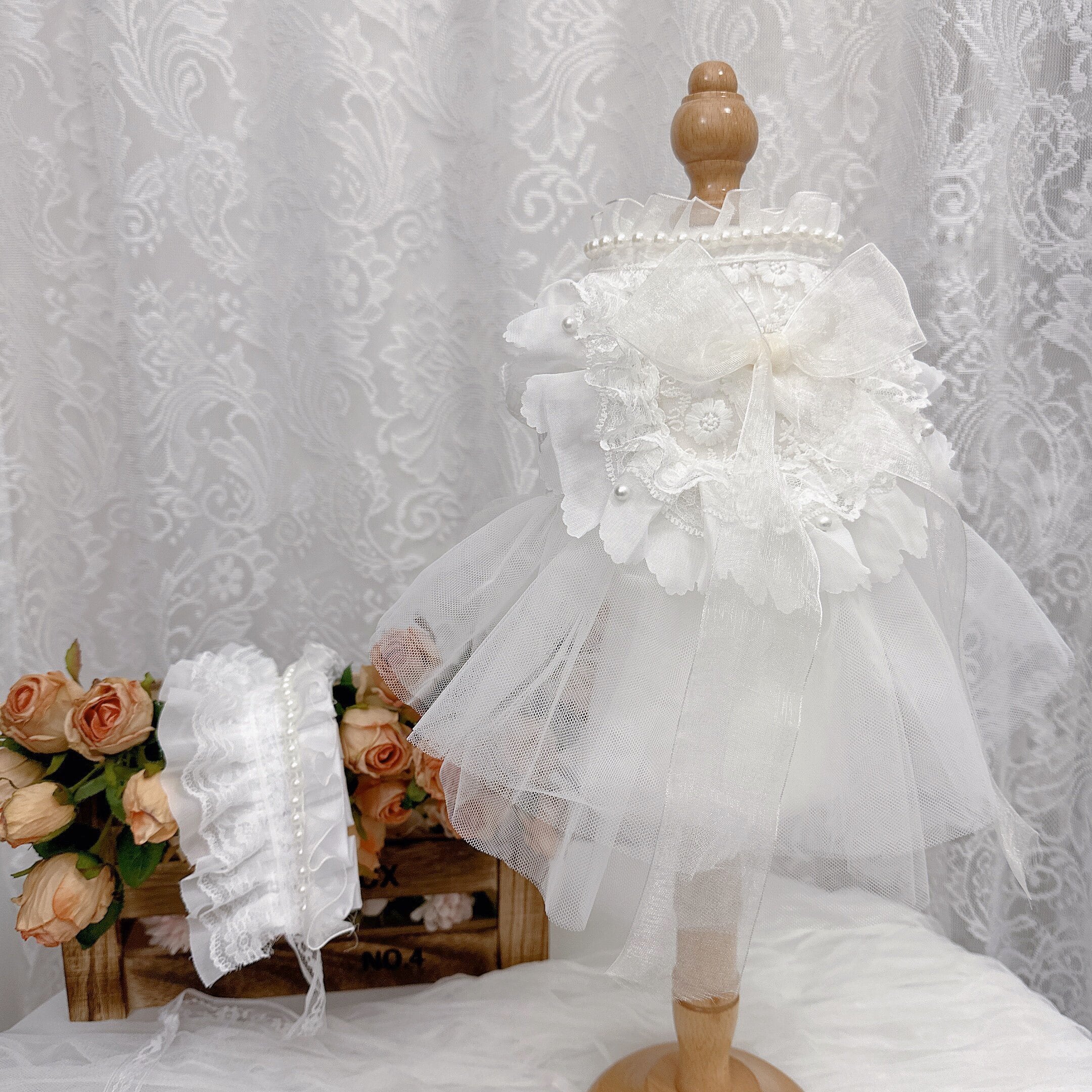 エンジェルパールチュールドレス&レースボンネット 00881