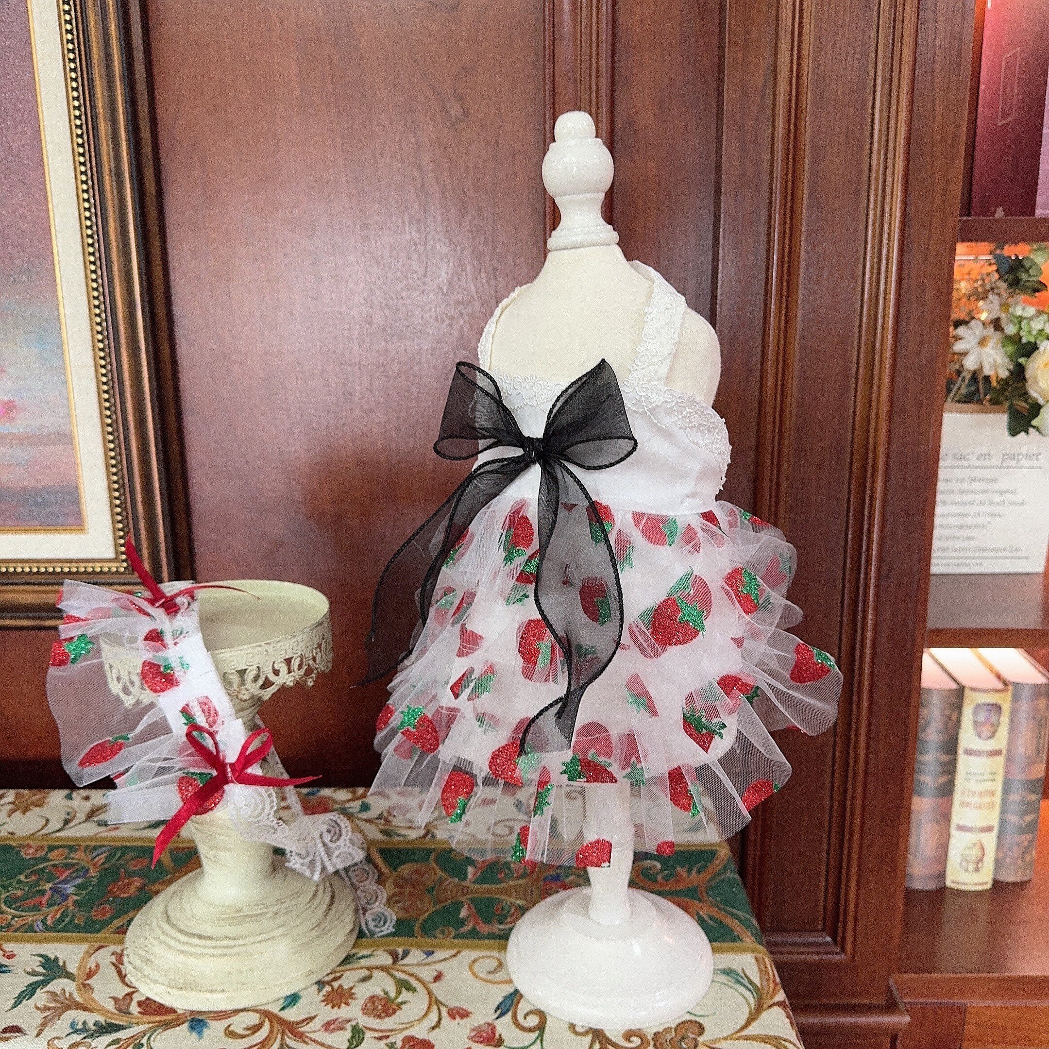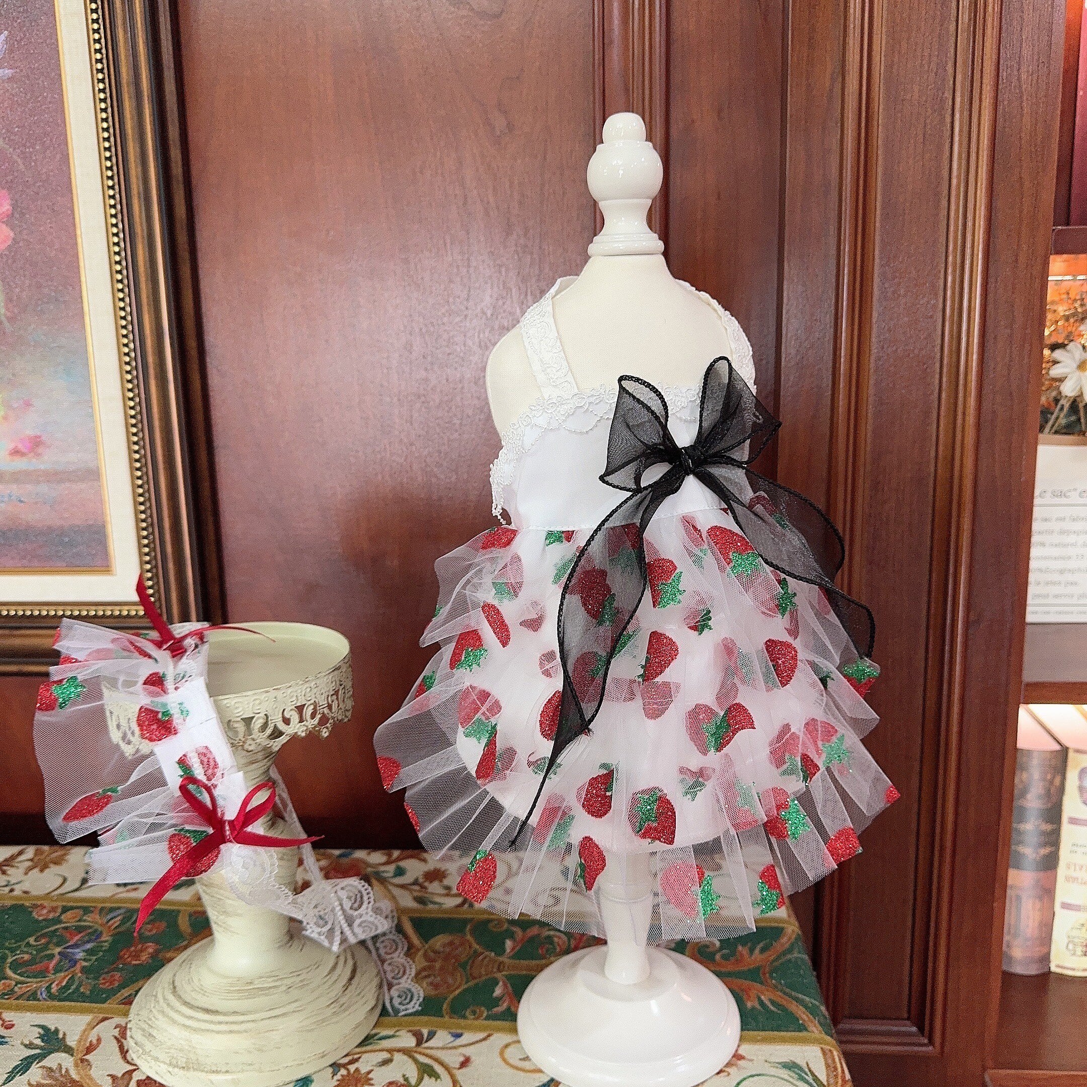 お揃いのストロベリー柄ヘッドドレス付きで、