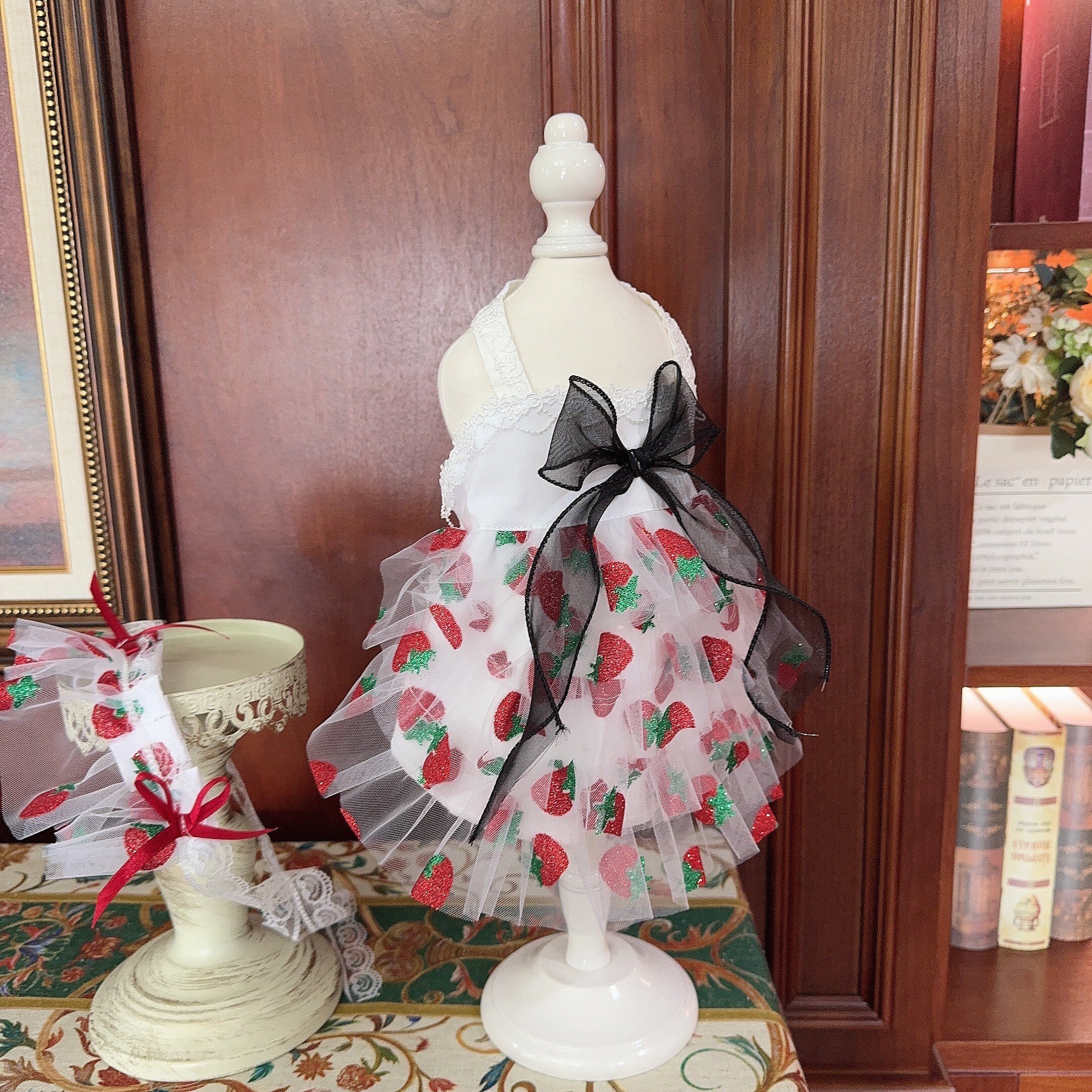 ストロベリーチュールドレス&リボンヘッドドレス 00924