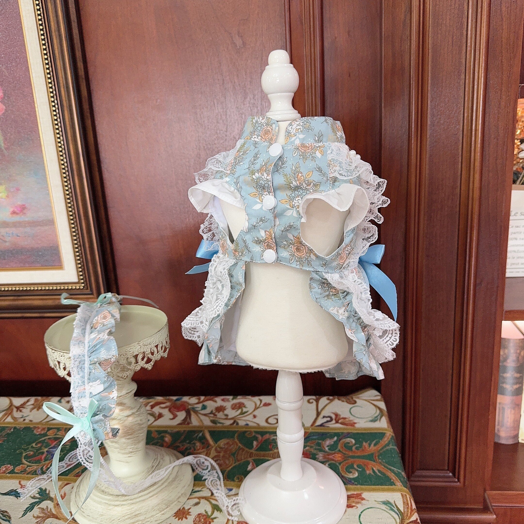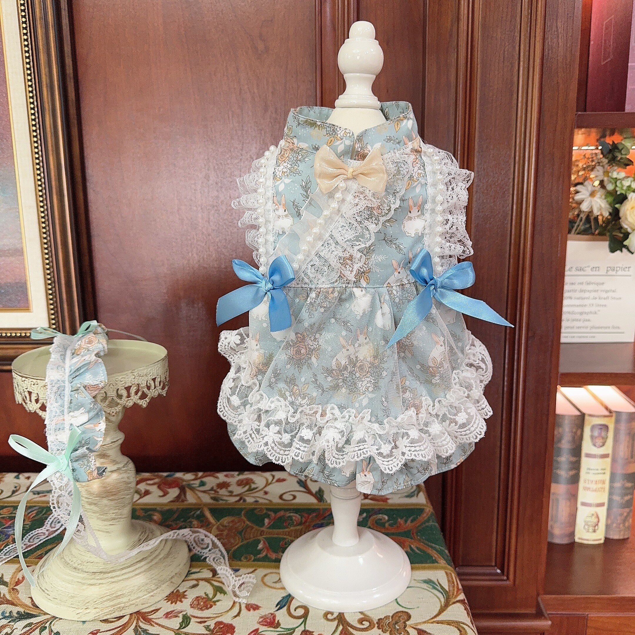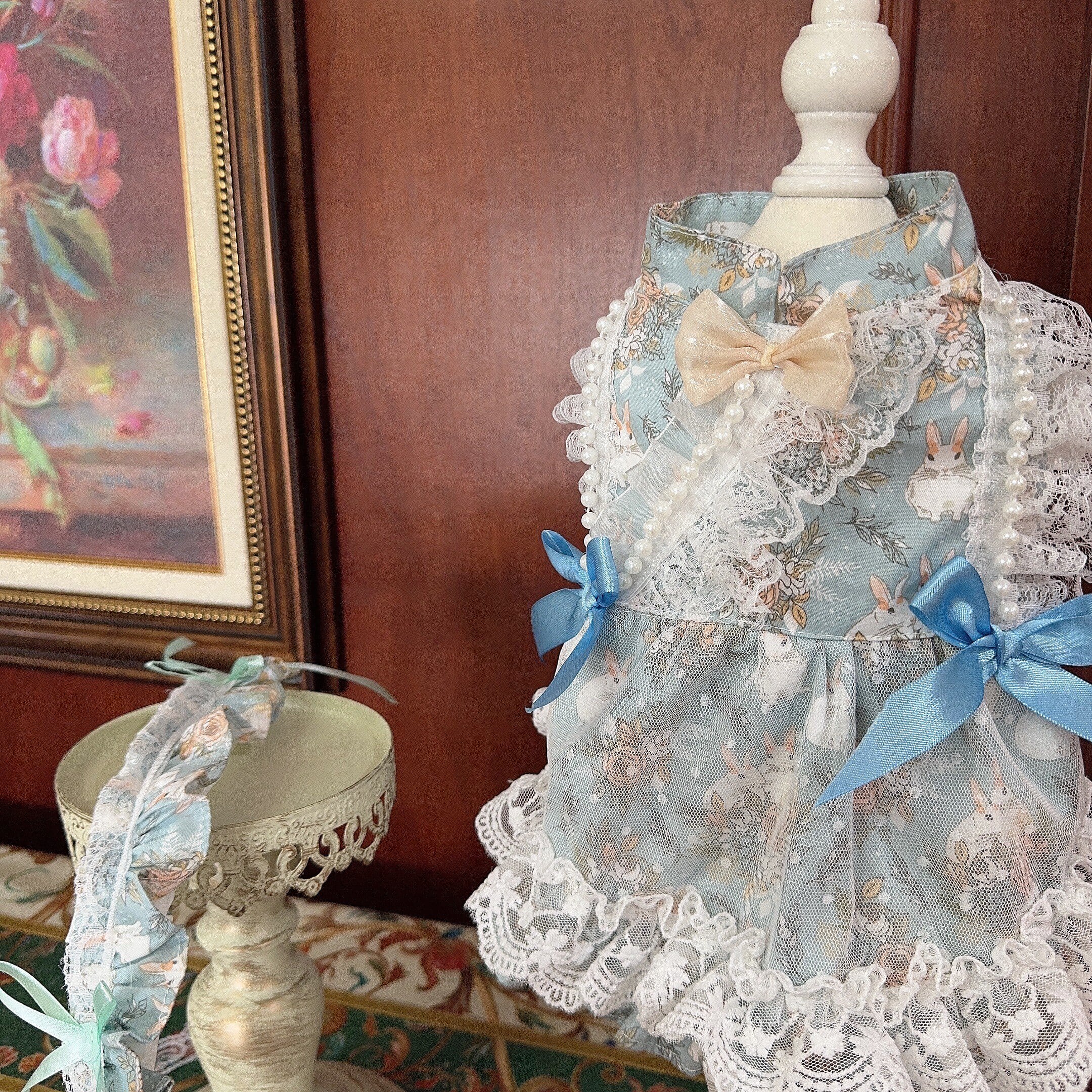 可愛らしいうさぎ柄とレースフリルが魅力の、クラシカルで上品なドレスセット。