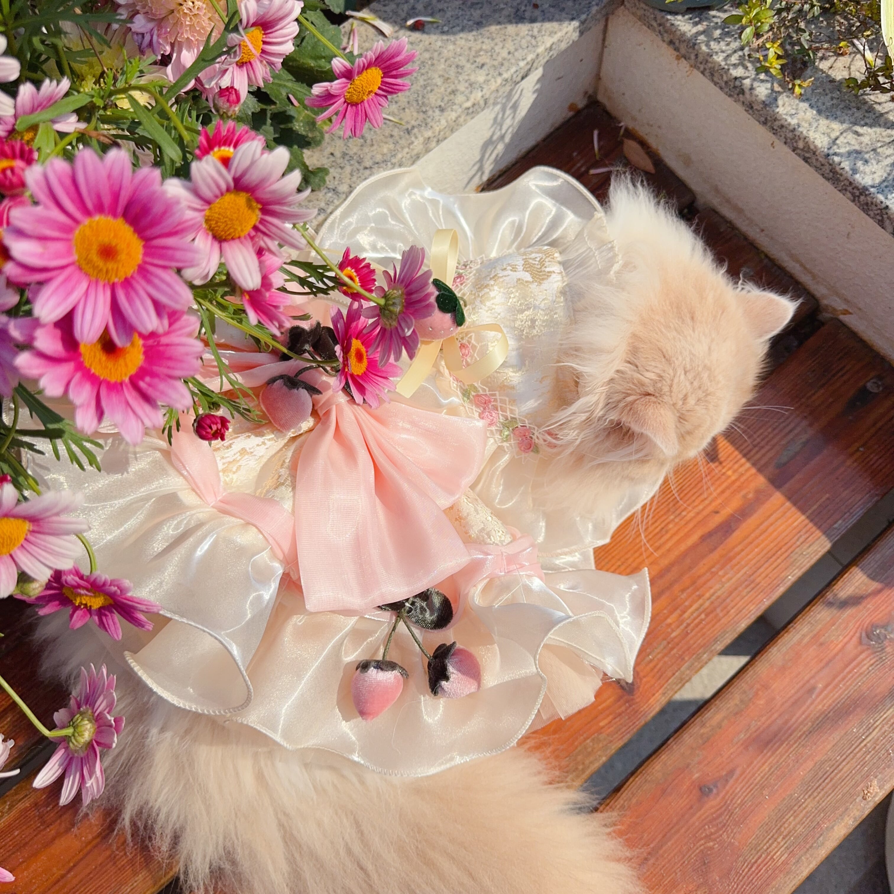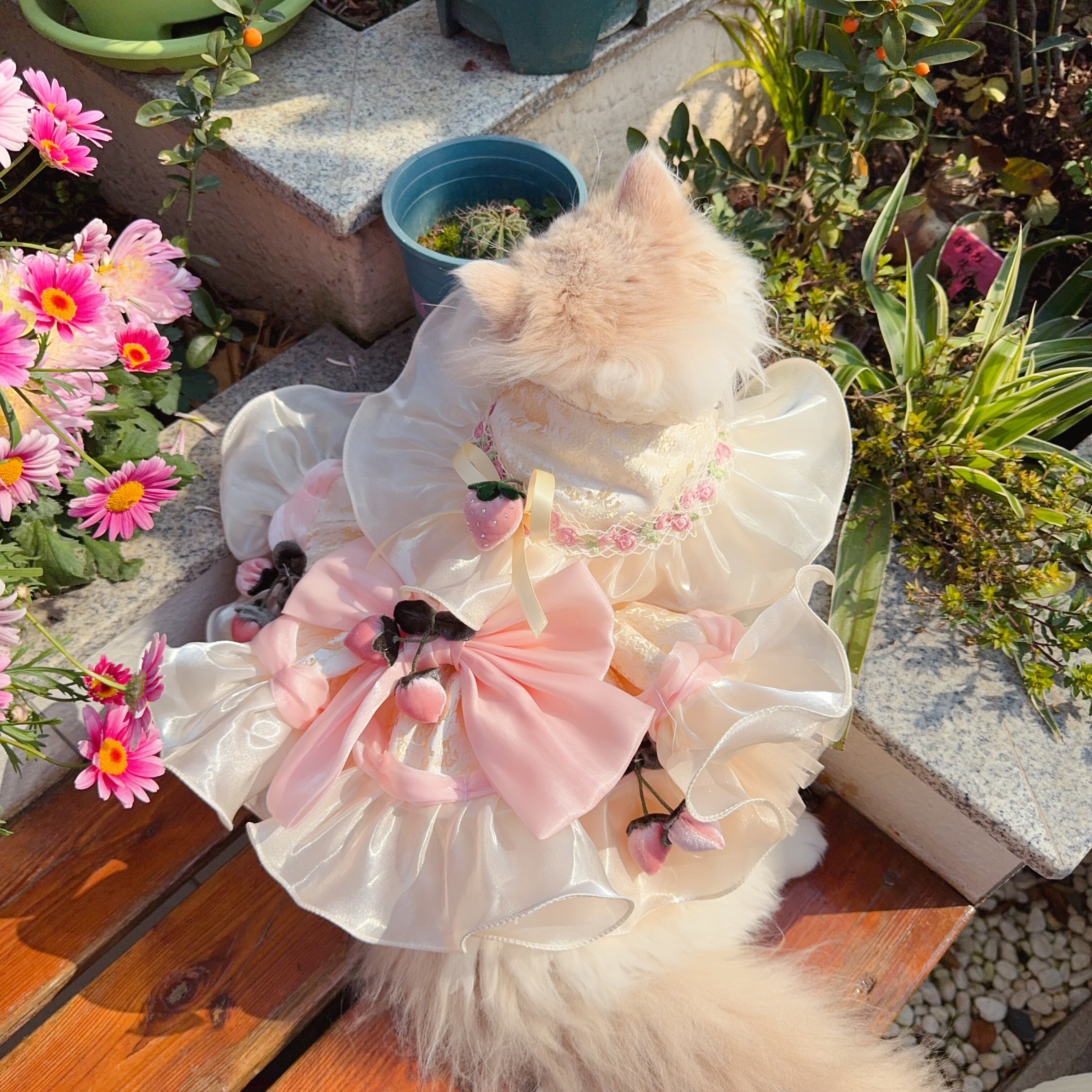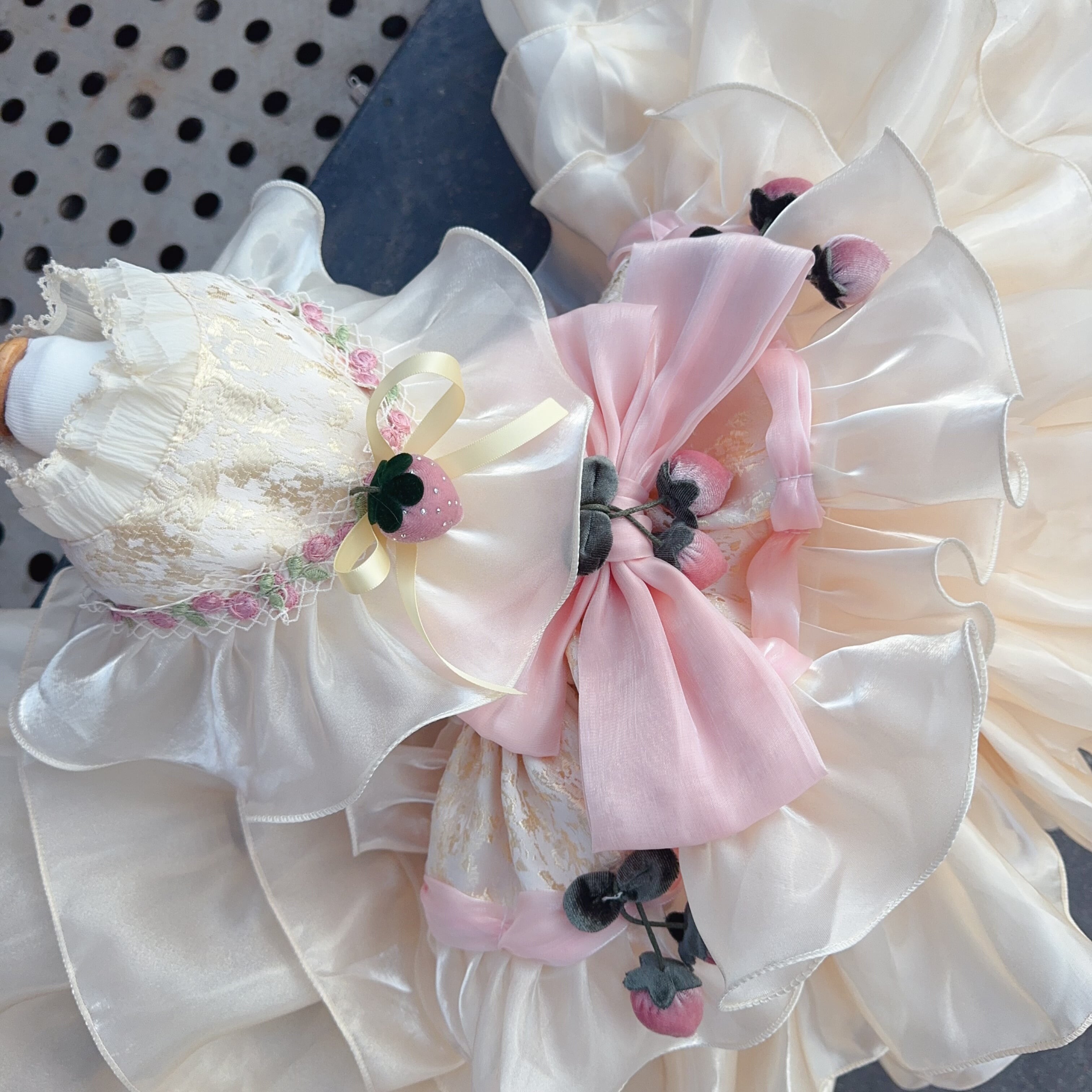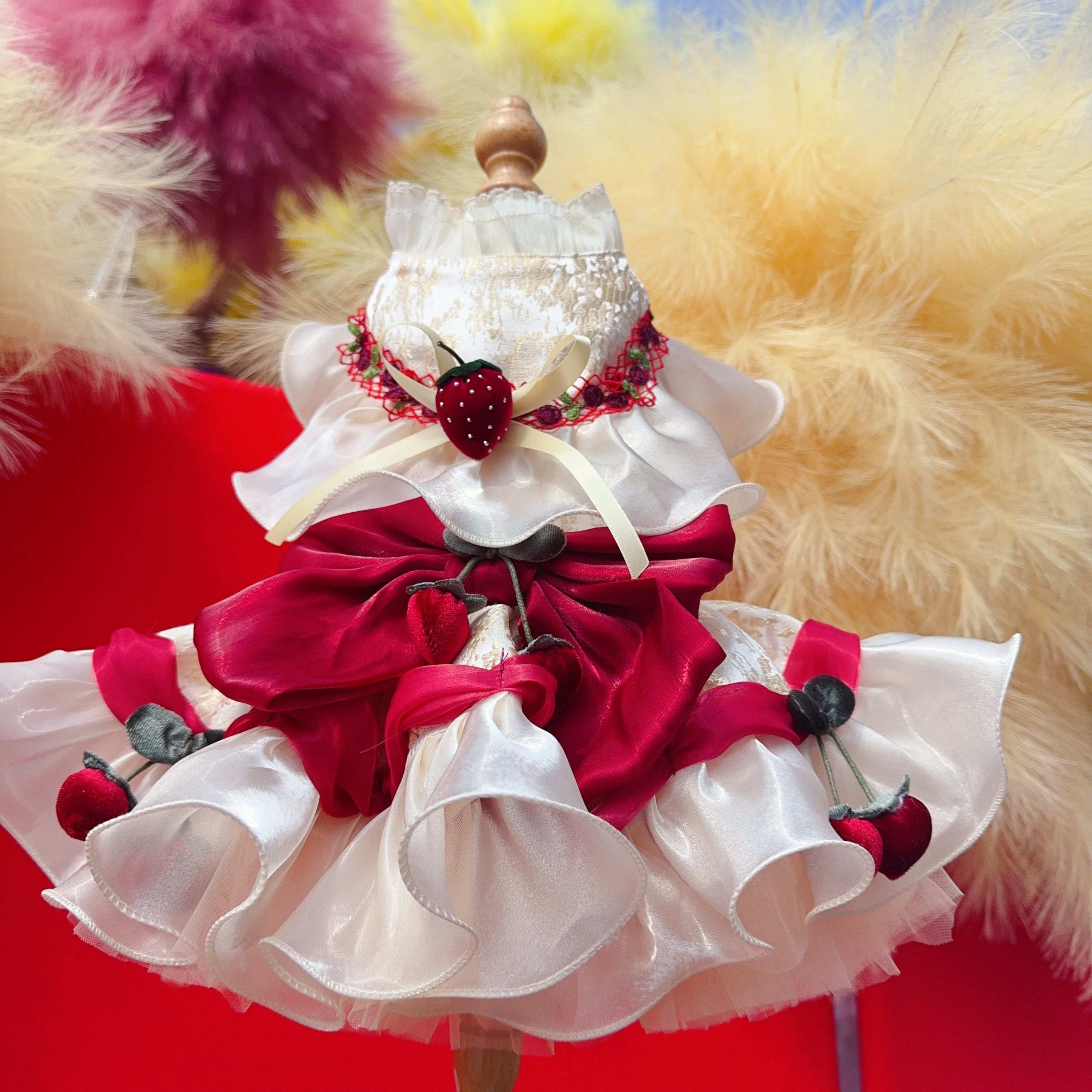 胸元にはストロベリーモチーフを飾り、