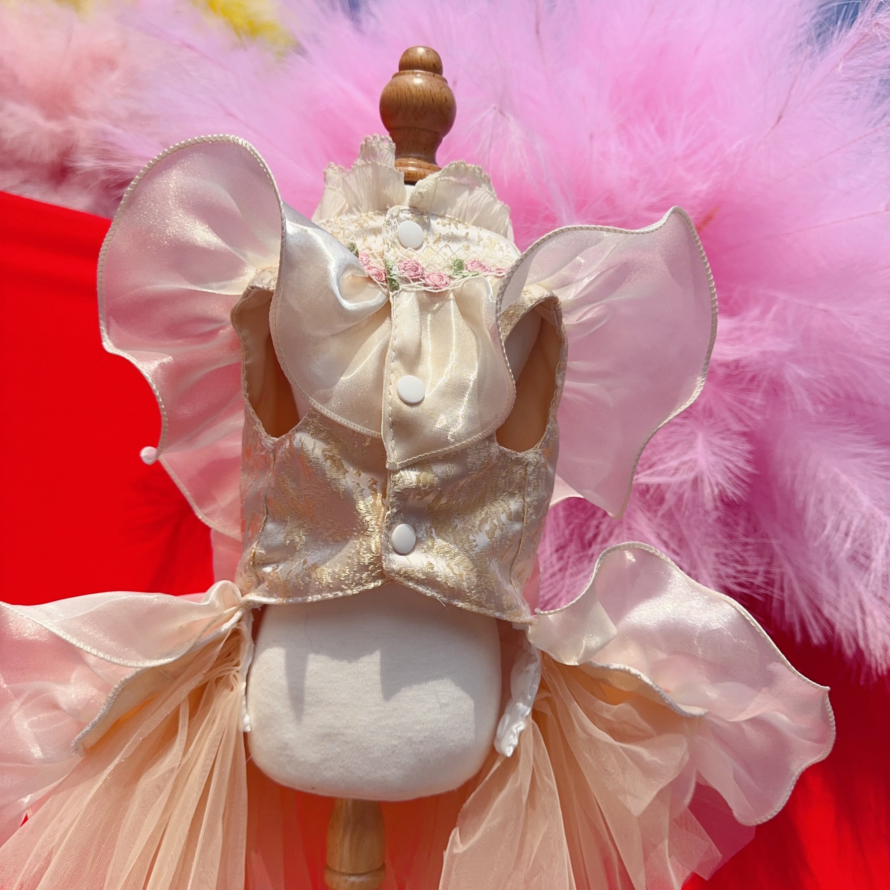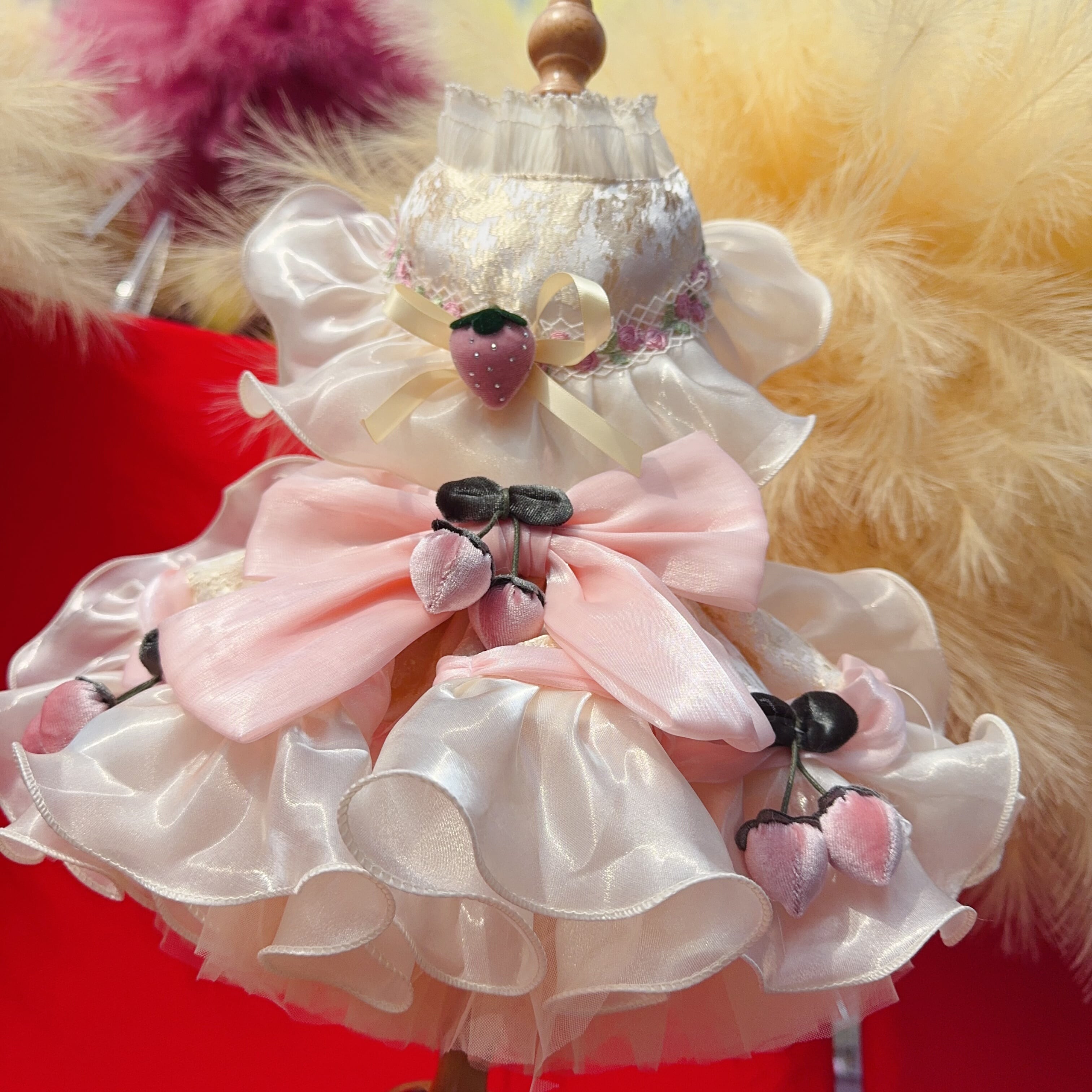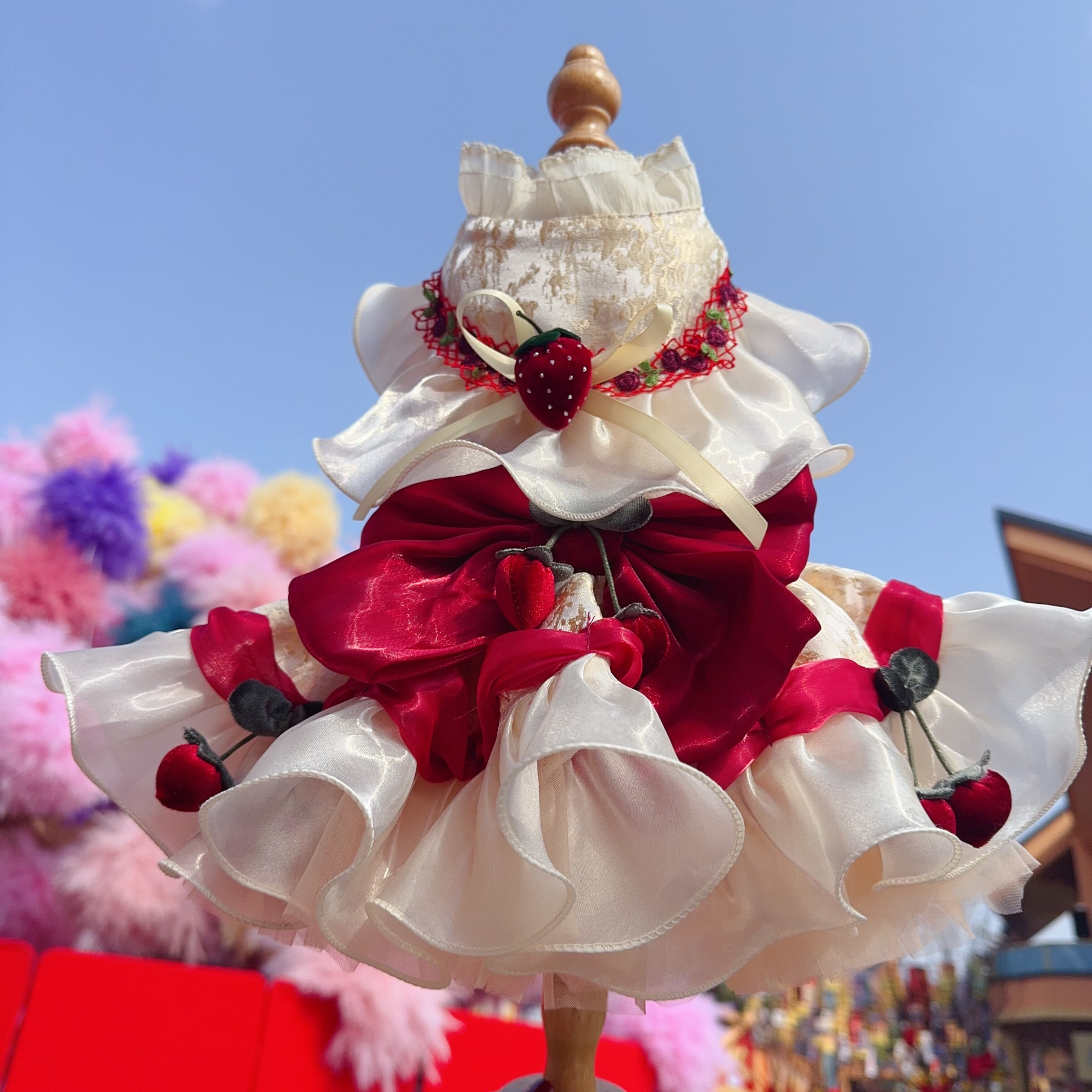 いちごとチェリーモチーフが可愛らしい、華やかなプリンセスドレス。
