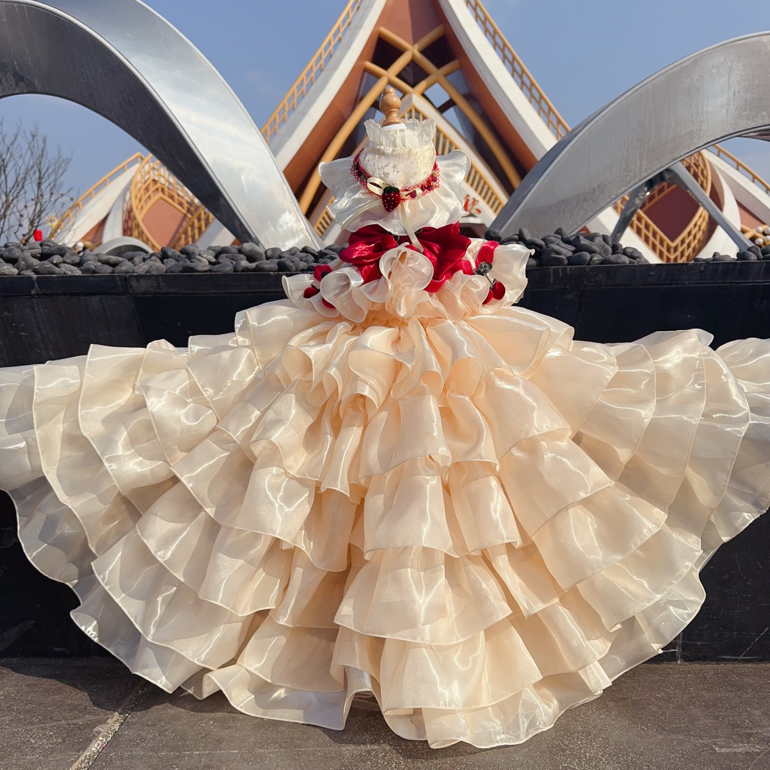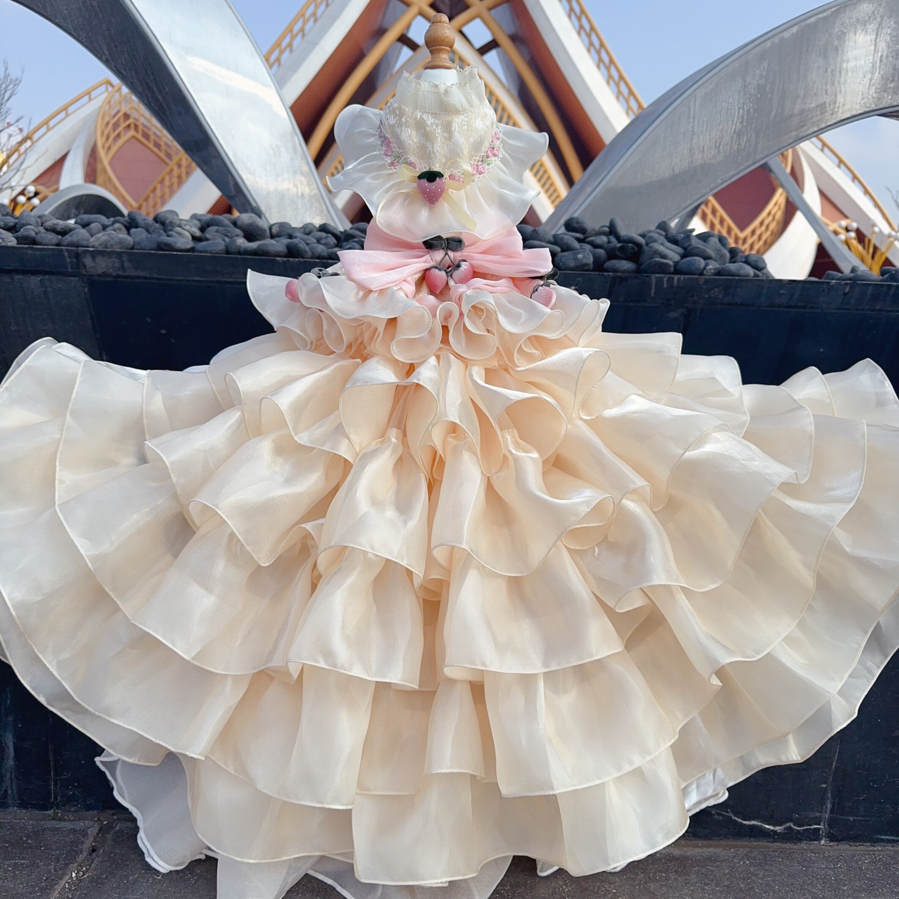たっぷり重なったフリルが華やかな、ラグジュアリーなプリンセスドレス。