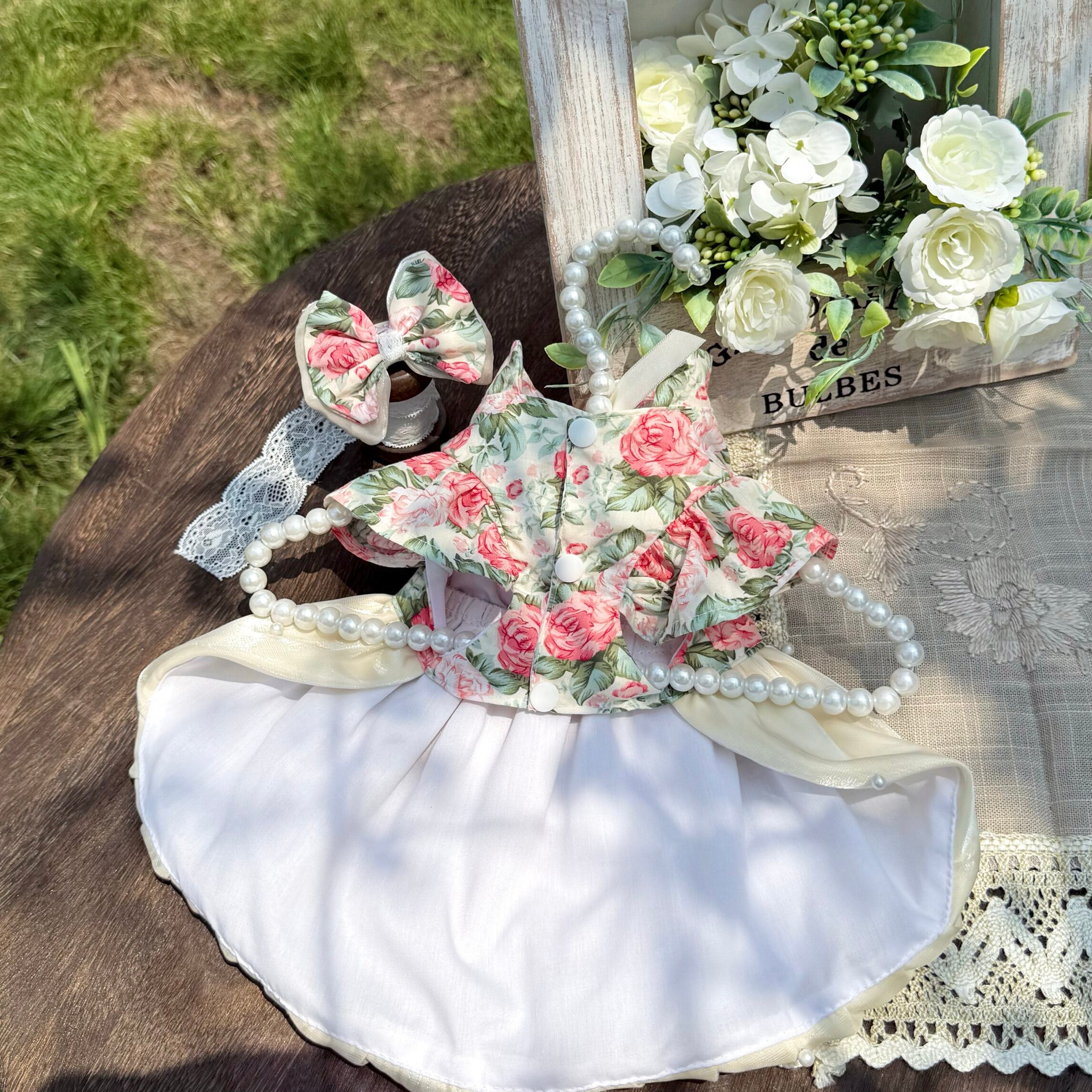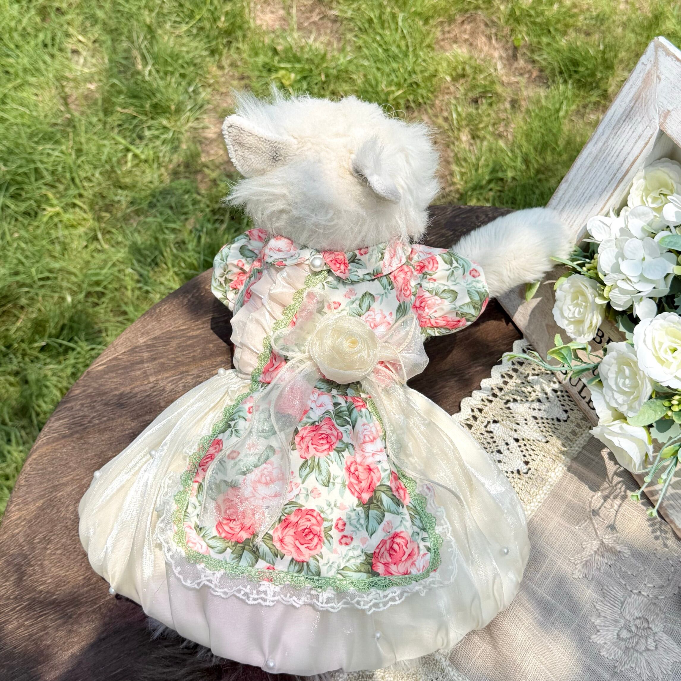 やわらかなクリームカラーに、繊細なローズ柄をあしらったロマンティックなワンピース。
