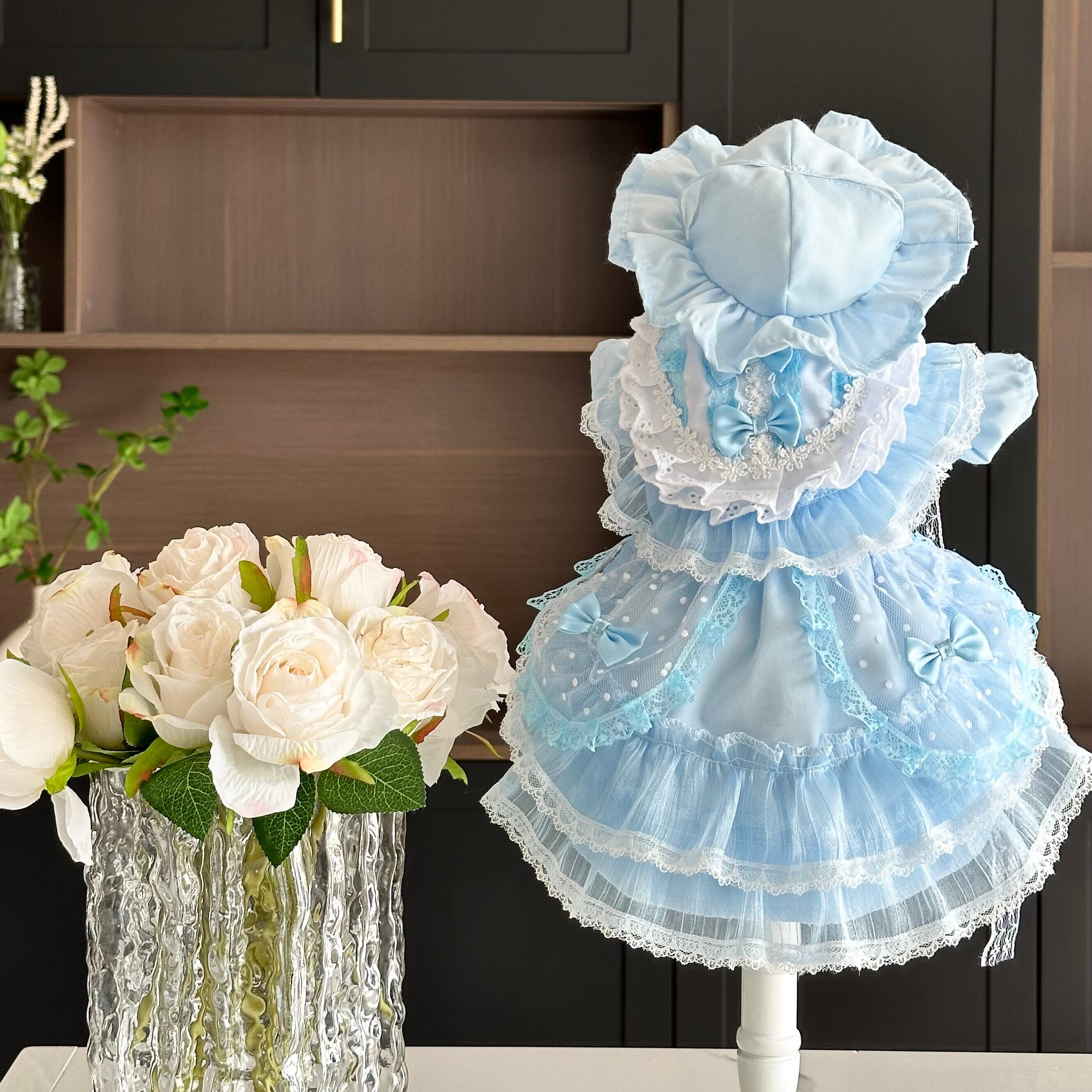 透き通るようなブルーにレースとチュールを重ねた、夢の中のプリンセスのようなワンピース。