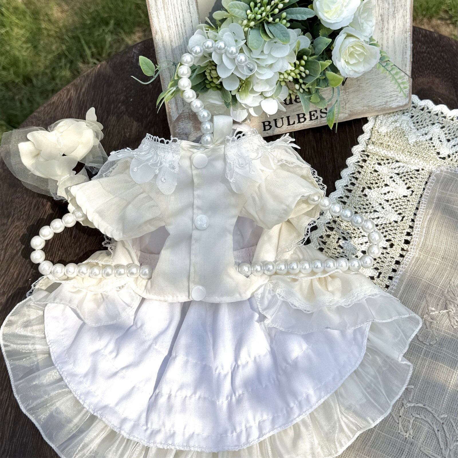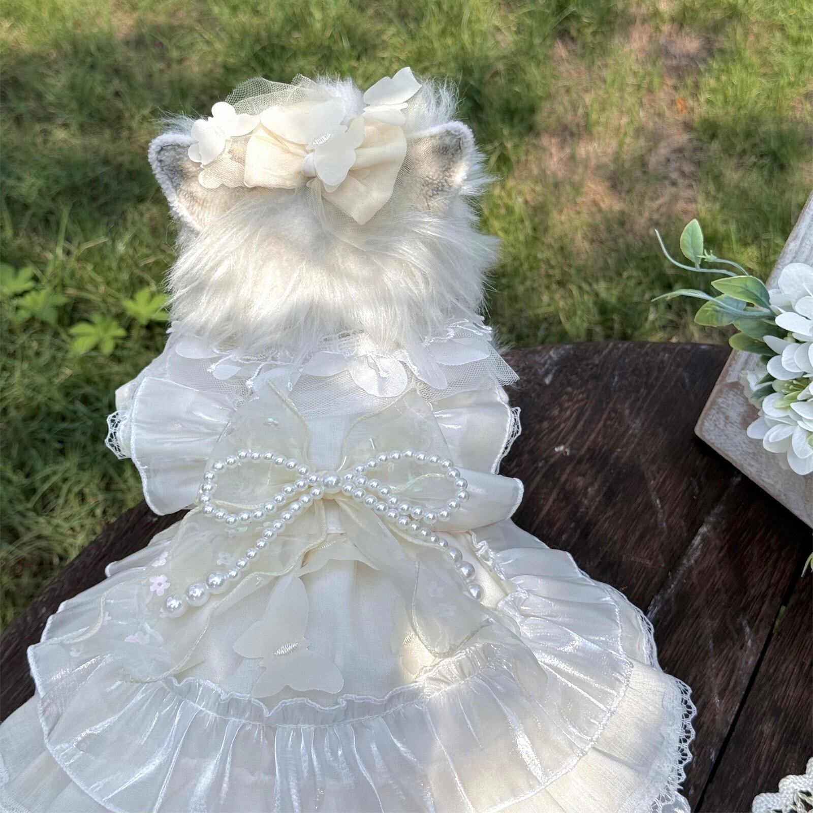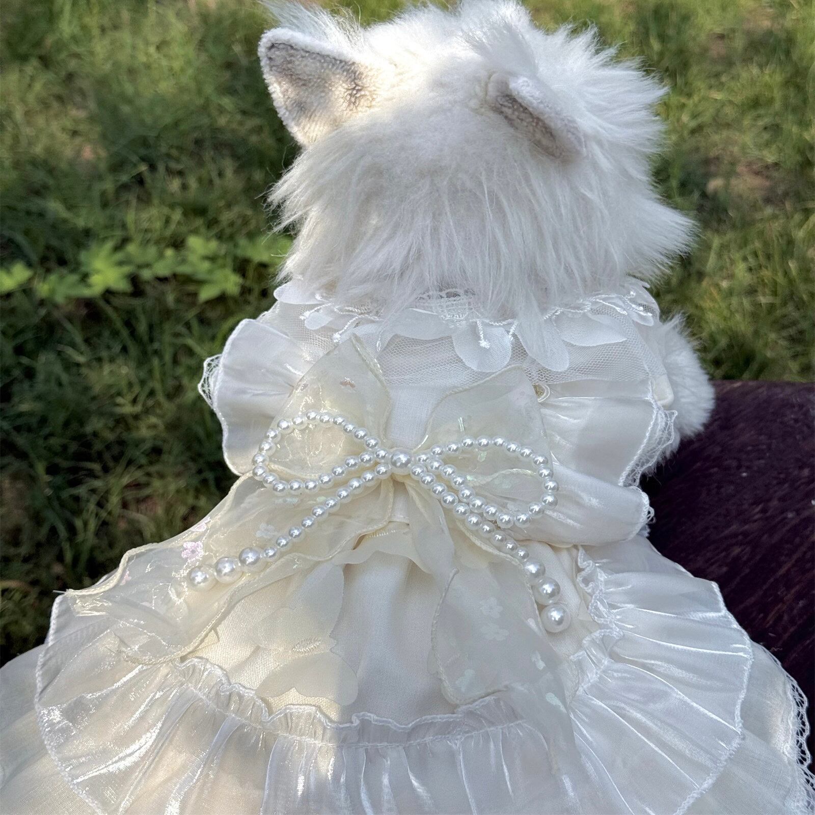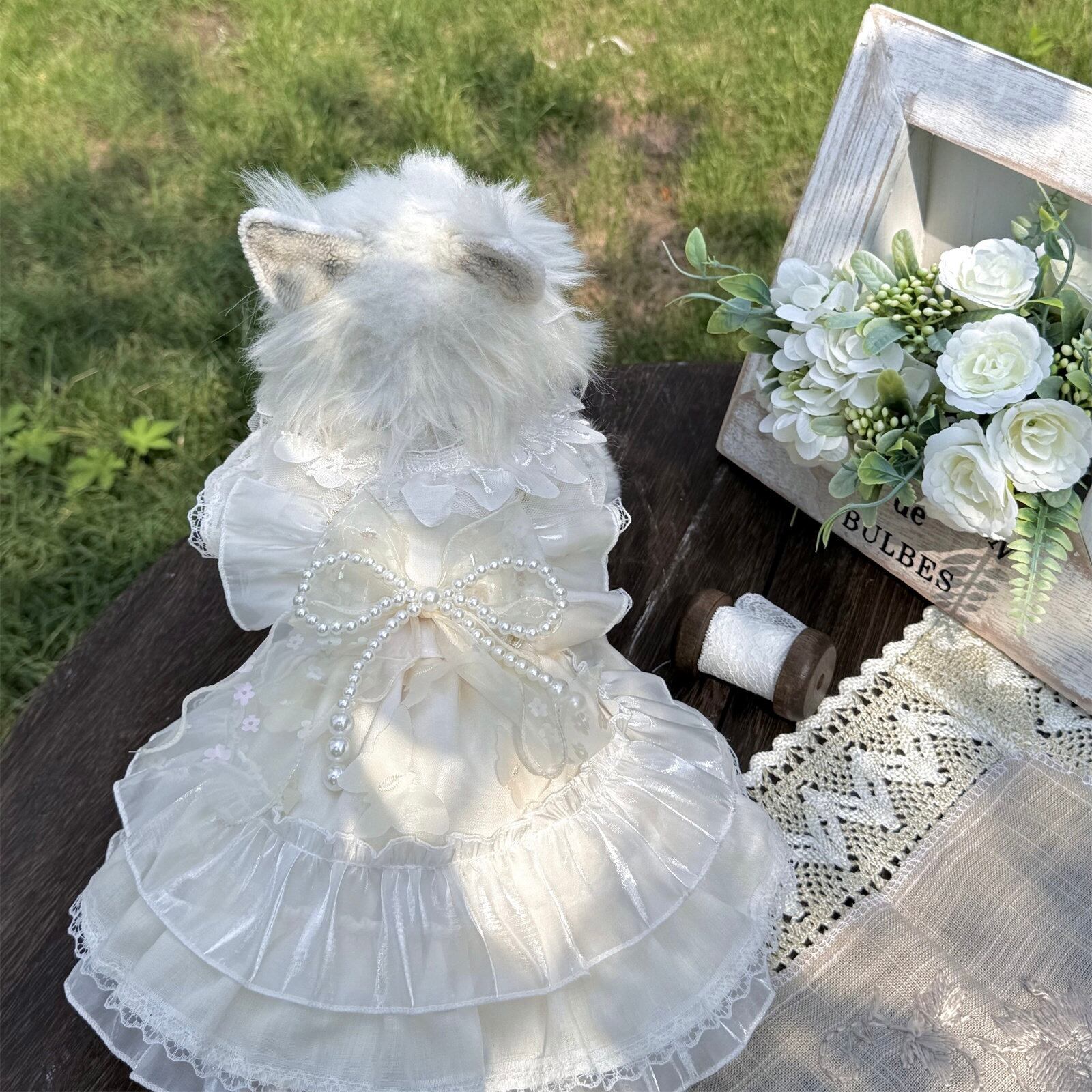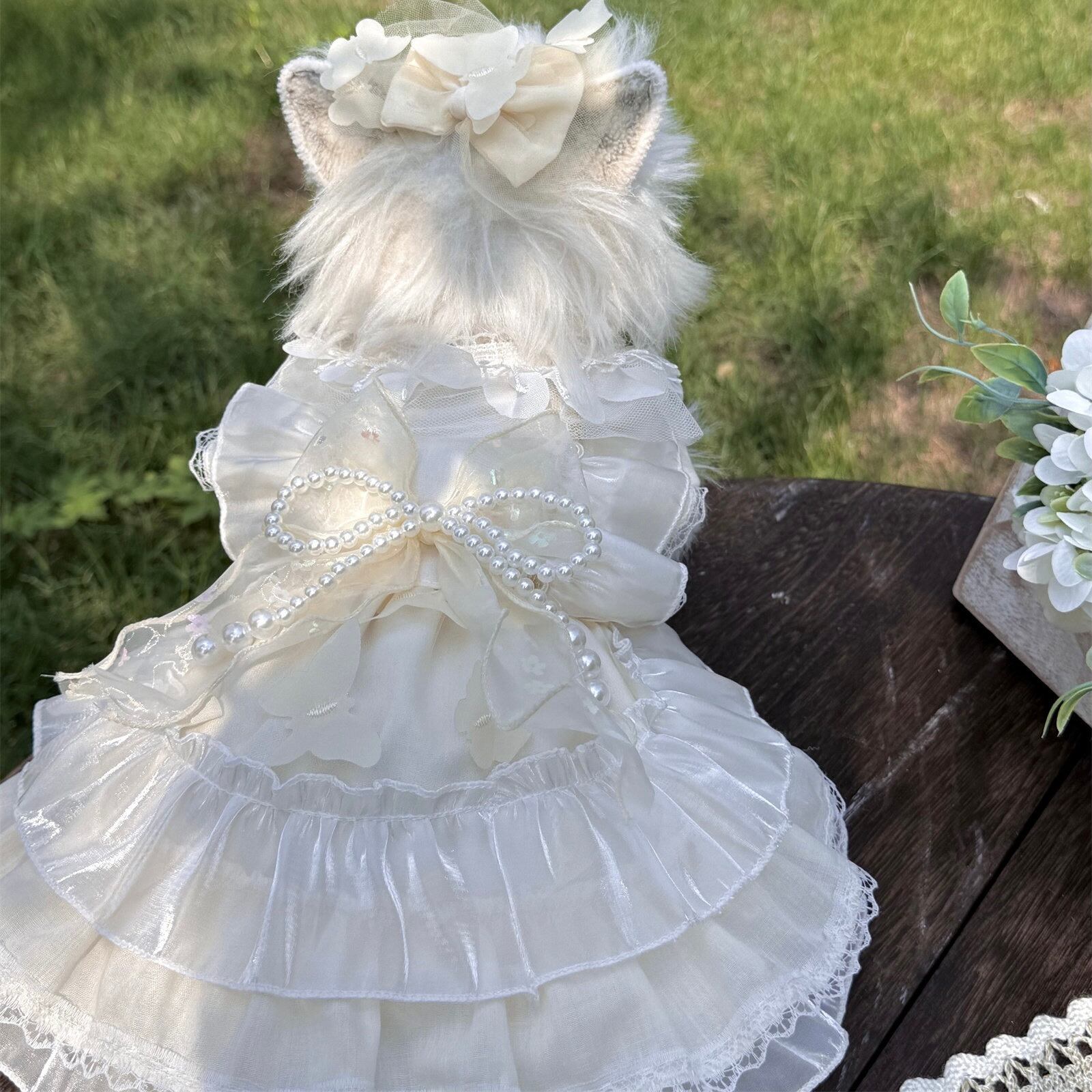 繊細なレースと上品なパールリボンが、愛犬を可憐なプリンセスに包み込みます。