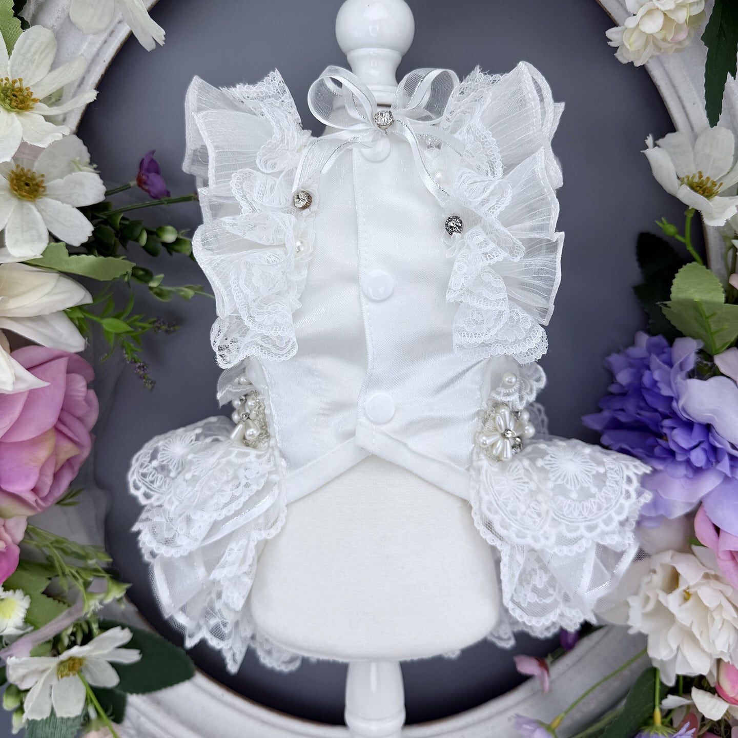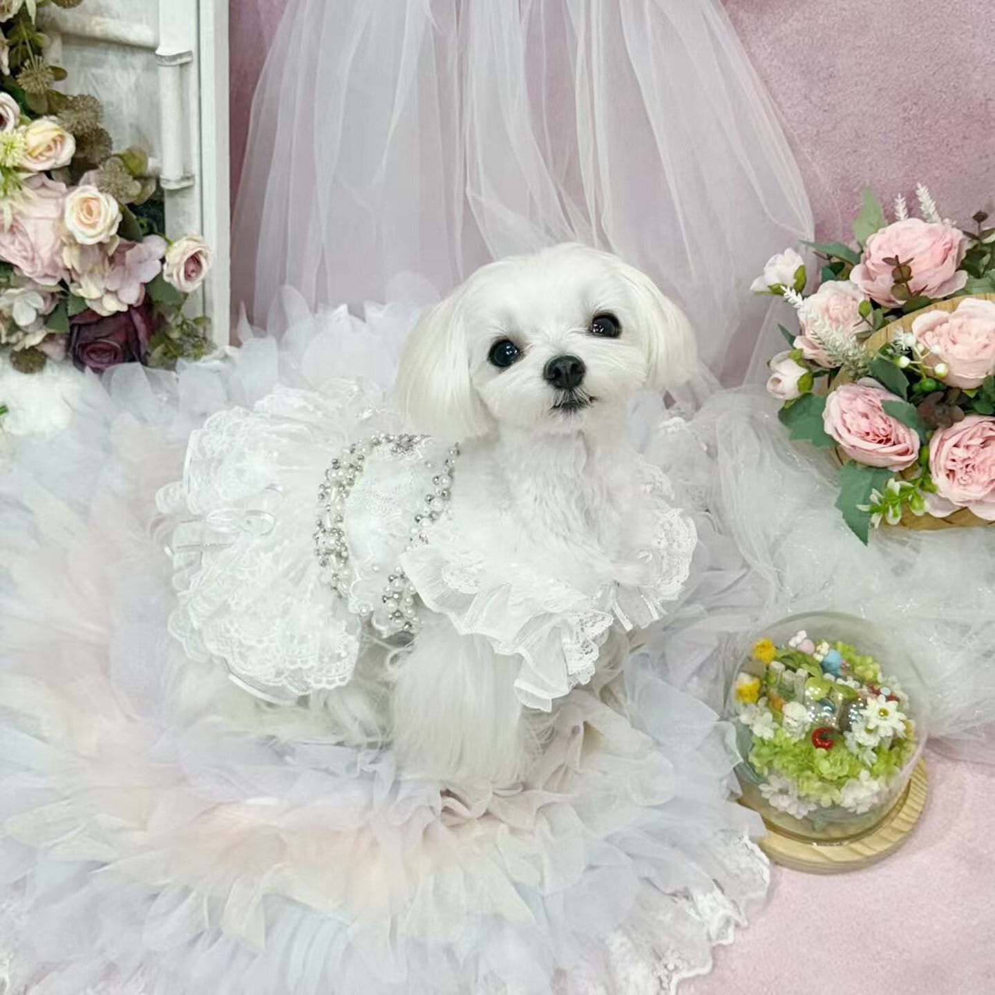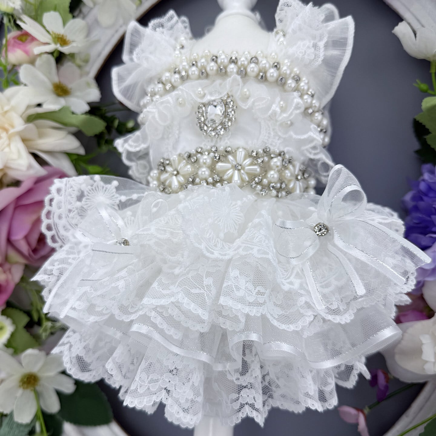 繊細なレースとパールがきらめく、気品あふれる純白ドレス。