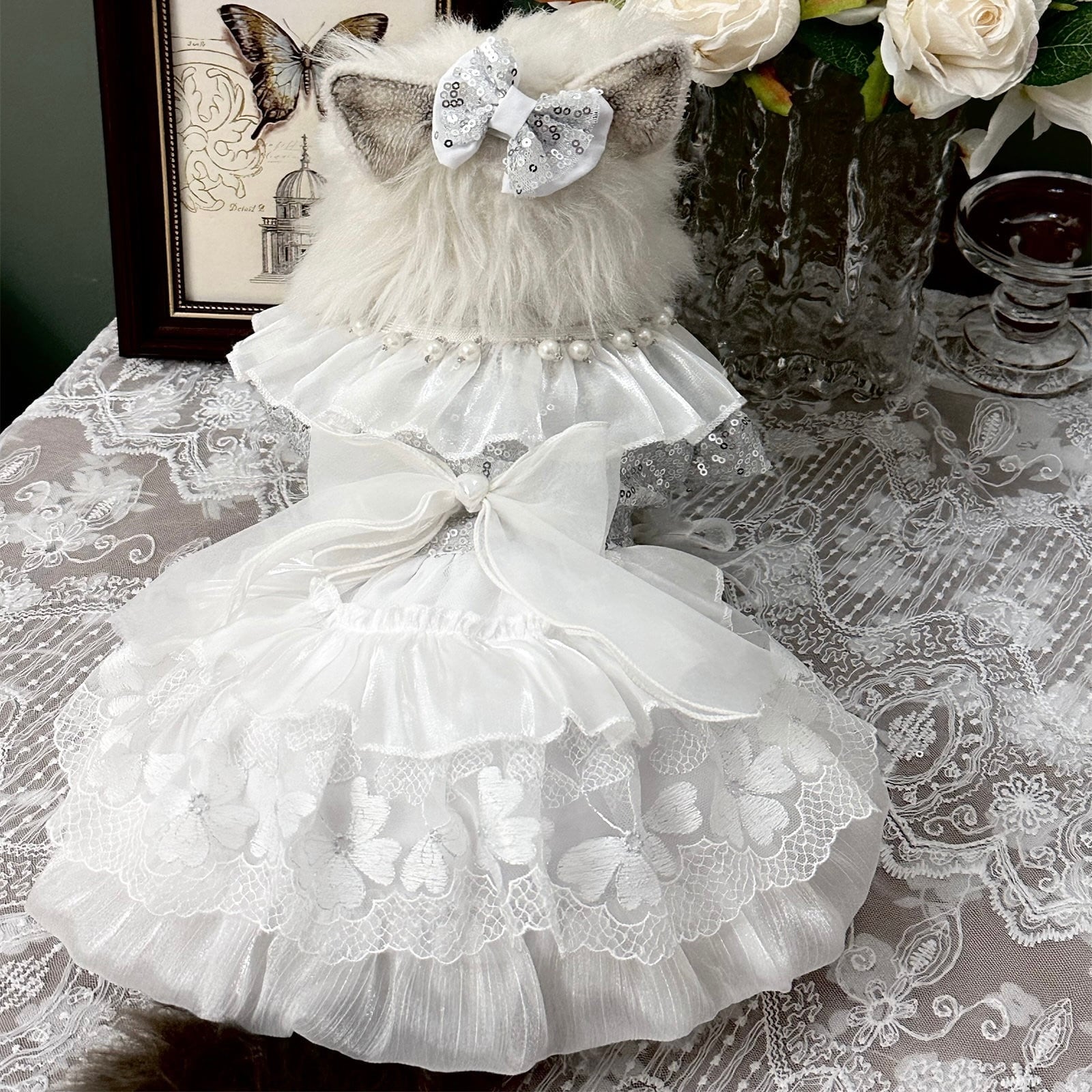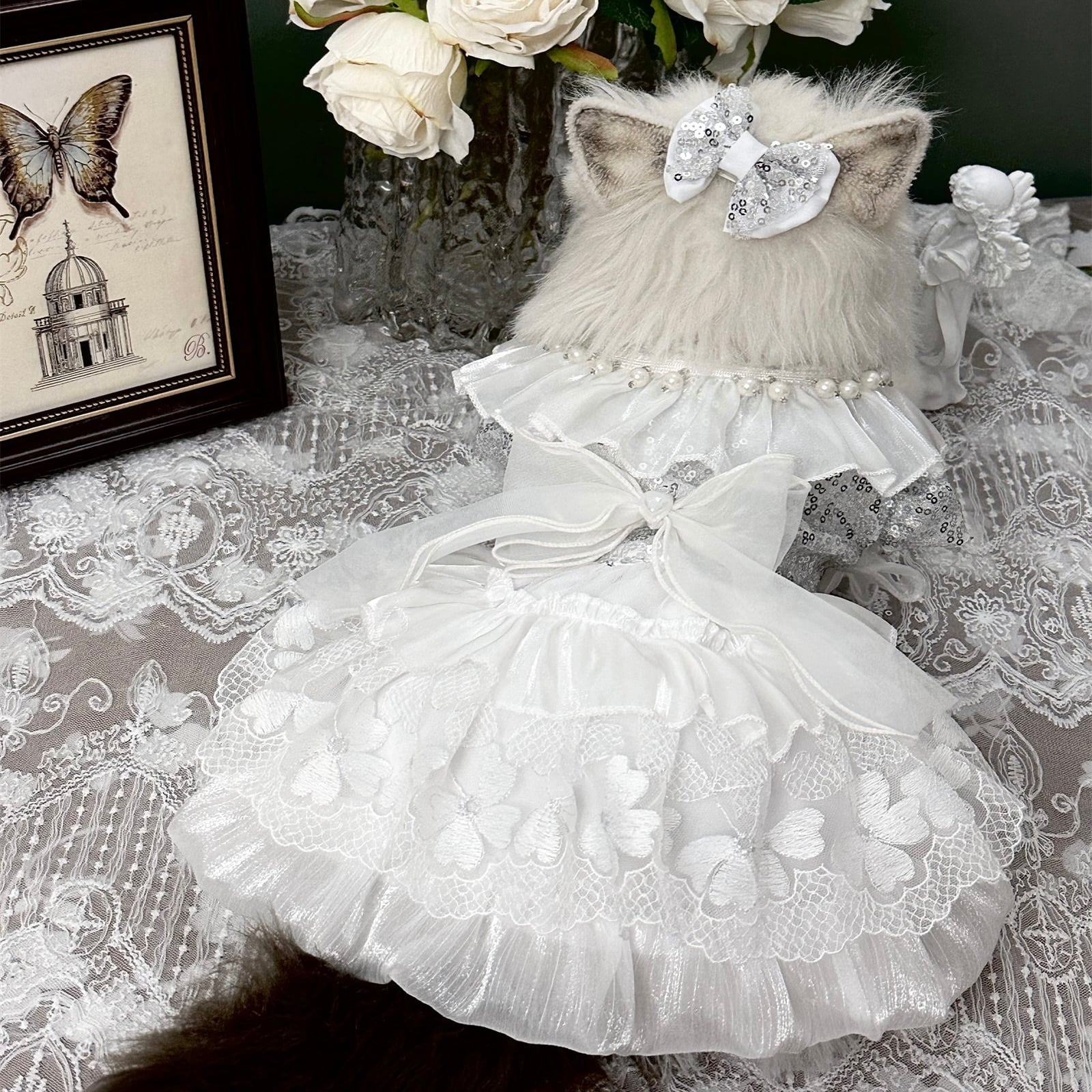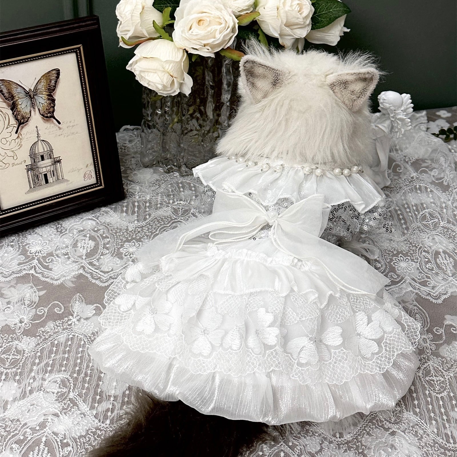 繊細なレースと蝶モチーフが舞う、幻想的な純白ドレス。