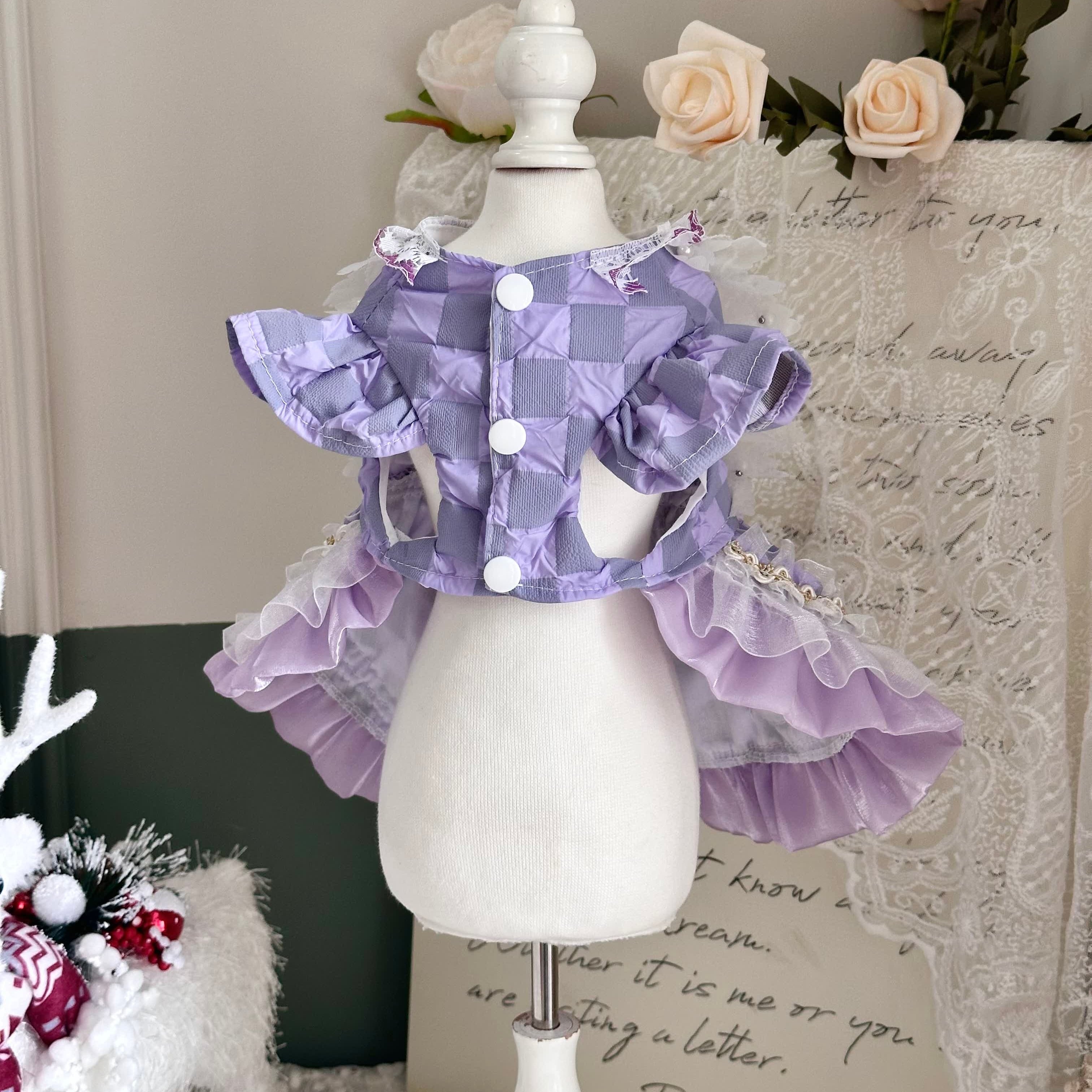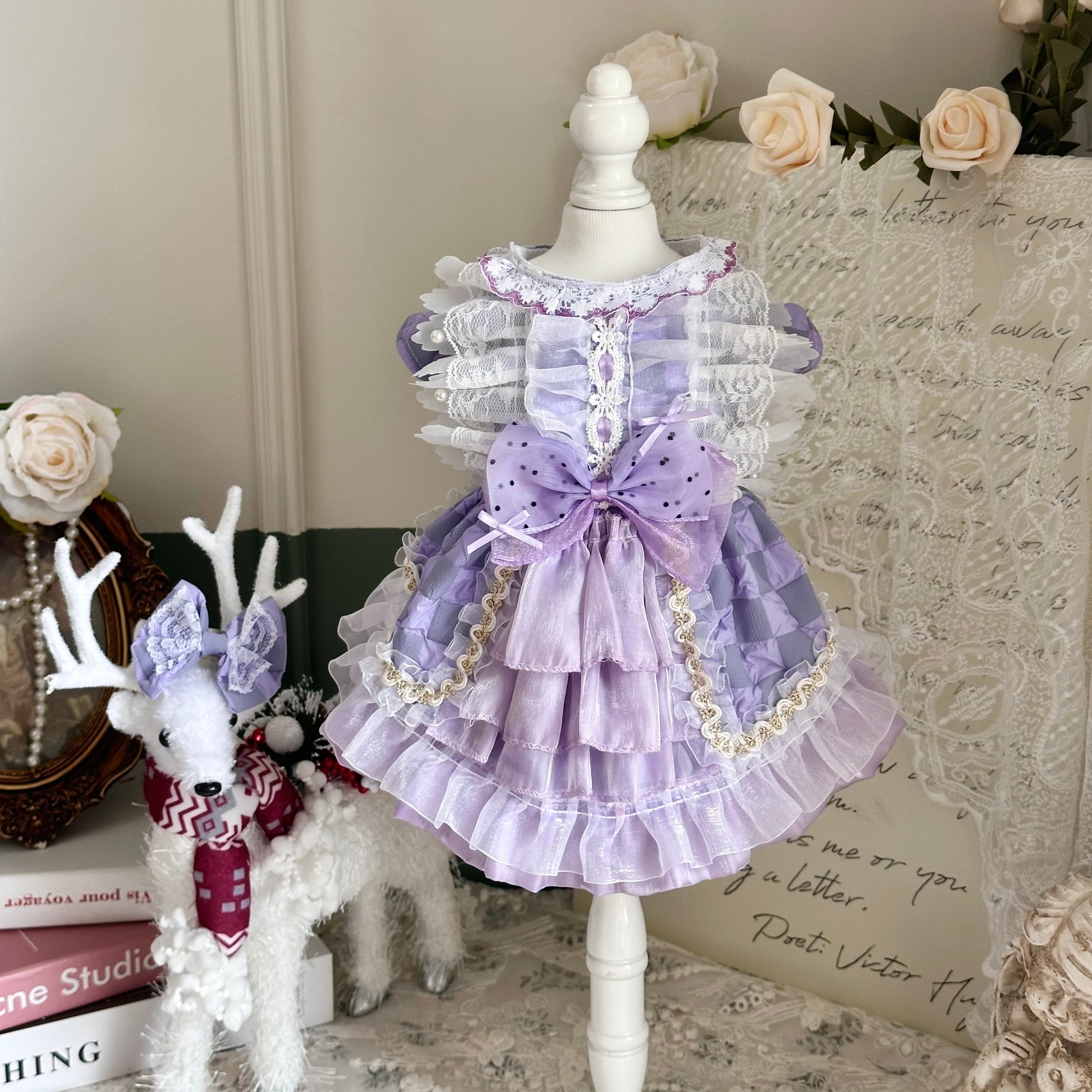 ラベンダーフリルのクラシカルプリンセスドレス&リボン 00997