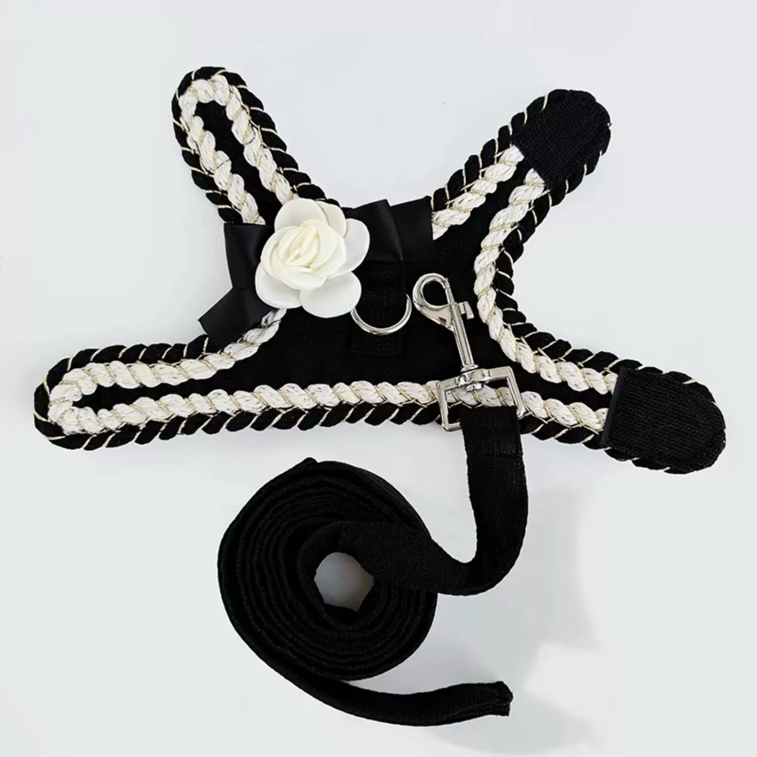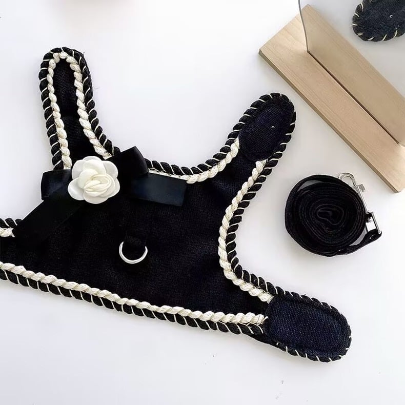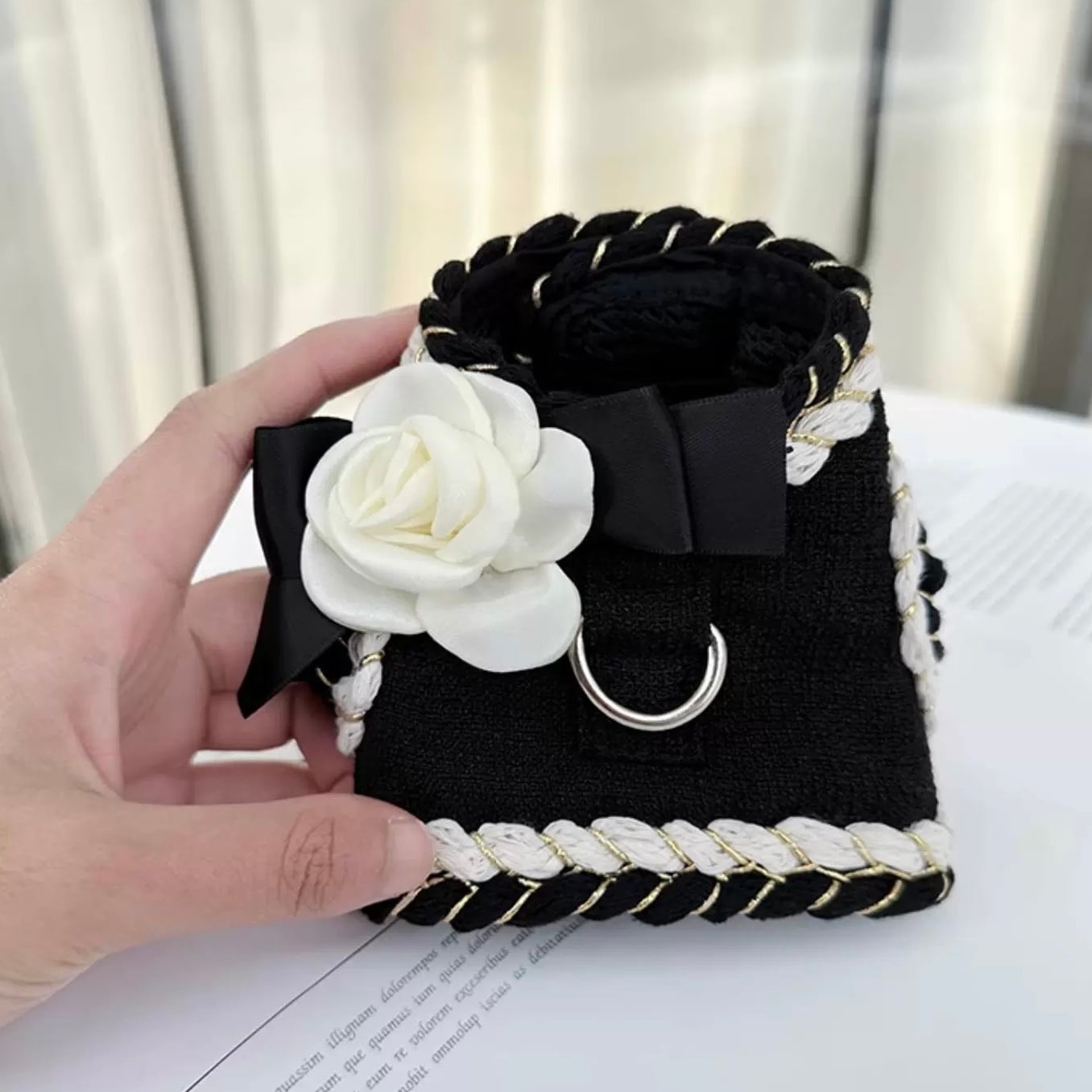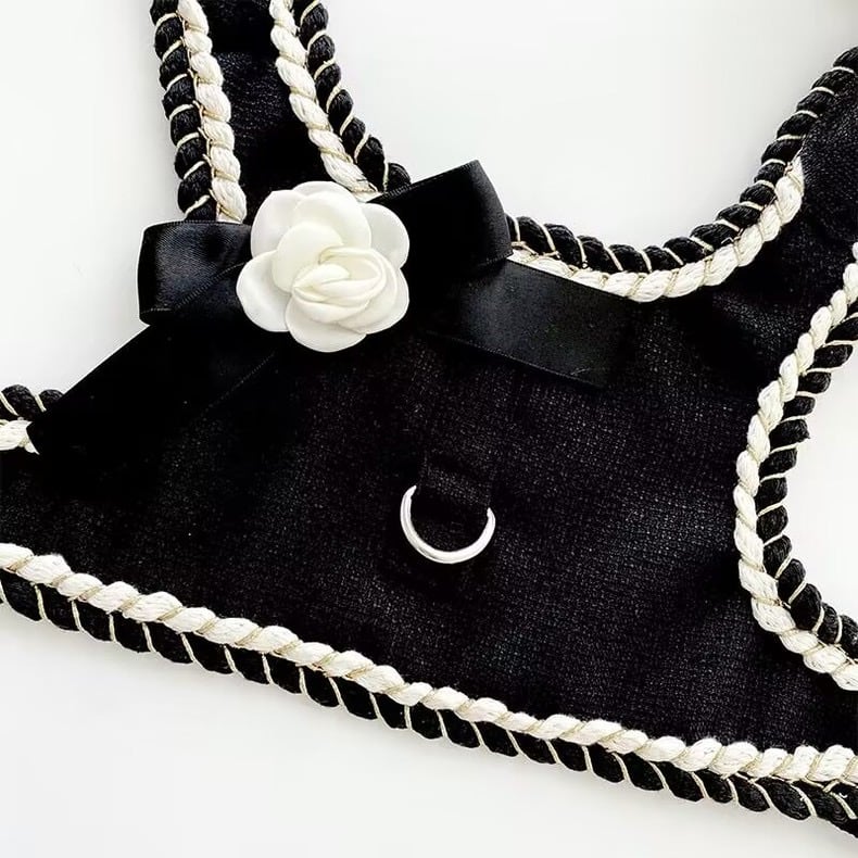 首元にカメリアがあしらわれた、上品なツイード生地のハーネスです。