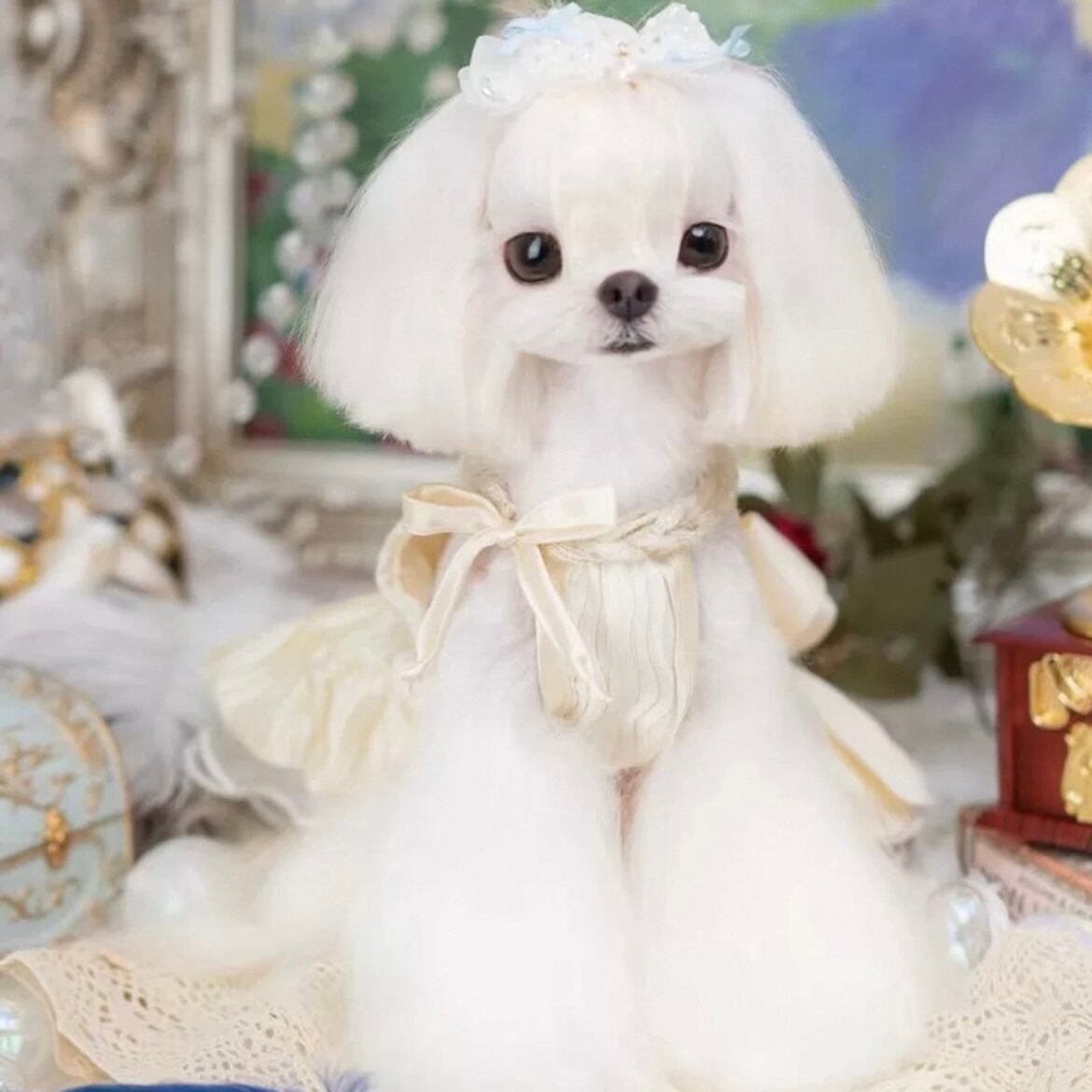 大きなリボンがアクセントとなり、ワンちゃんの魅力を引き立てます。