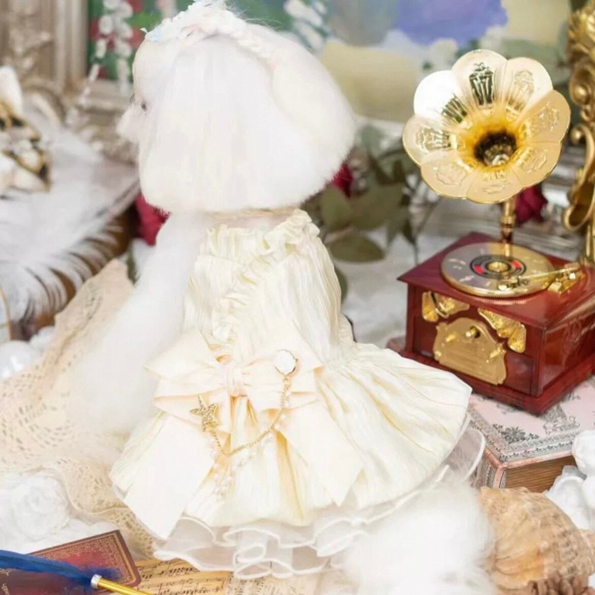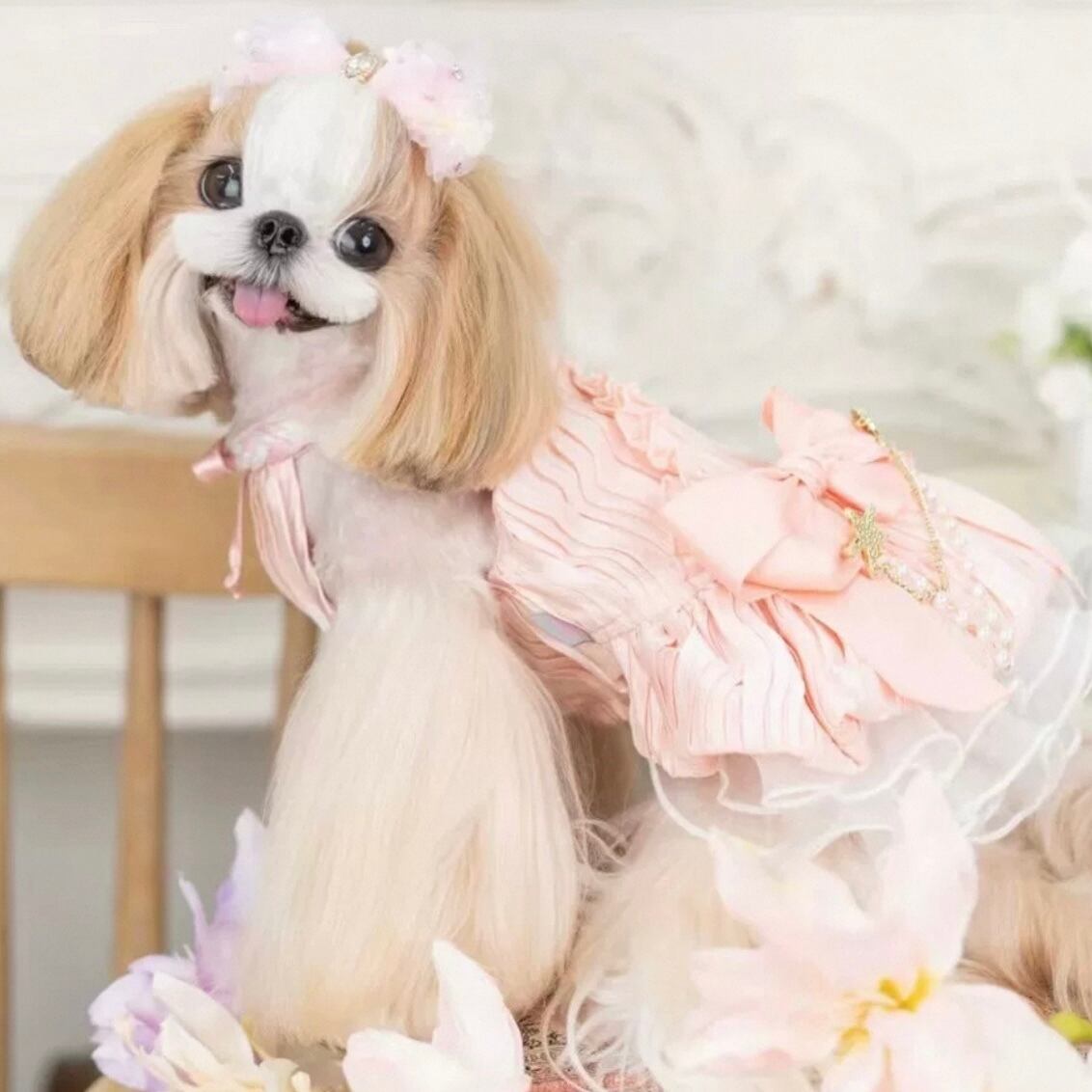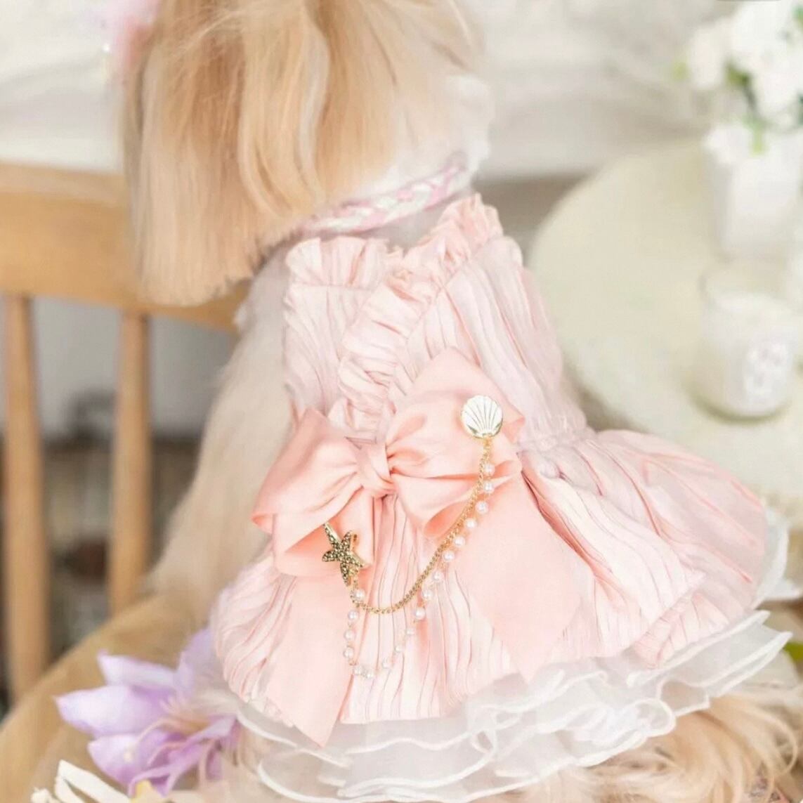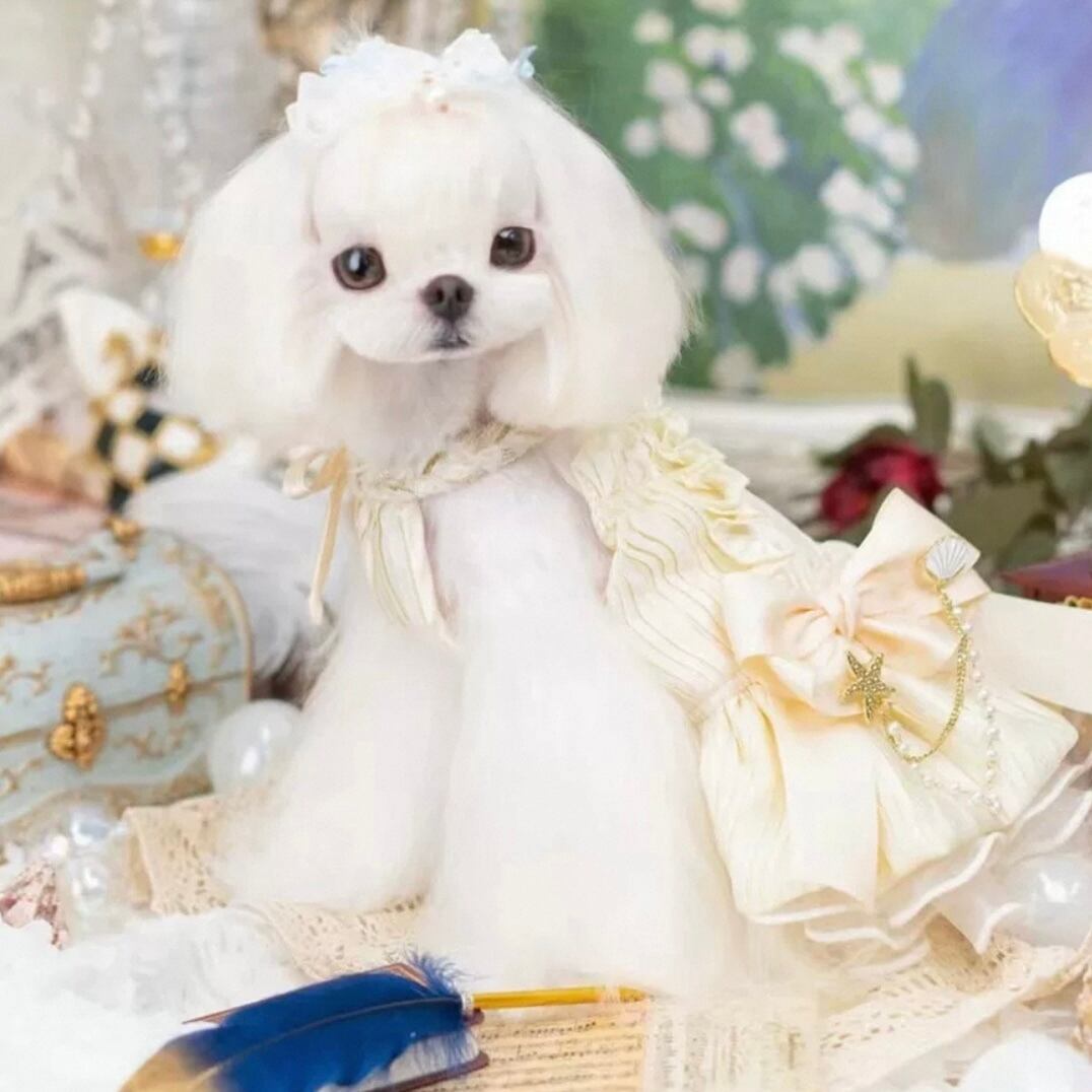 美しいプリーツが、動きに合わせて優雅に揺らめき、ワンちゃんをより一層可愛く演出します。