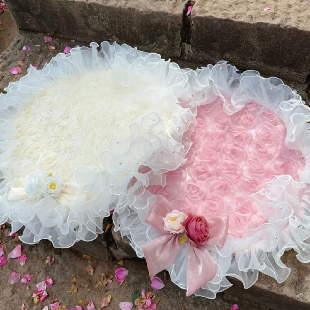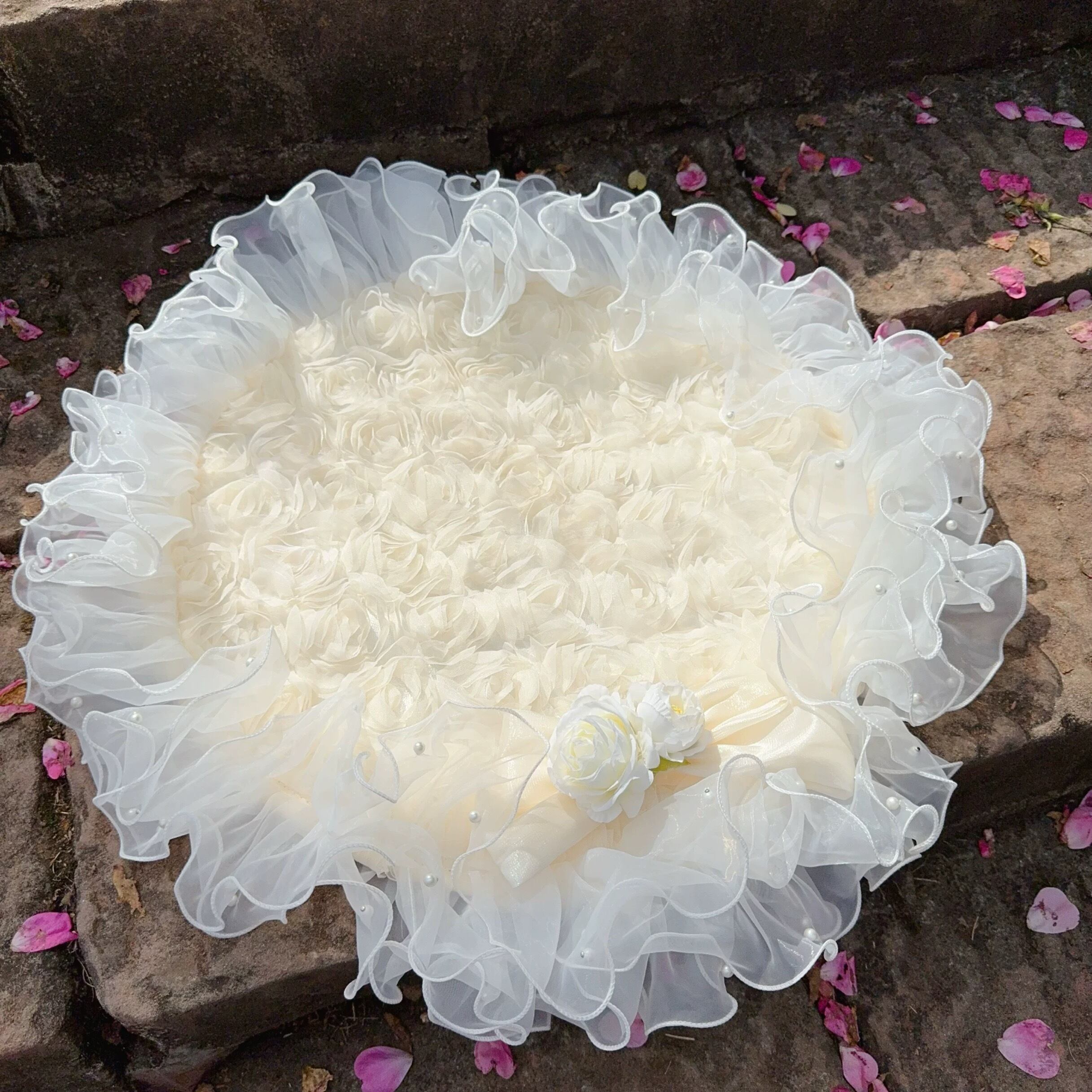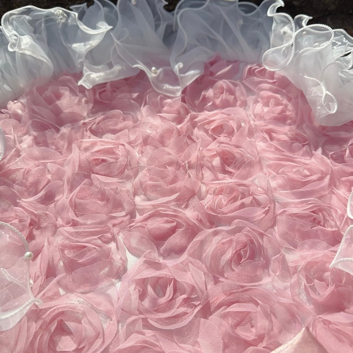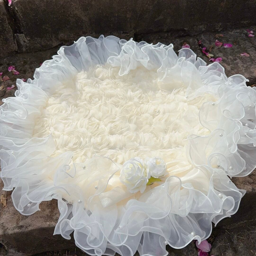 ふわふわのチュールレースが贅沢に施された、ラウンドマット。