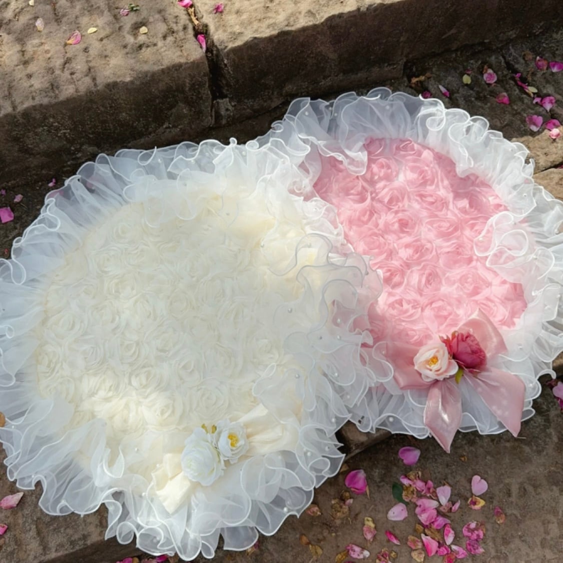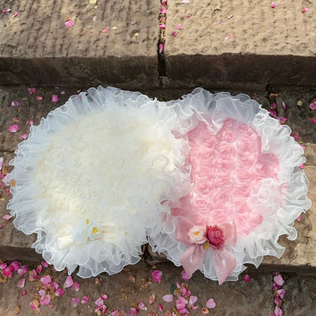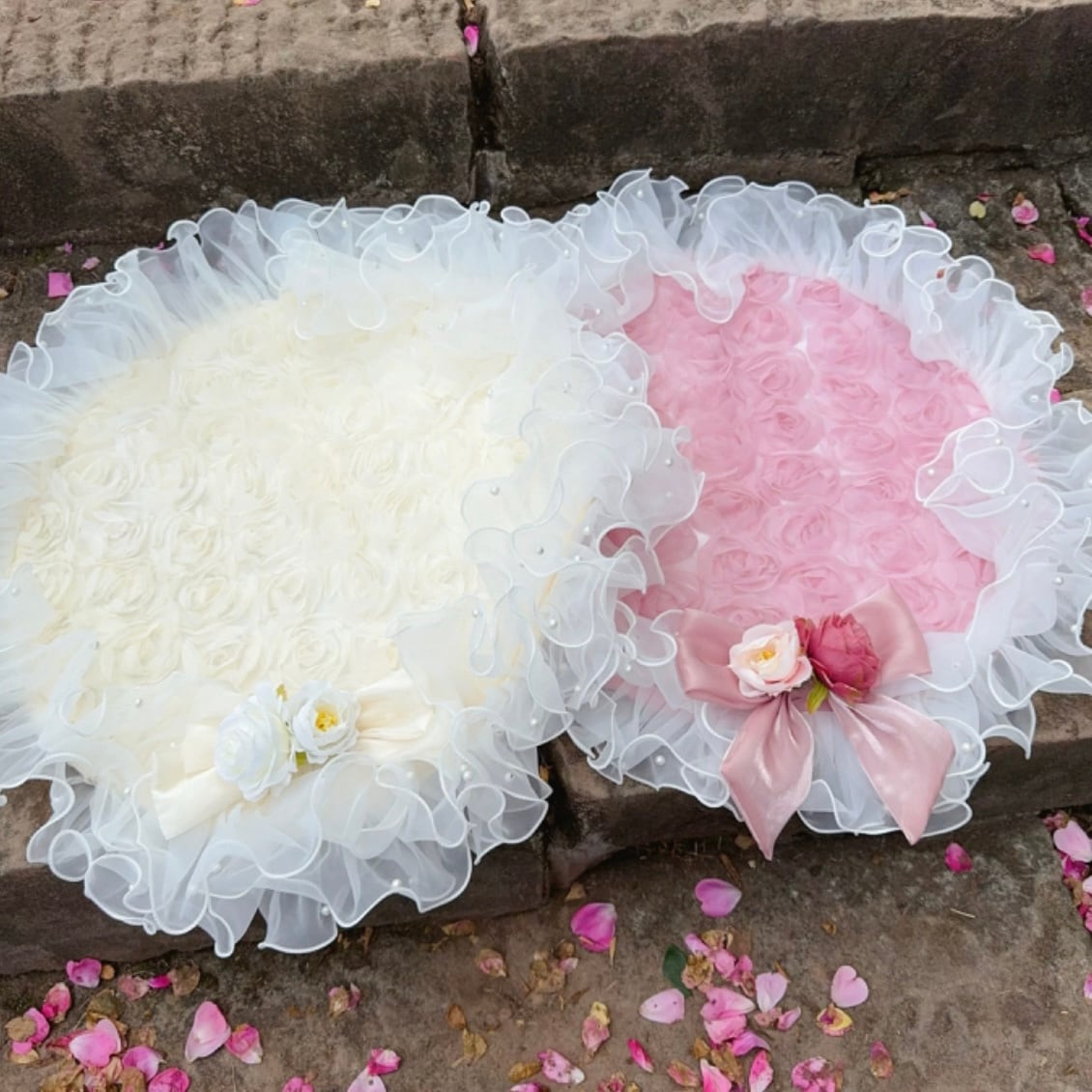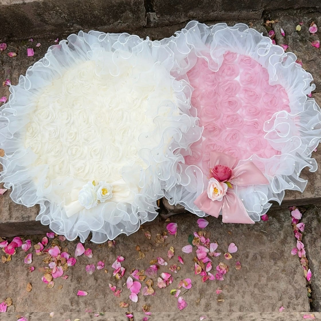ふわふわのチュールレースが贅沢に施された、ラウンドマット。