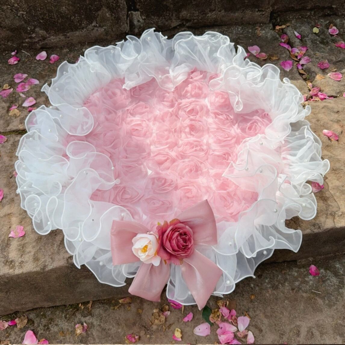 無数のローズモチーフが美しく重なり合い、まるで花束のような華やかさを放ちます。