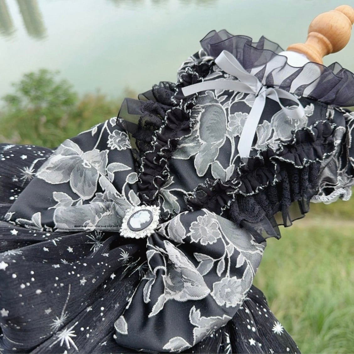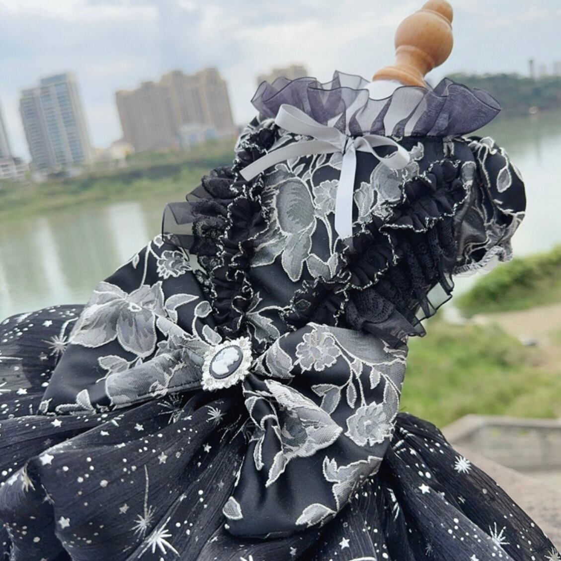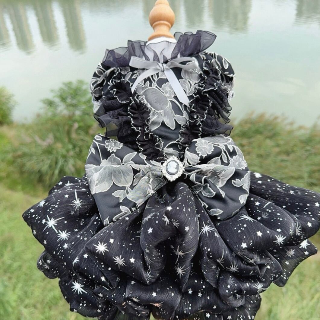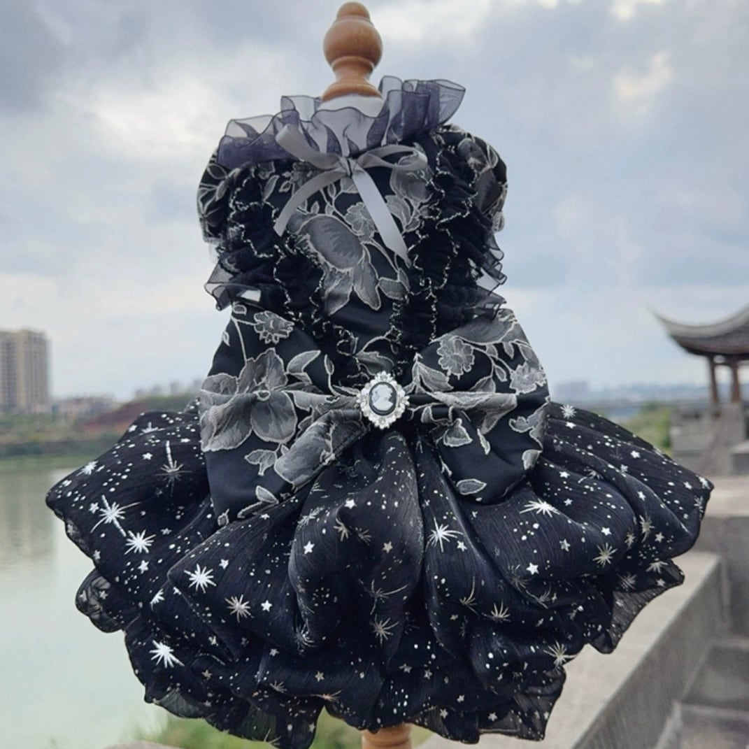 夜空に輝く星々を思わせる、ロマンティックなデザインのペット用ドレスです。