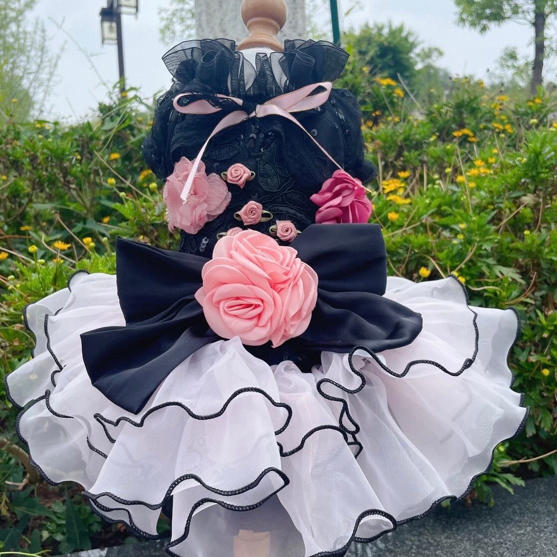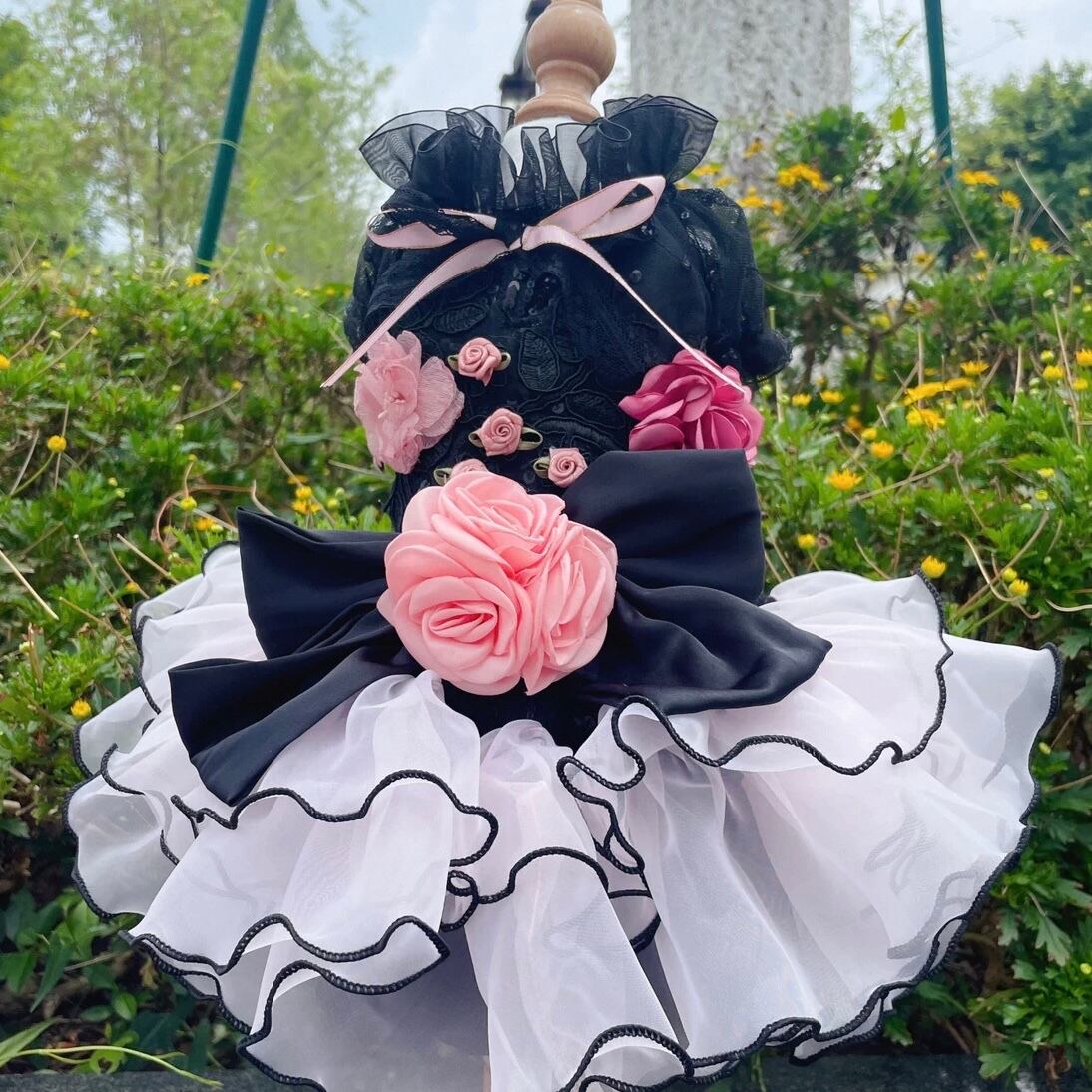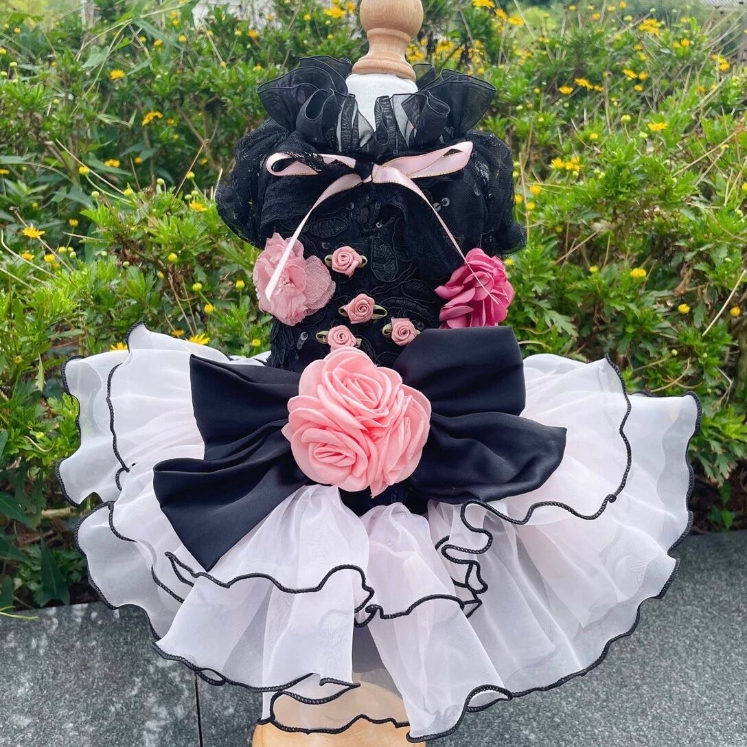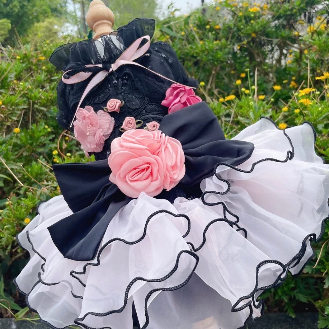 チュールを重ねたティアードデザインが、愛犬を華やかに彩るドレスです。
