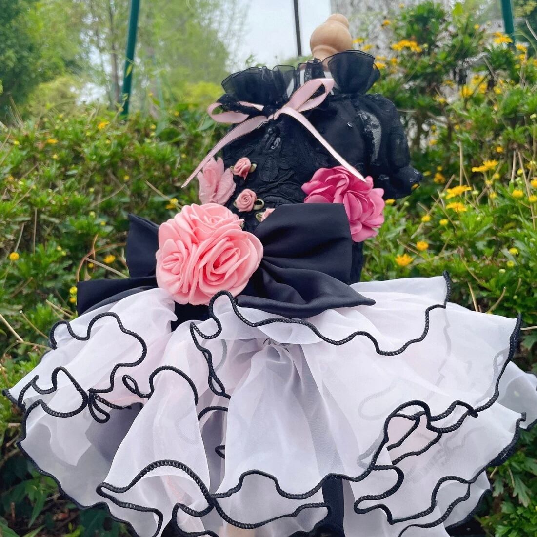 ブラック&ピンクローズドレス 00198