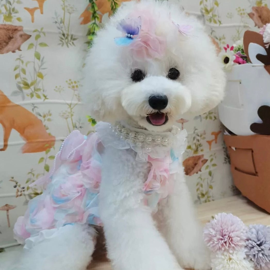 繊細なピンクとブルーのグラデーションが、愛犬をさらに美しく輝かせます。