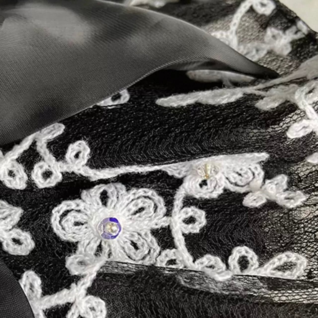 繊細な刺繍が施されたブラックの生地は、落ち着いた雰囲気を演出。