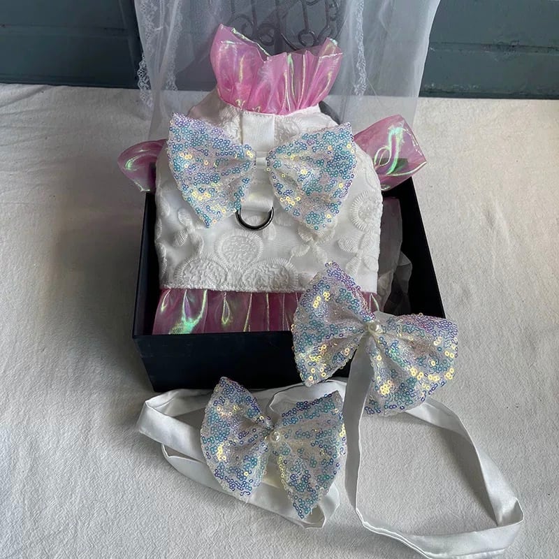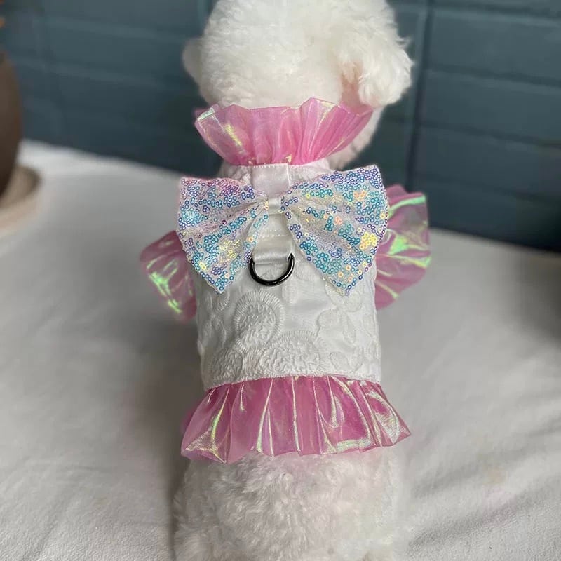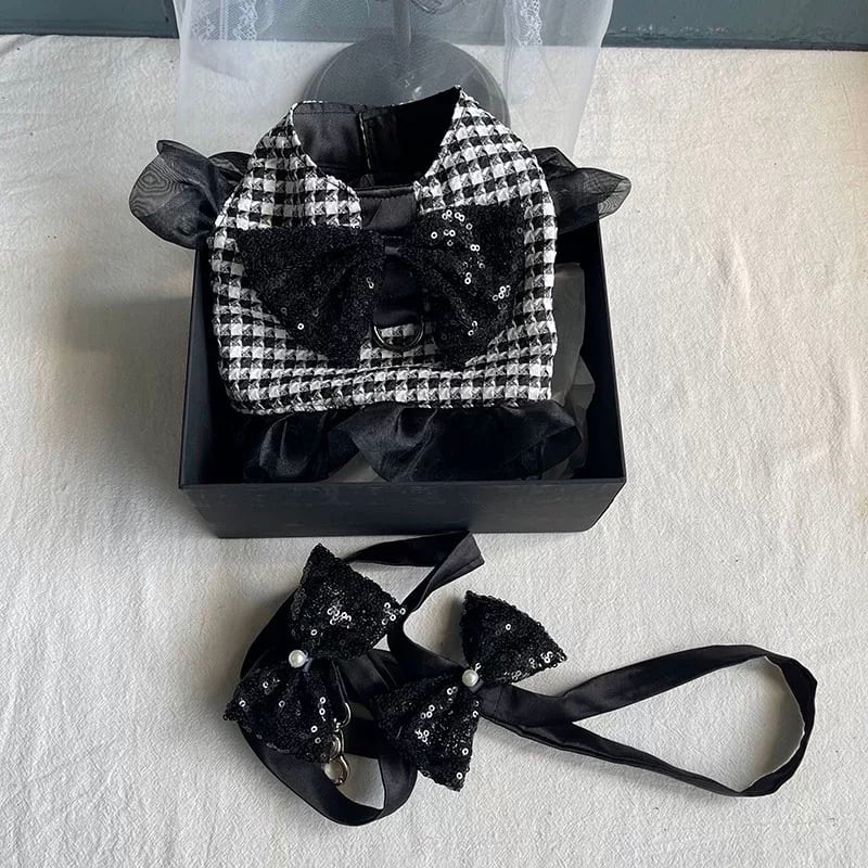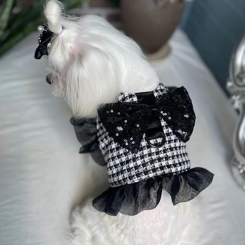 フリルとリボンが華やかなハーネスは、愛犬を美しく着飾るのに最適です。