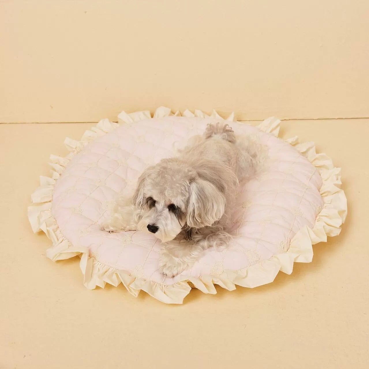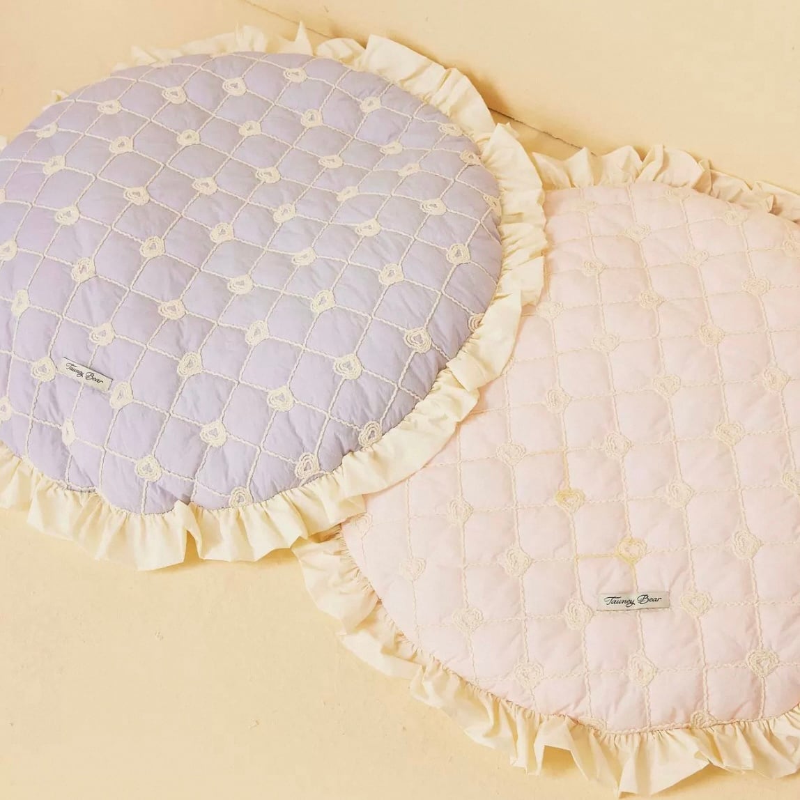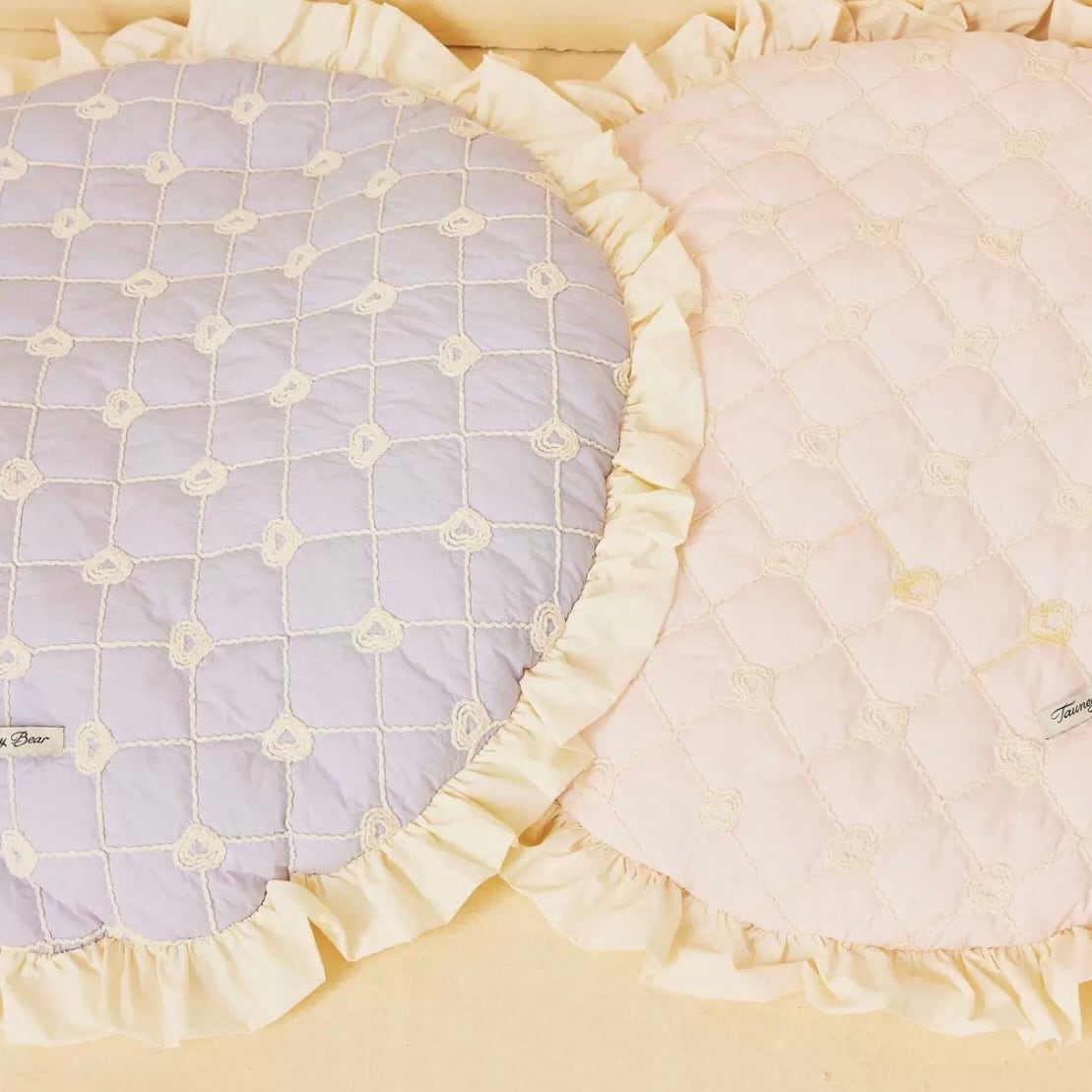 フリルが可愛いデザインのキルティングラウンドベッドです。