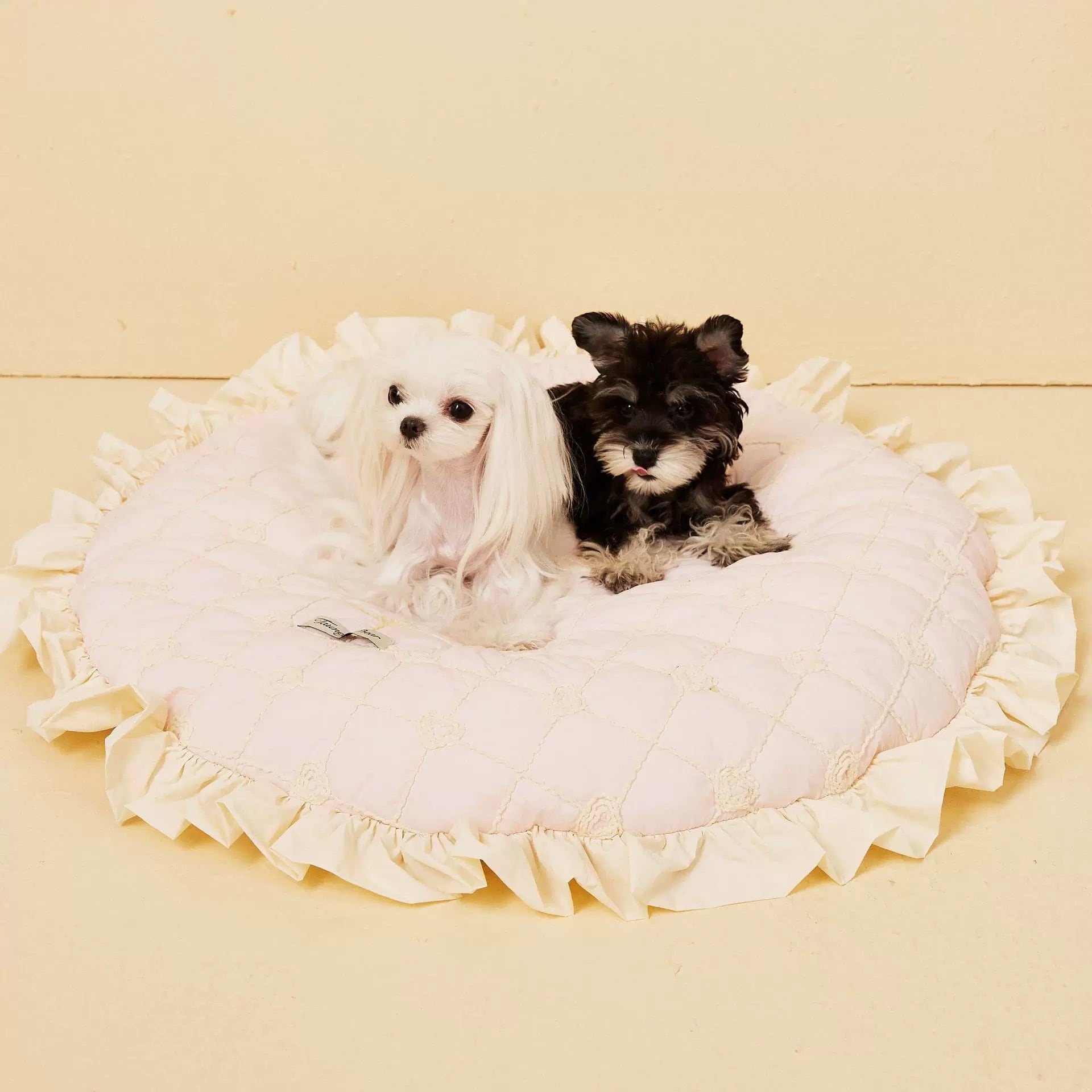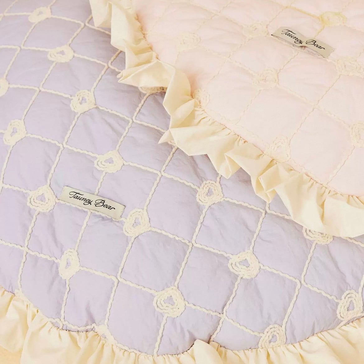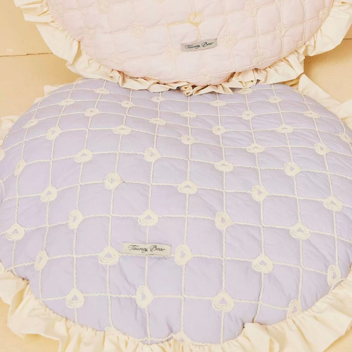 フリルが可愛いデザインのキルティングラウンドベッドです。