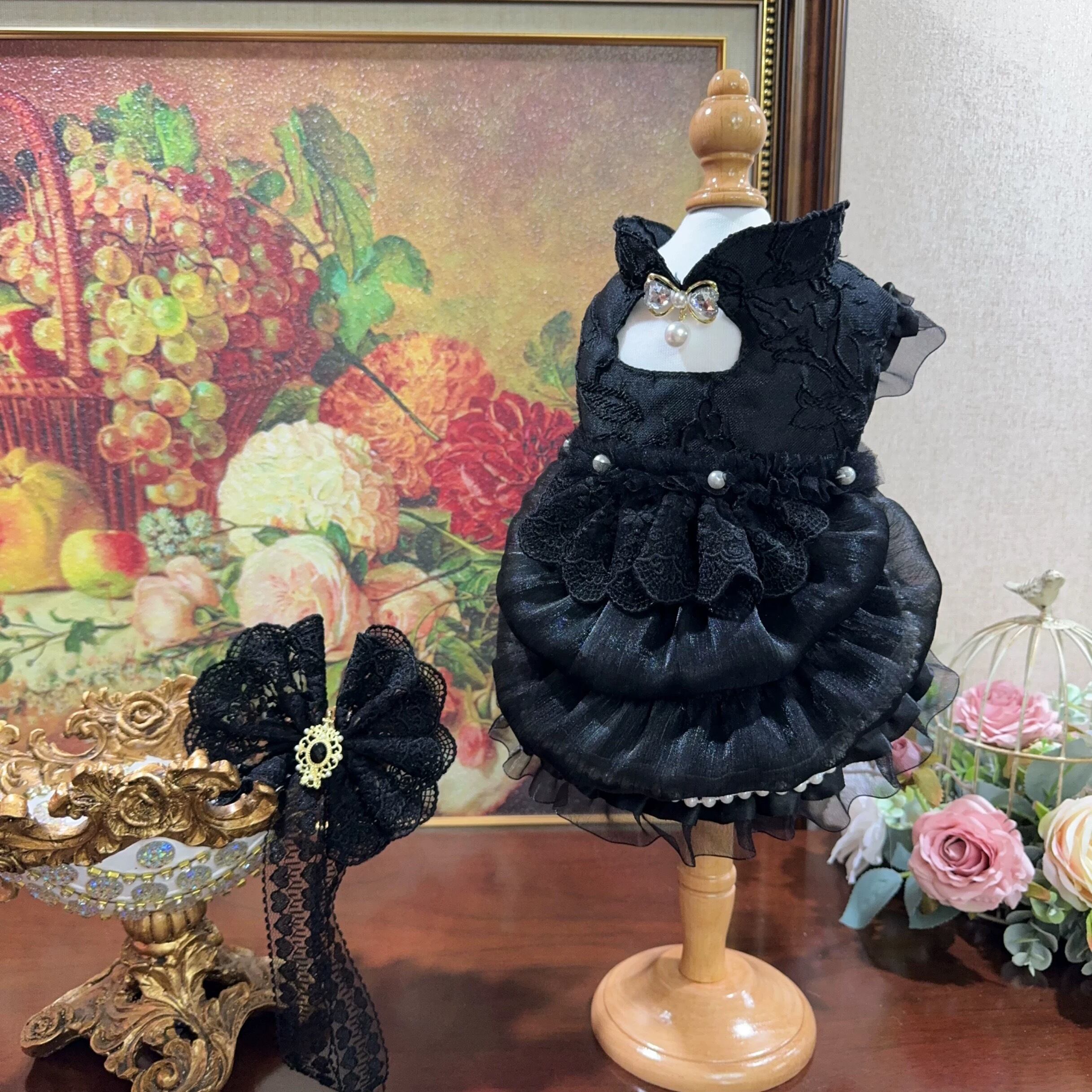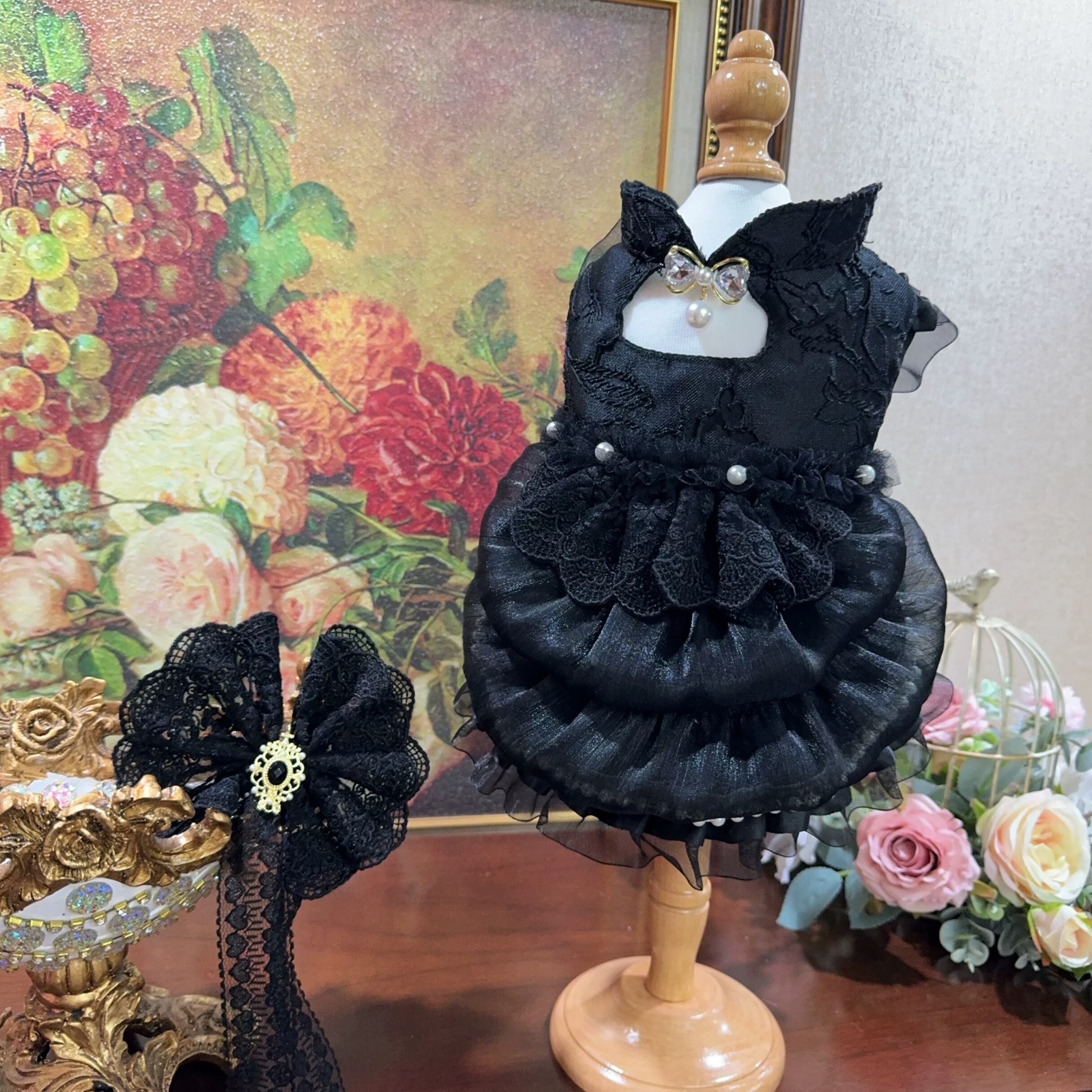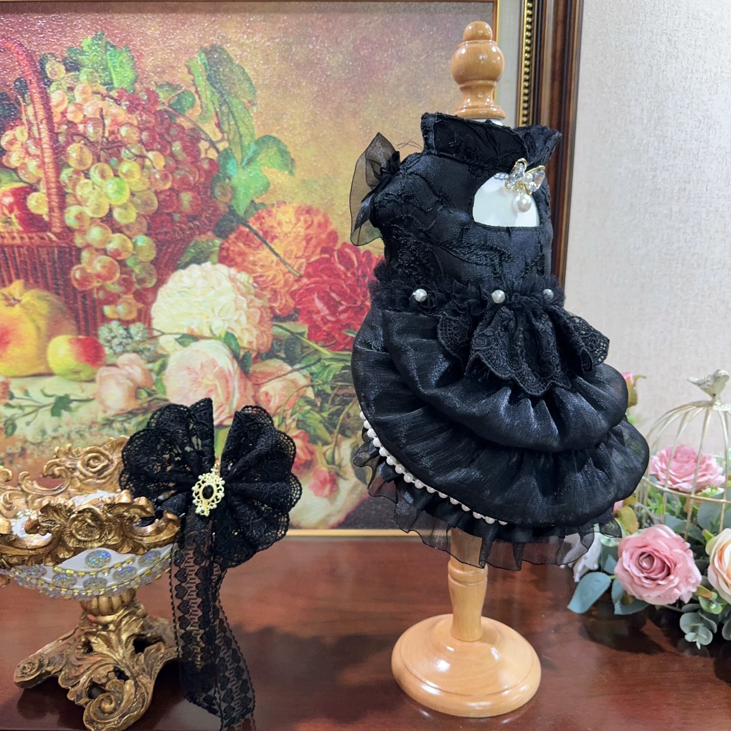 繊細なレースと、バックのリボンが、愛犬をより一層美しく輝かせます。