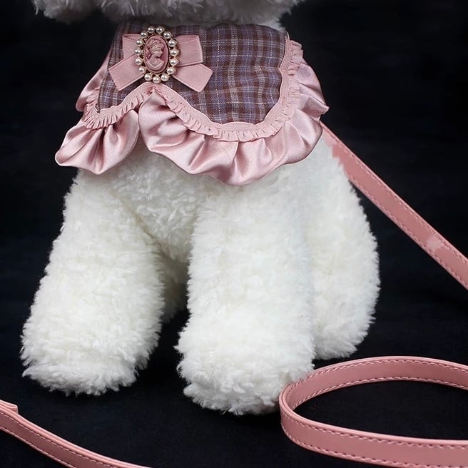 首元を華やかに飾るフリルは、繊細なレイヤードで、愛犬の可愛らしさをさらに引き立てます。