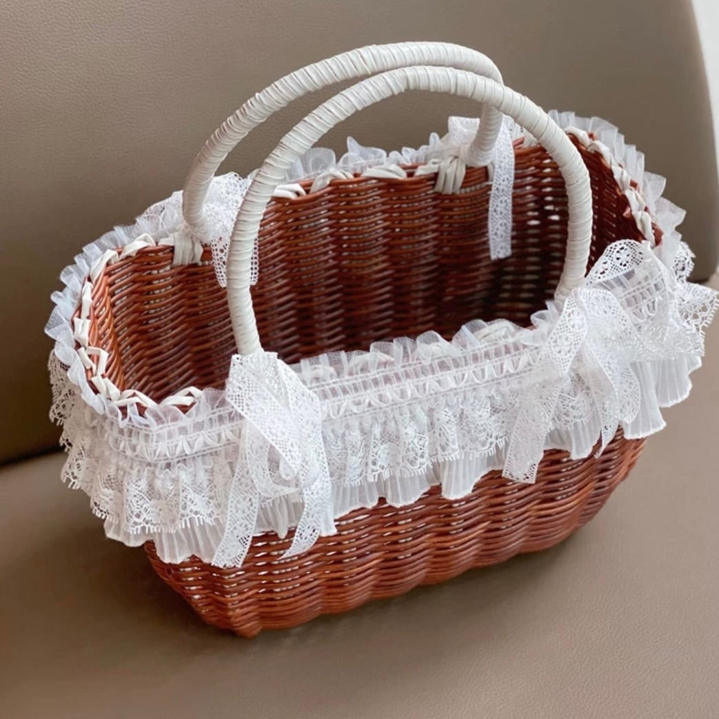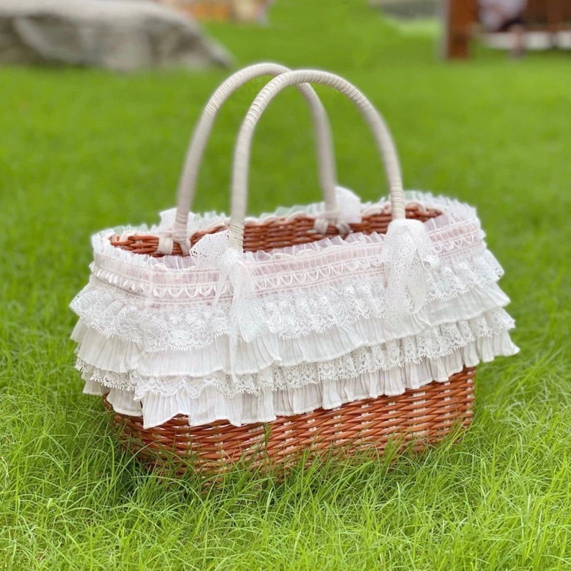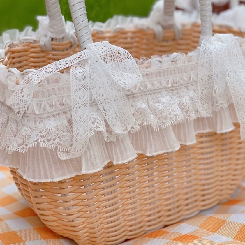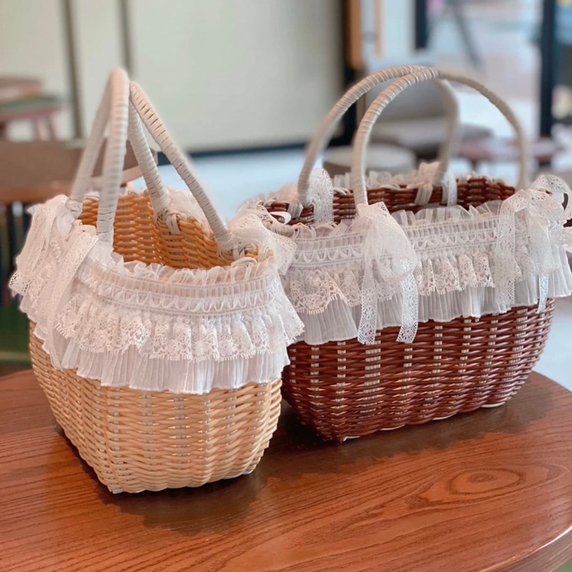 2重レースのバスケット型キャリーバッグ 00215