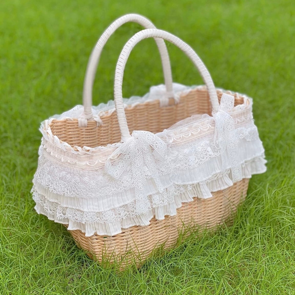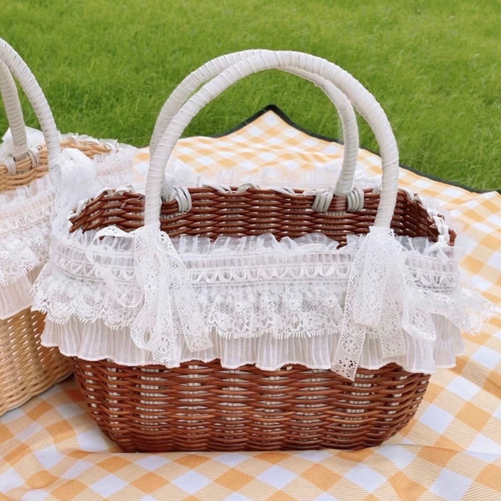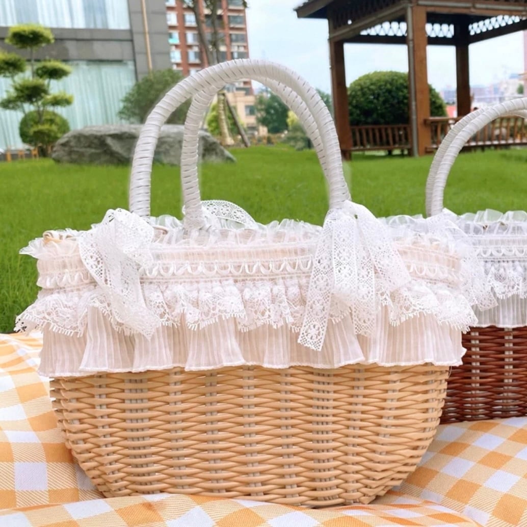 2重レースのバスケット型キャリーバッグ 00215