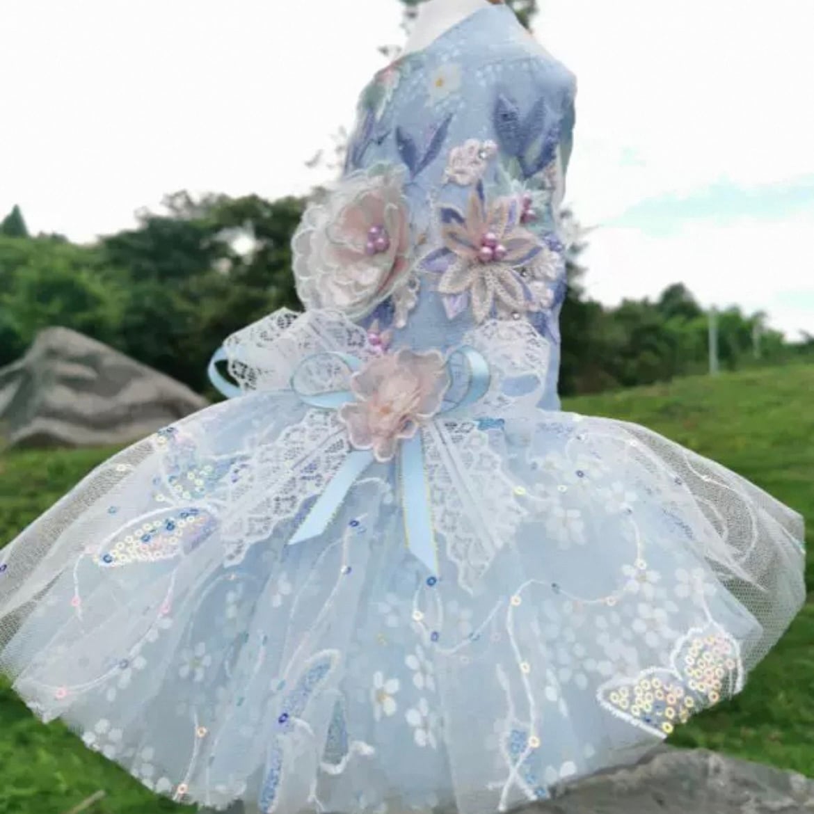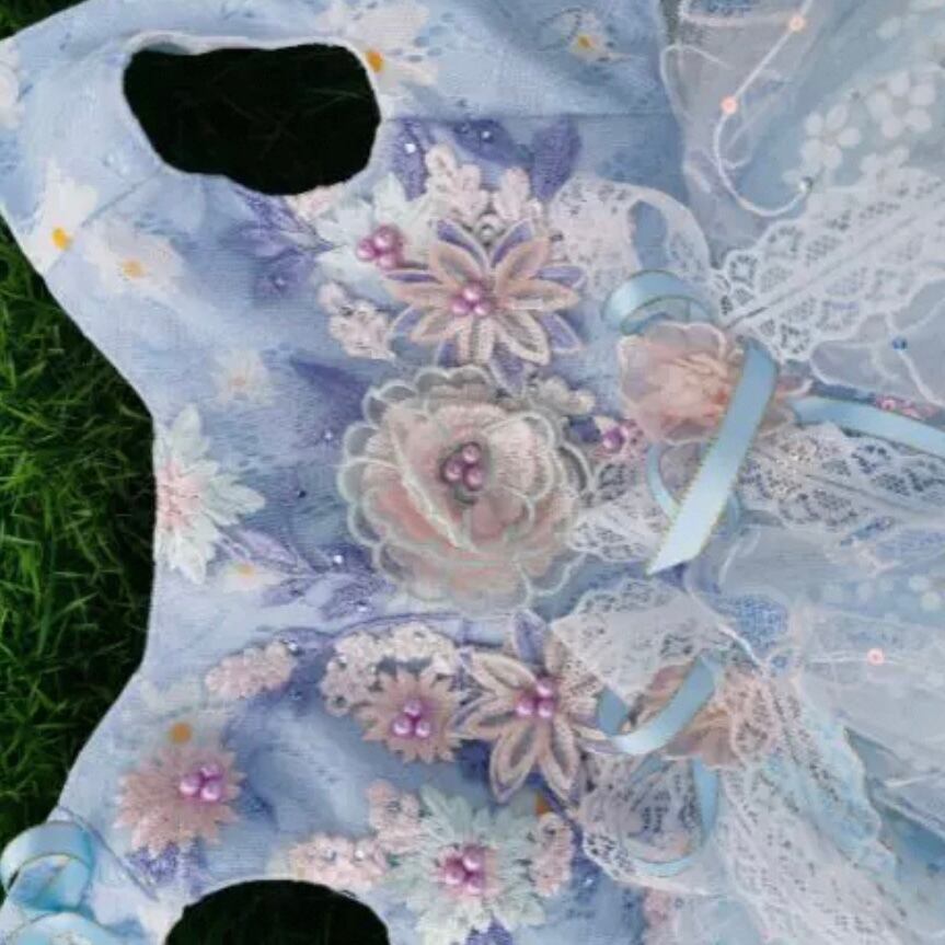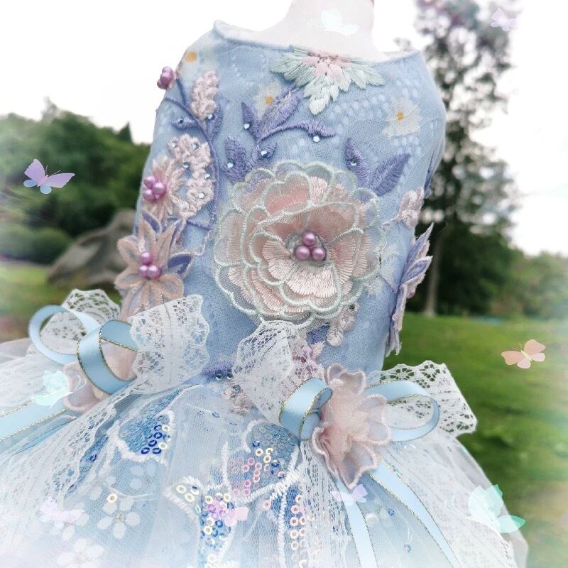 愛らしい花モチーフの刺繍が、チュールスカートの軽やかさと見事に調和したワンピース。